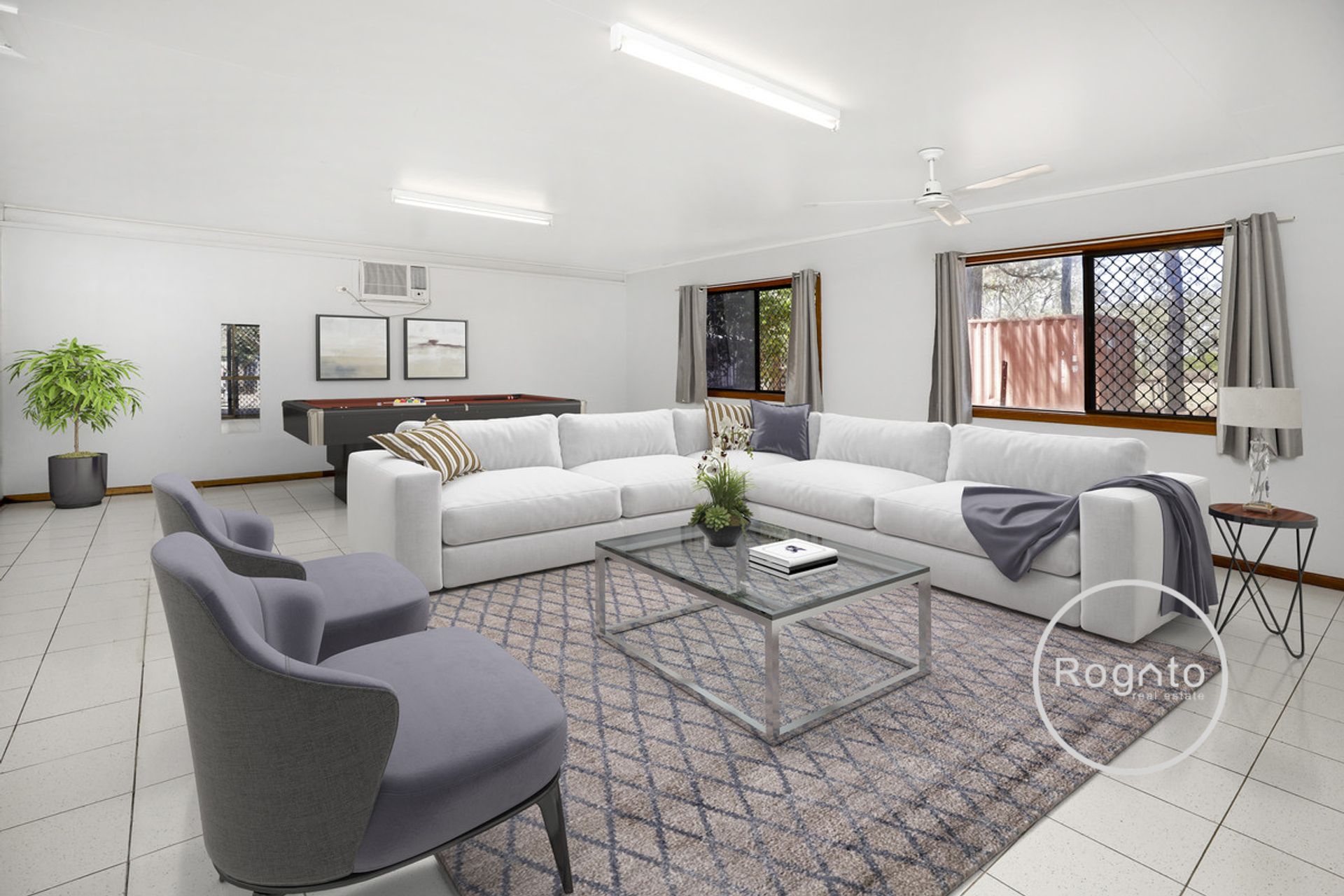 • Security screens and Fans throughout
