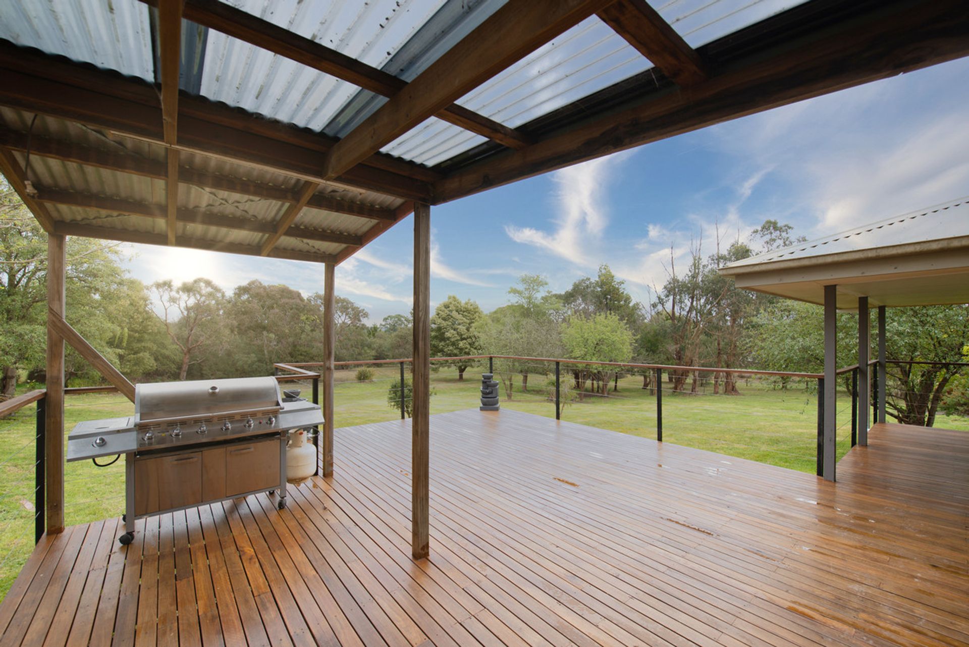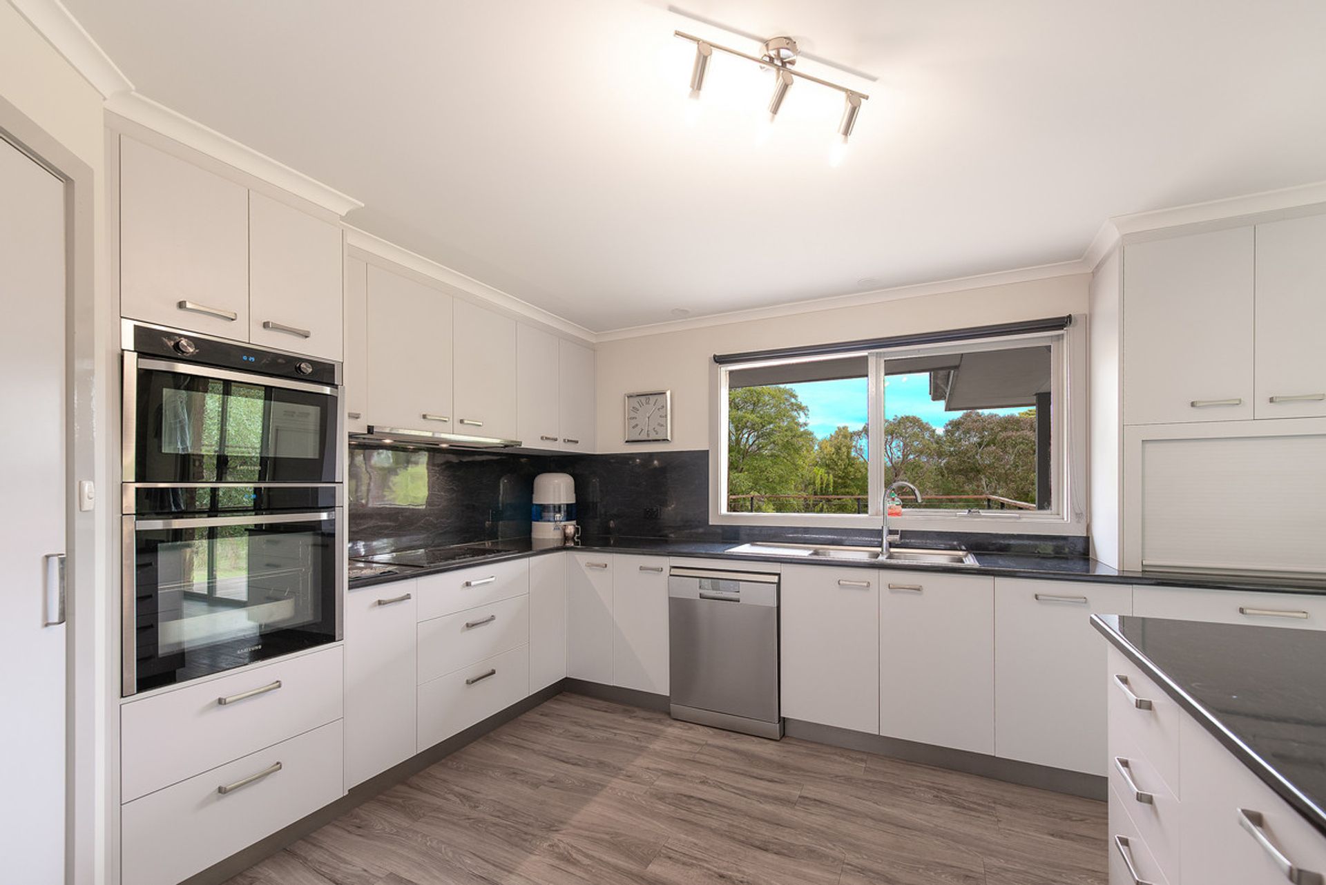 The modern kitchen is beautifully appointed for those who love to cook, flaunting an island bench that is ideal for casual dining, dishwasher, corner pantry, electric stove top and two ovens. Flowing flawlessly off the dining, the expansive timber deck is ideal for entertaining and perfectly positioned to take in the glorious sunsets over your own natural wonderland whilst sharing a BBQ with friends and family.