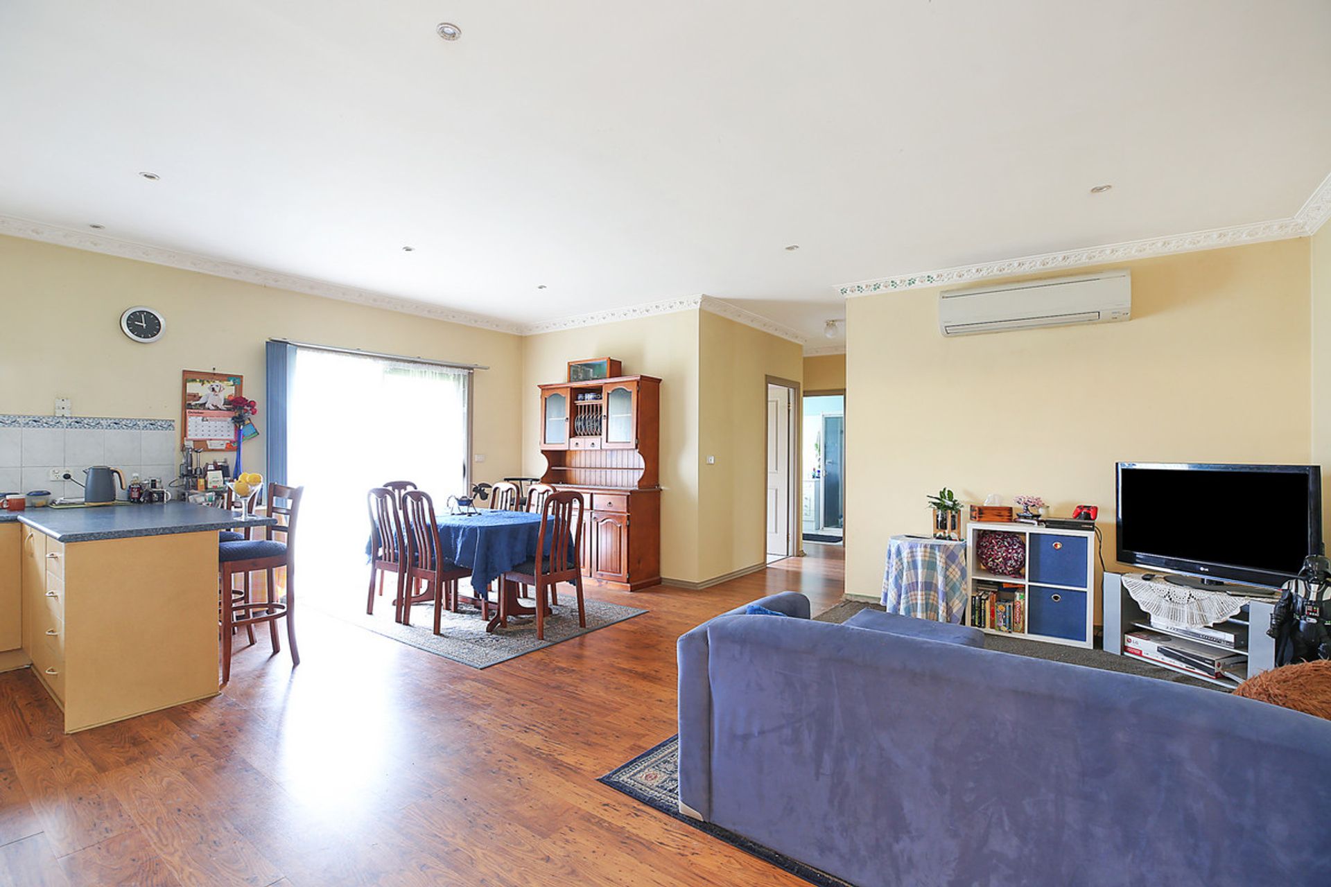 The property is pleasantly introduced by a lovely landscaped garden. The home showcases spacious open plan kitchen, dining, living with a mixture of floating floor boards and carpets throughout, modern kitchen (laminate benchtops), dishwasher with electric cooktops and a large walk in pantry.