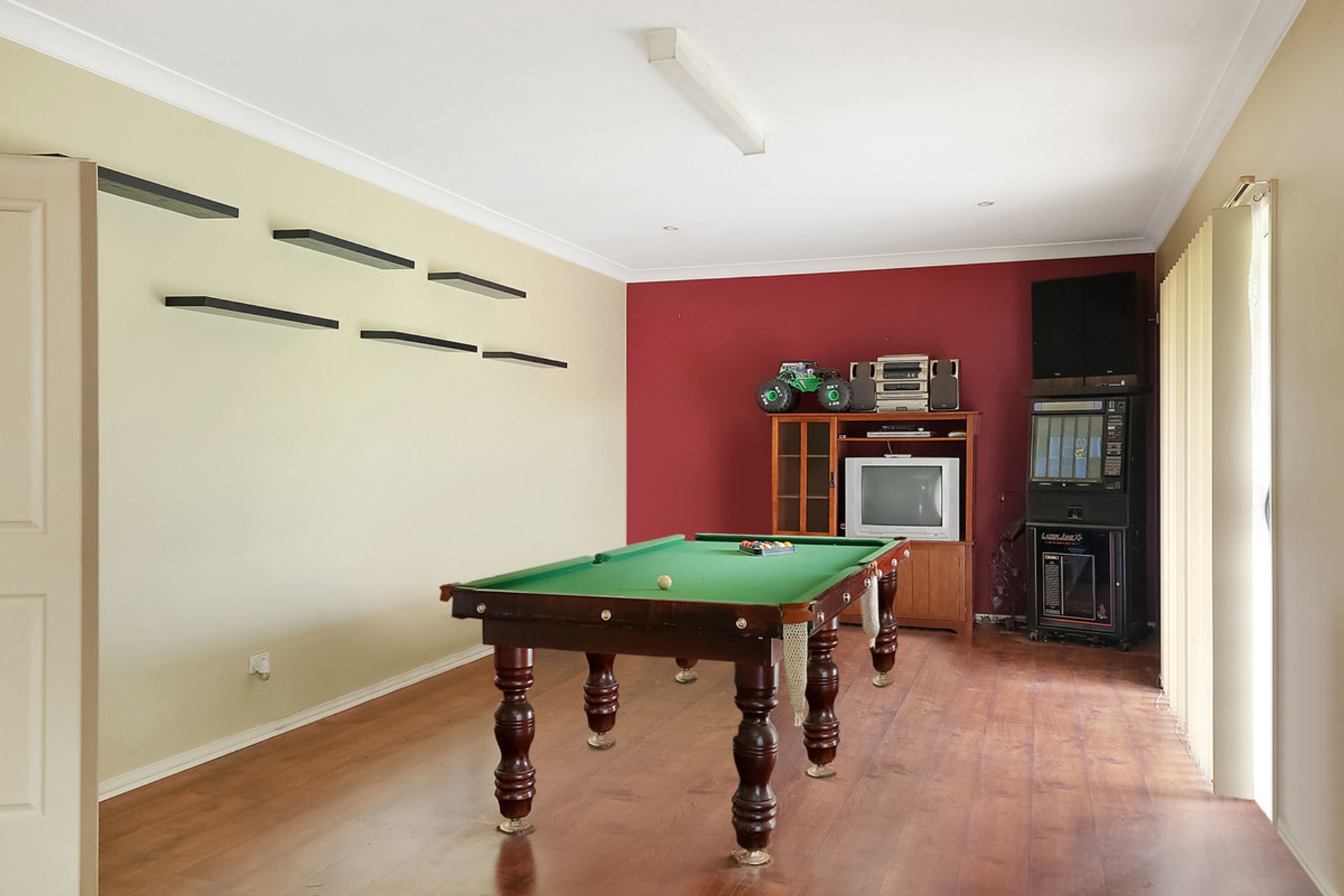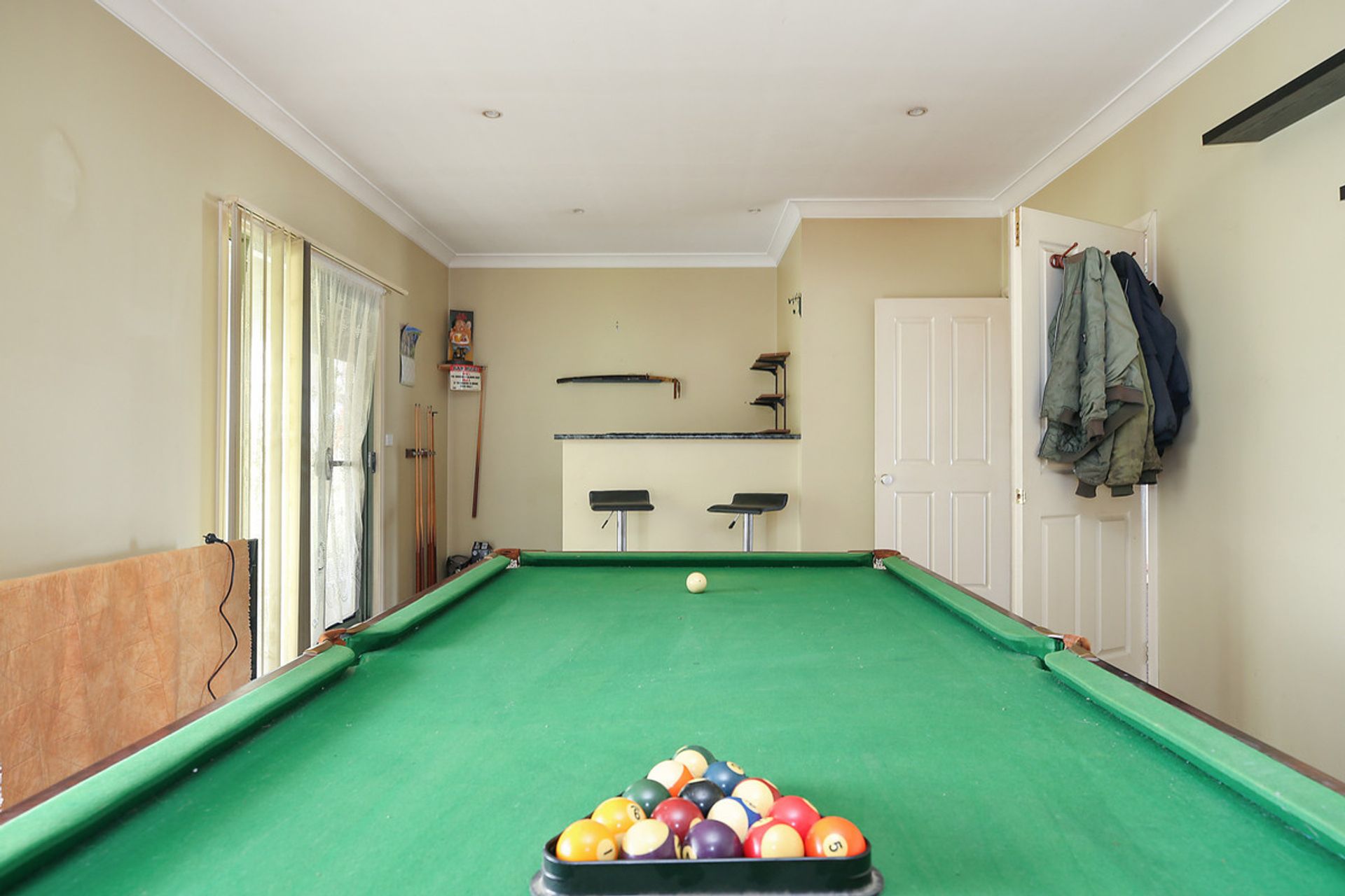 Accommodation includes four generous bedrooms plus study, two living rooms, pool room (incorporating bar area) centrally located family bathroom (separate bath and shower) with the master bedroom offering a fantastic sized built-in-robe and an ensuite with double basin vanity.