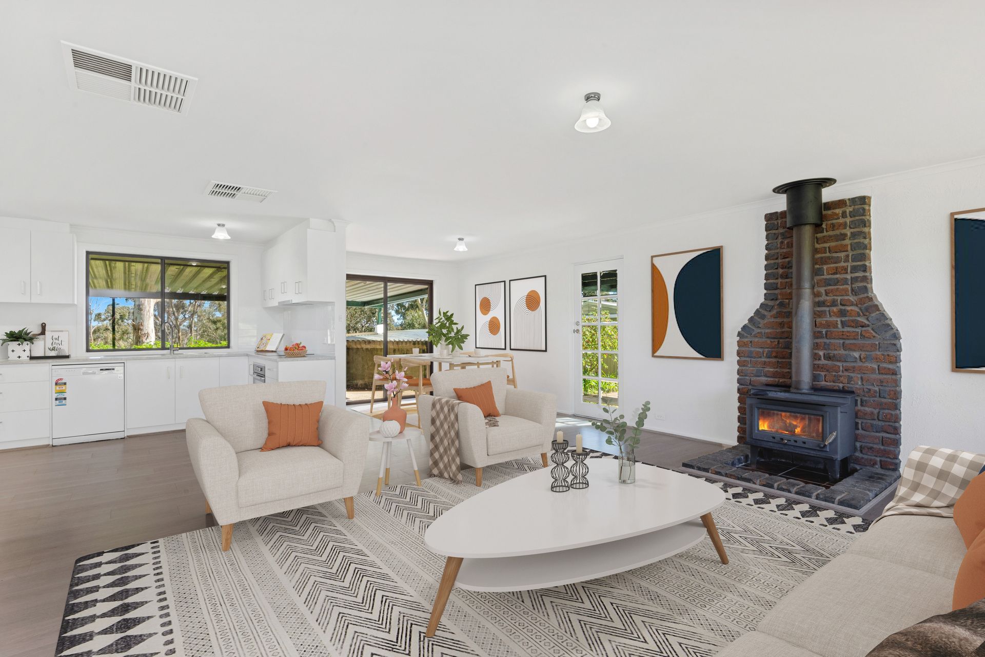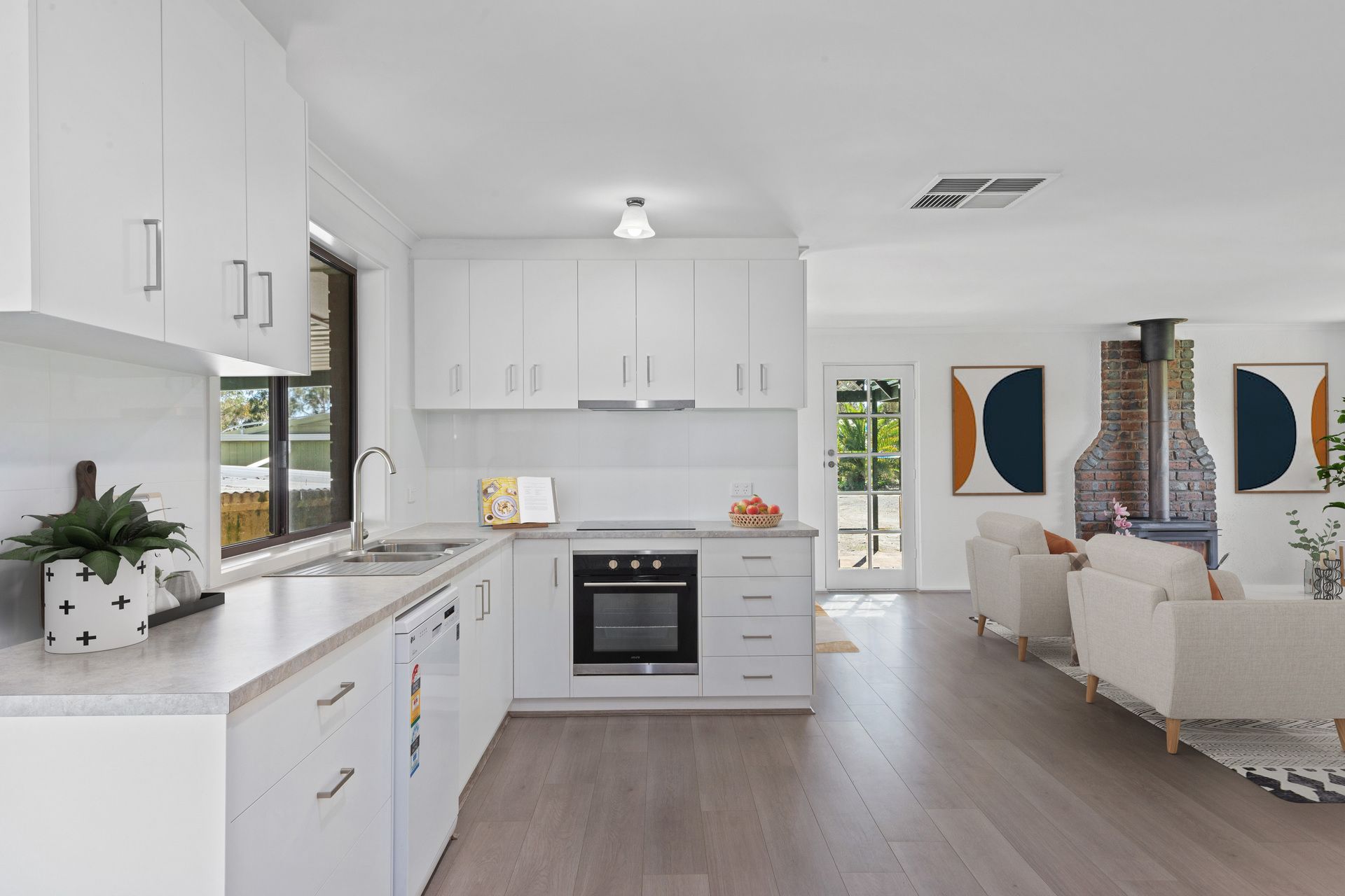 Built in the 70's the home has recently been refurbished making it move in ready. A sparkling white kitchen overlooks a spacious, open plan living area warmed by a slow combustion heater. Freshly painted throughout, it also boasts brand new floor coverings to the living and all 4 bedrooms. If you loved the 70's, the retro bathrooms will make you smile. They are both in good shape with a laundry to match.