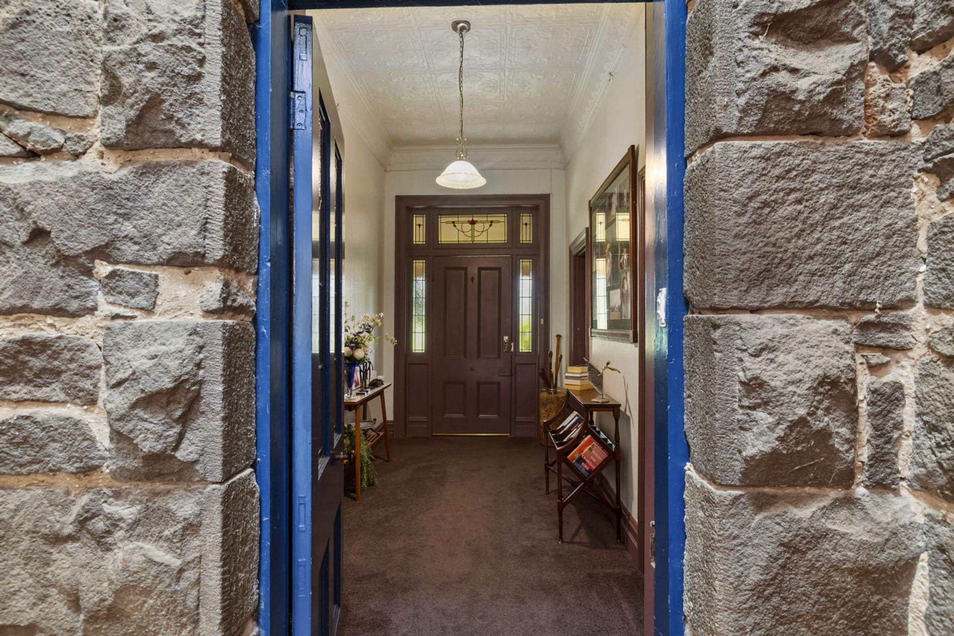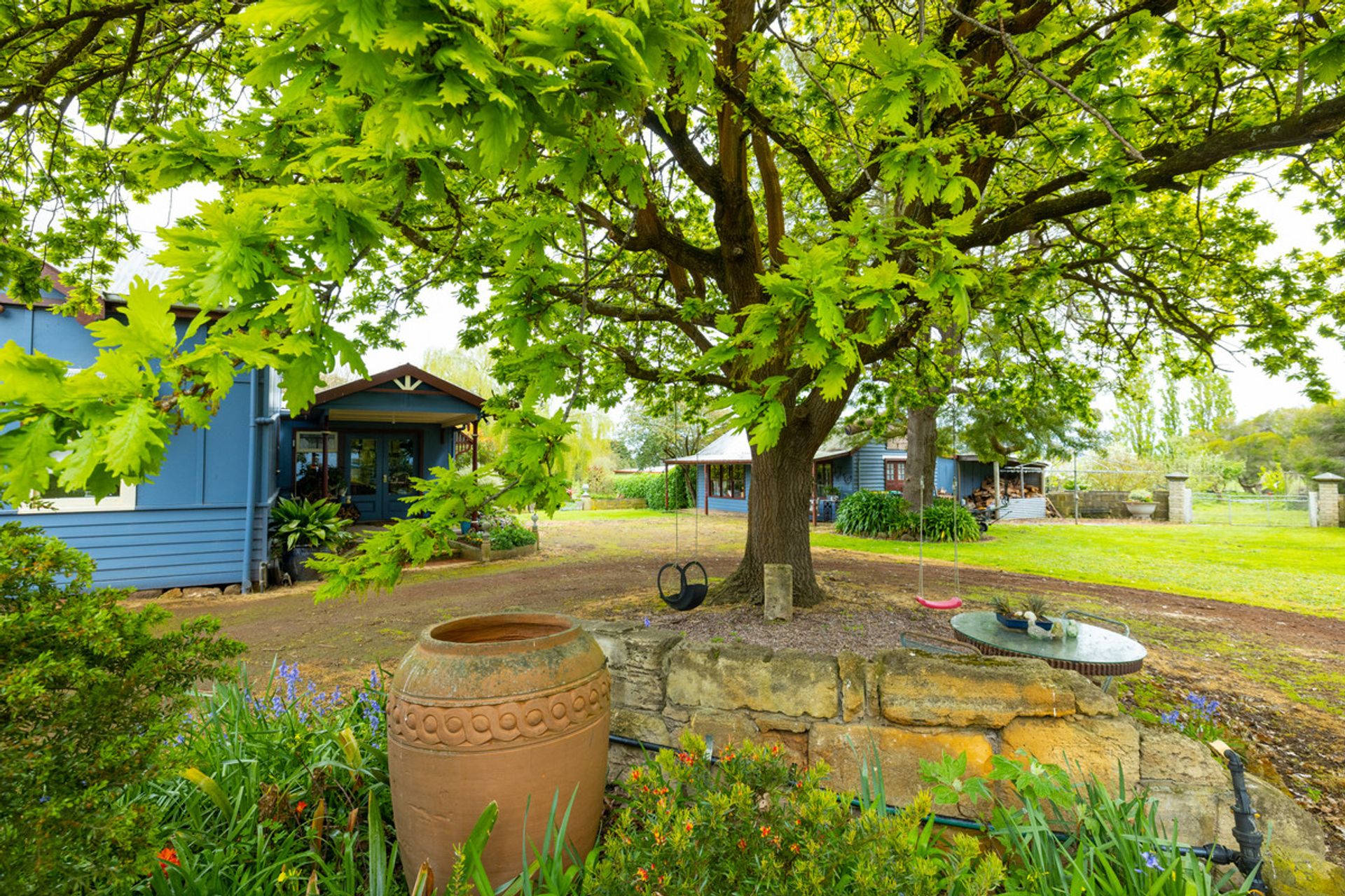 Historic 1880s Bluestone four bedroom home with charming post war extension is perfectly set in a picturesque gardens and grounds with large feature hedge providing privacy and seclusion from the homes main road frontage.