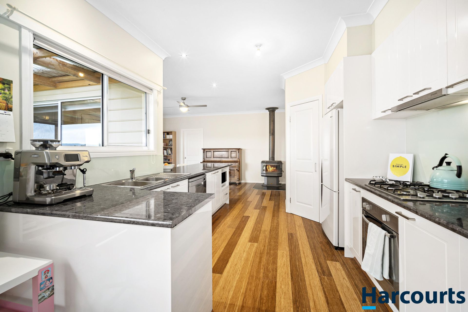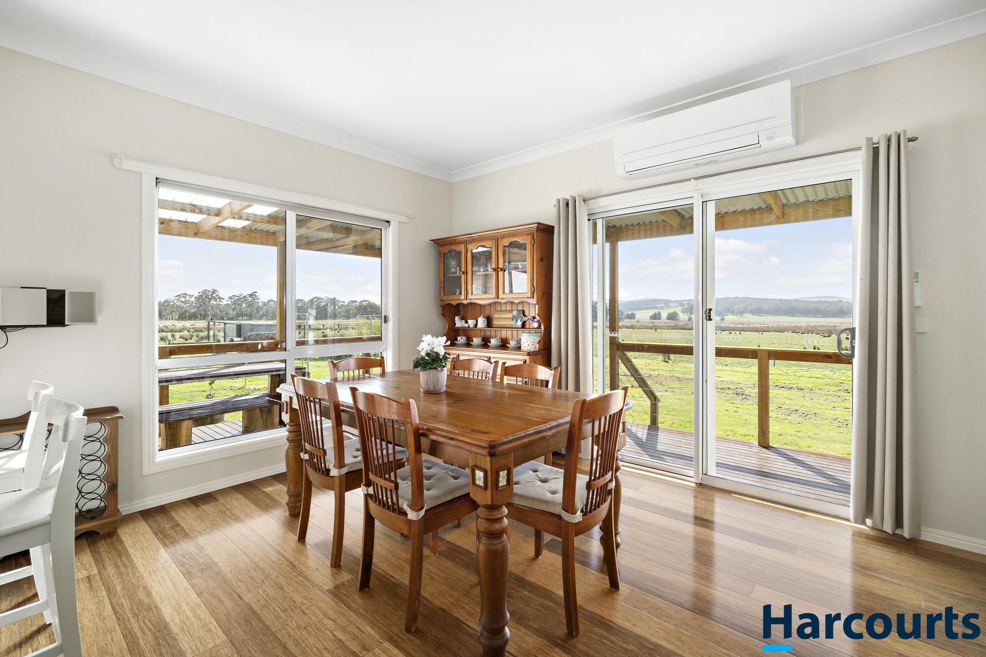 A beautiful four-bedroom home is nestled on the property, boasting gorgeous views of the land from every direction. Step inside and be greeted by the open-plan lounge, kitchen and dining area that offers plenty of space for everyone to relax in privacy or be entertained together. Air-conditioning and a wood fireplace will keep this space comfortable all-year round, while sleek wood flooring flows underfoot.