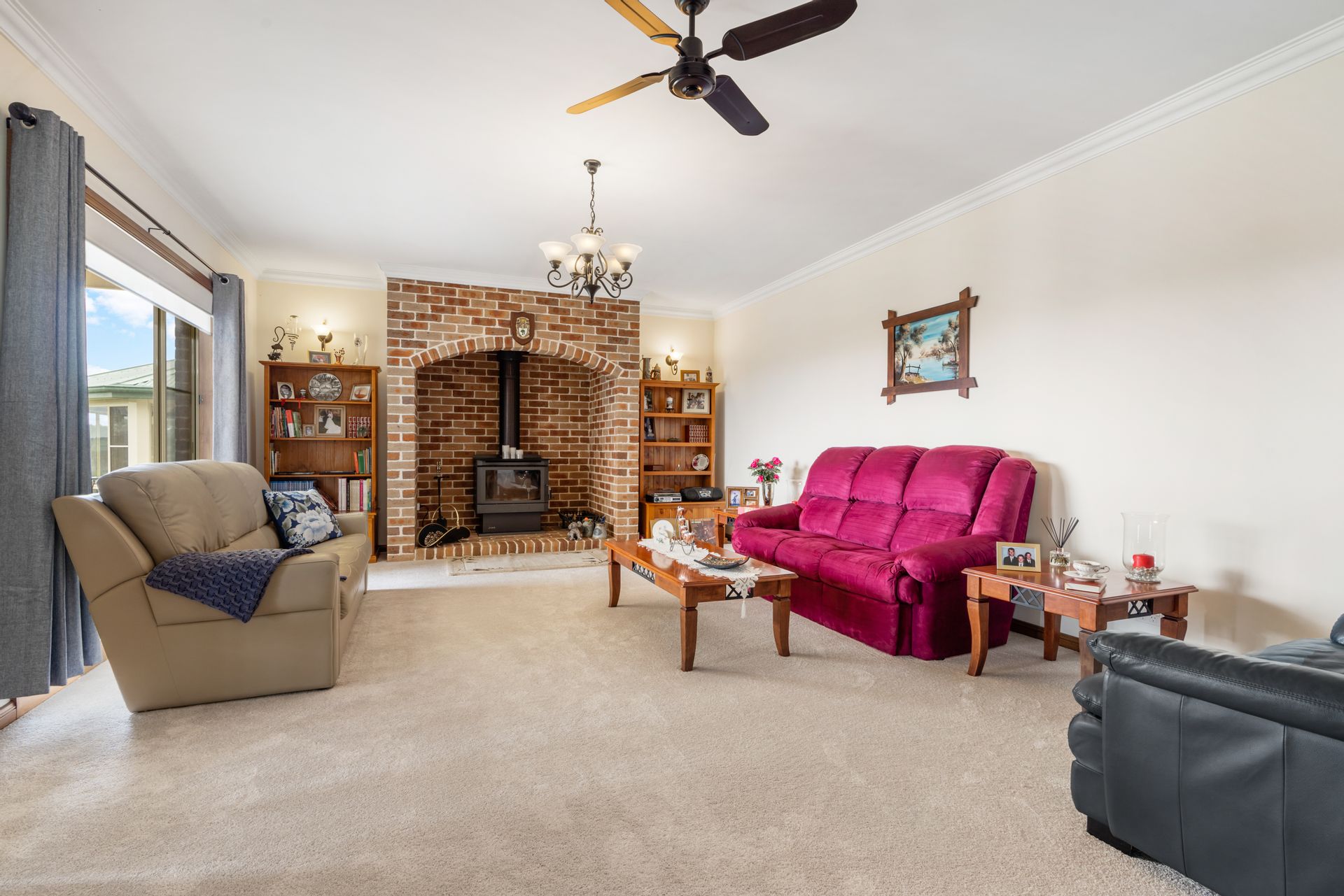 • Enjoy the cosy winter warmth by the recessed brick feature fireplace homing a slow combustion wood fire in the second living area.