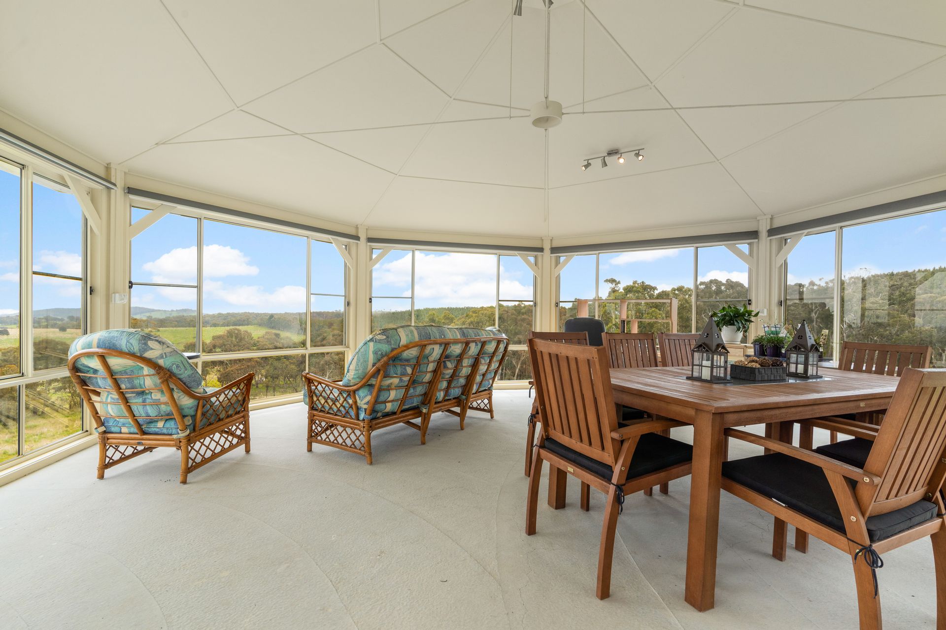 • Separate, lockable room, enclosed with large bay windows on the north side of the house provides an ideal entertaining area or place to work from home. The windows each have blinds enabling you to enjoy the aspect and views or to shut off for privacy.