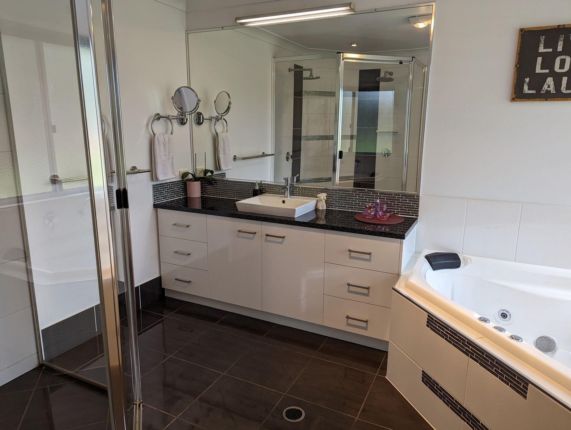 5 bedrooms, 4 with built-in robes and fans, all carpeted. Master bedroom features large walk in robe and ensuite with big corner shower and spa tub to relax in.