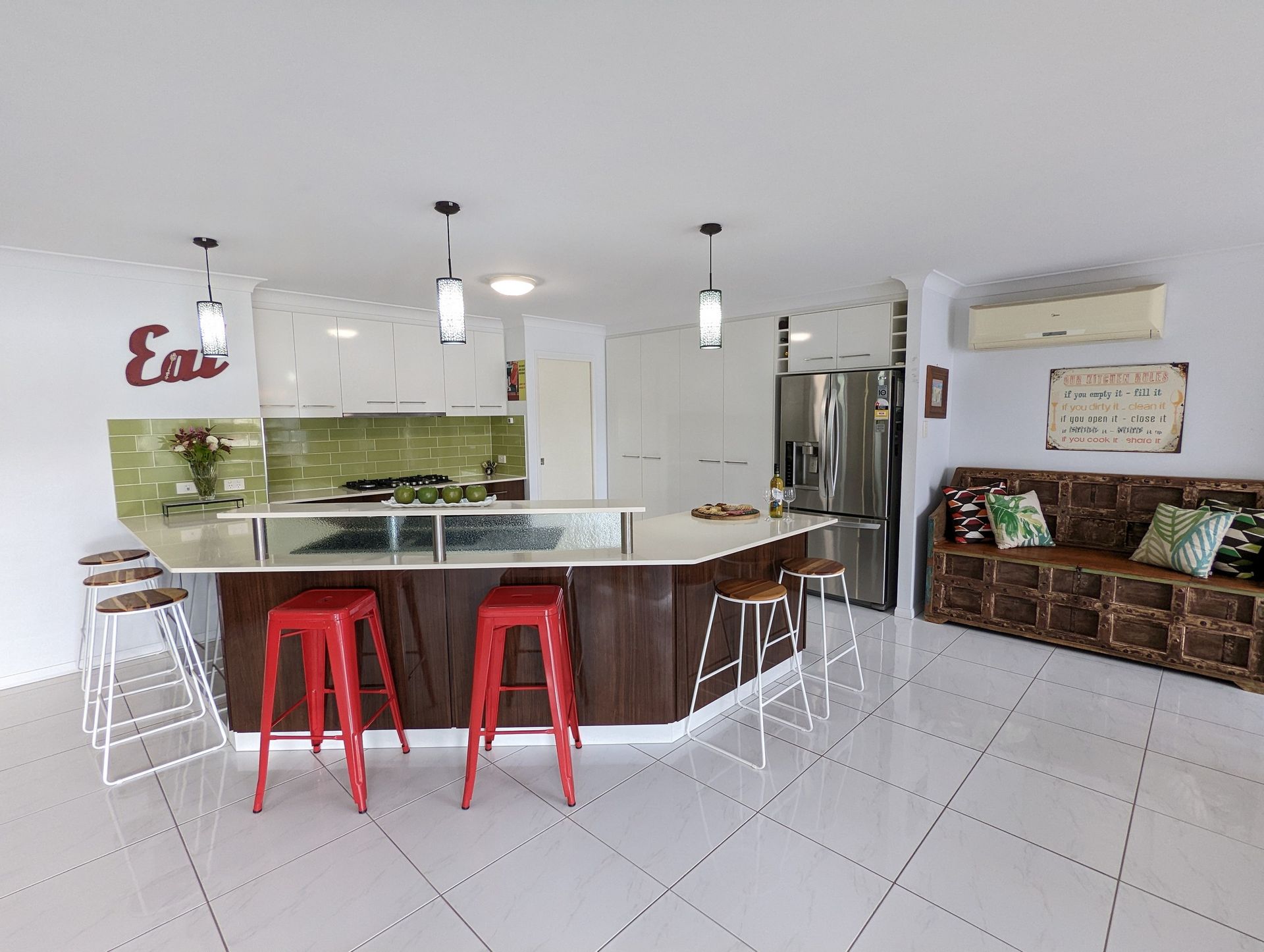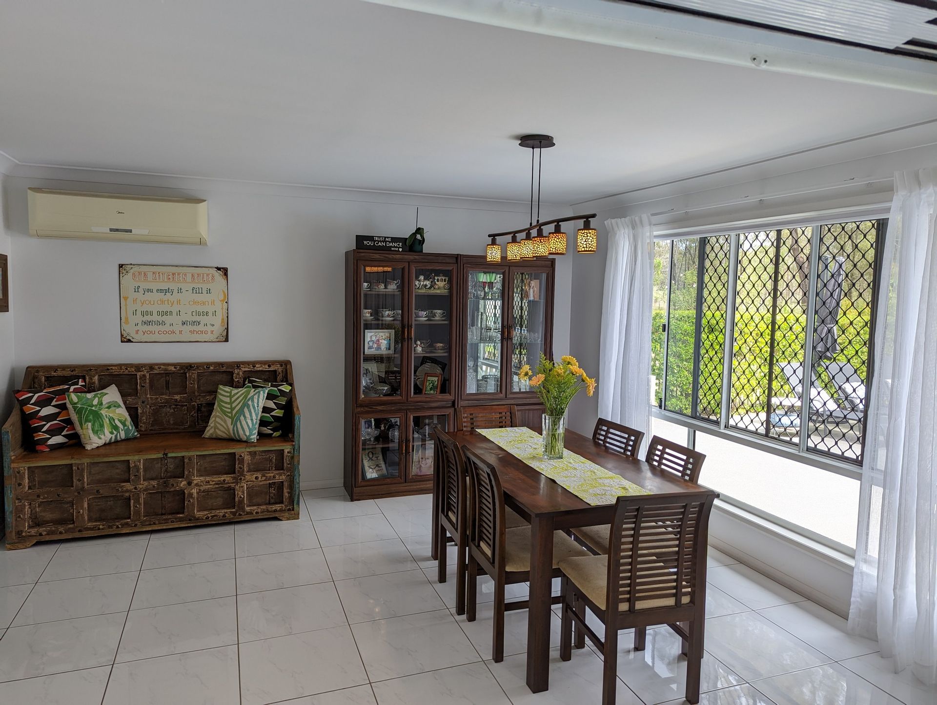 Easy care tiled floor throughout, fully screened, fans, split system air conditioning.