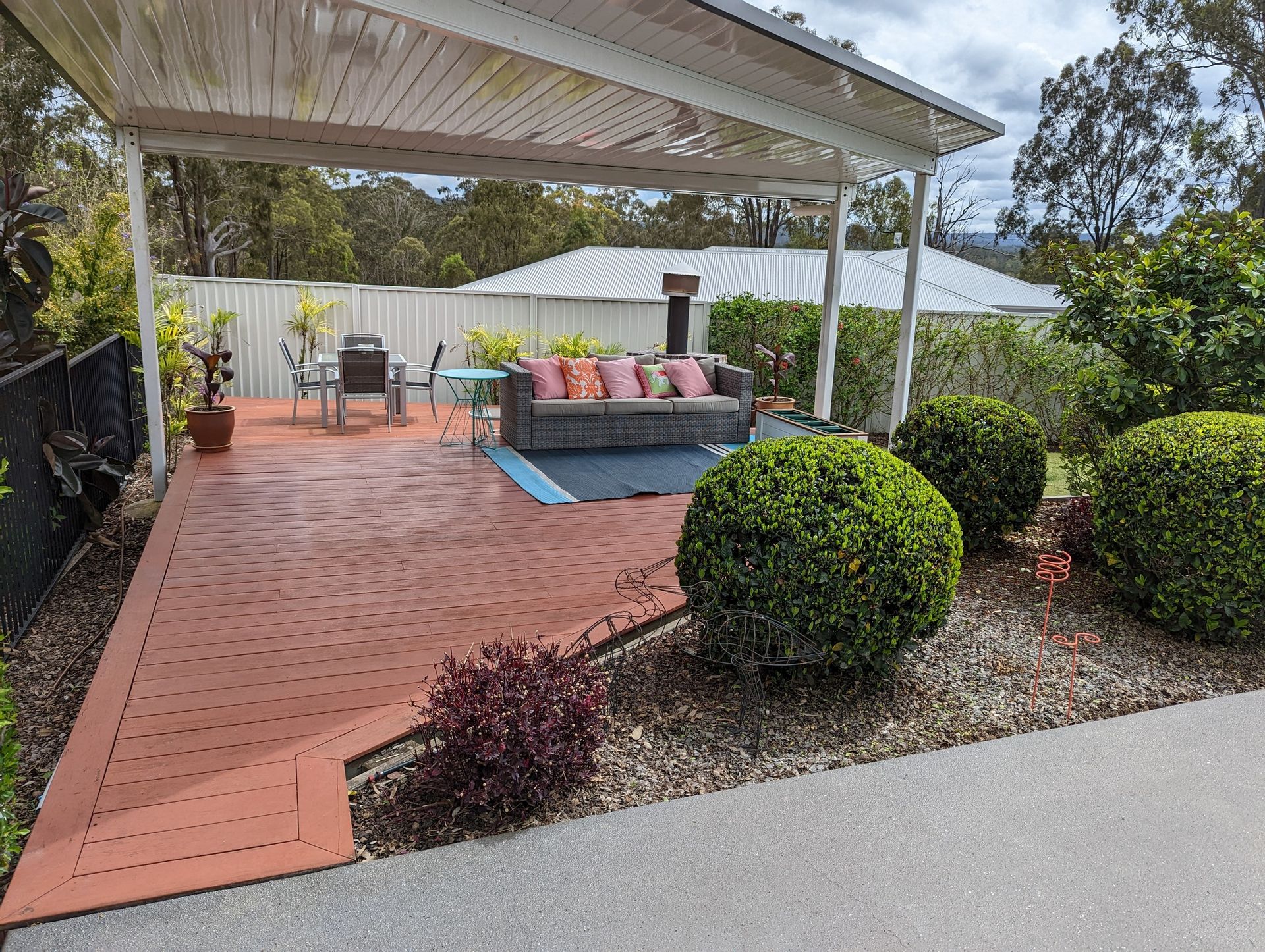 Beautifully landscaped private gardens and lawns with Colourbond fencing for extra privacy, separate mesh fenced back paddocks with huge firepit area and chook pen, perfect for the 4 legged pets. Lovely views through to bushland and hills. 5 mins to Murphy's Creek State School, tavern and shop. 20 Mins Toowoomba on all bitumen Roads. Bio cycle waste system, trickle town water, postal and bin services, Internet and phone services.