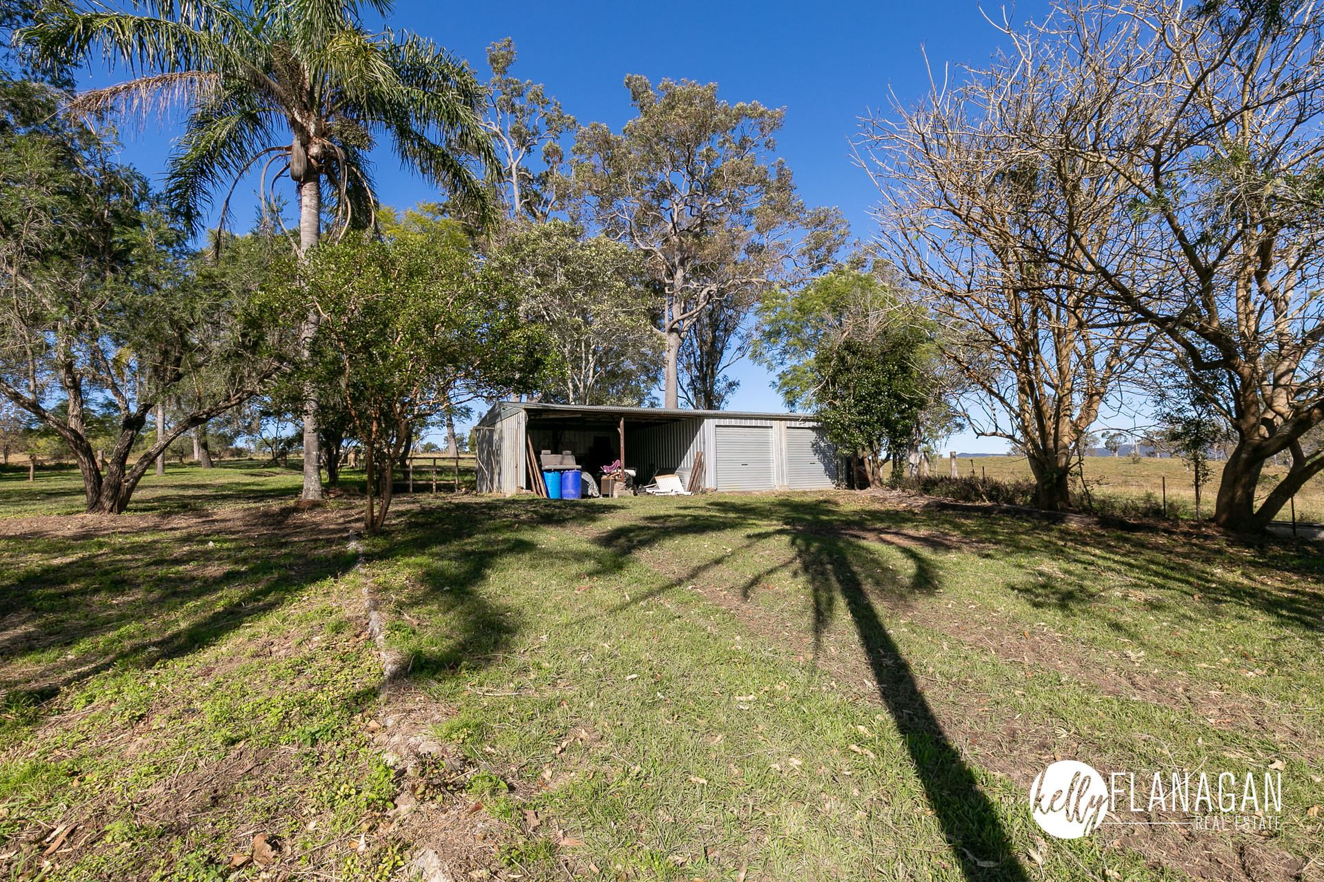 - Big steel shed approximately 12m x 6m (2 carport bays, 2 garage bays).