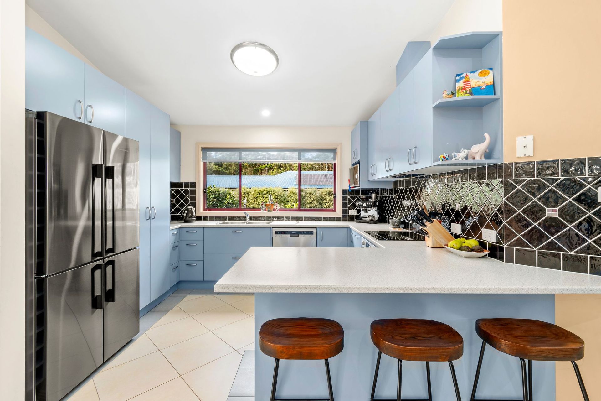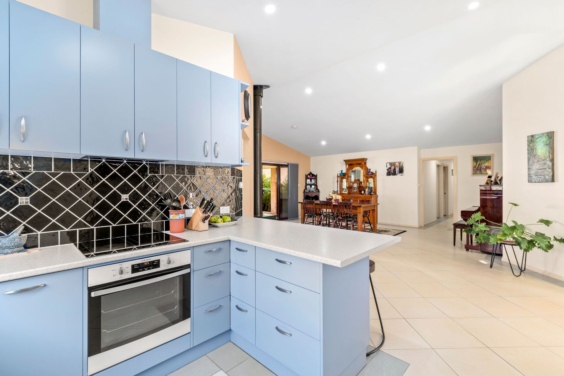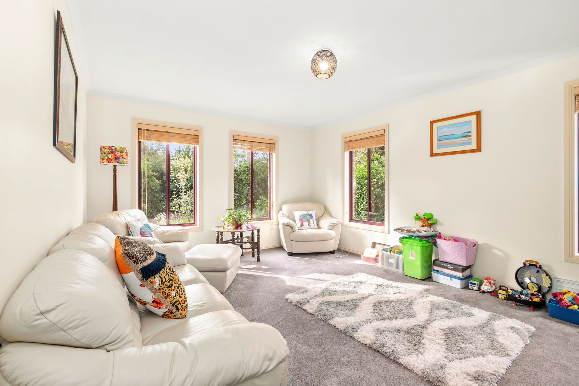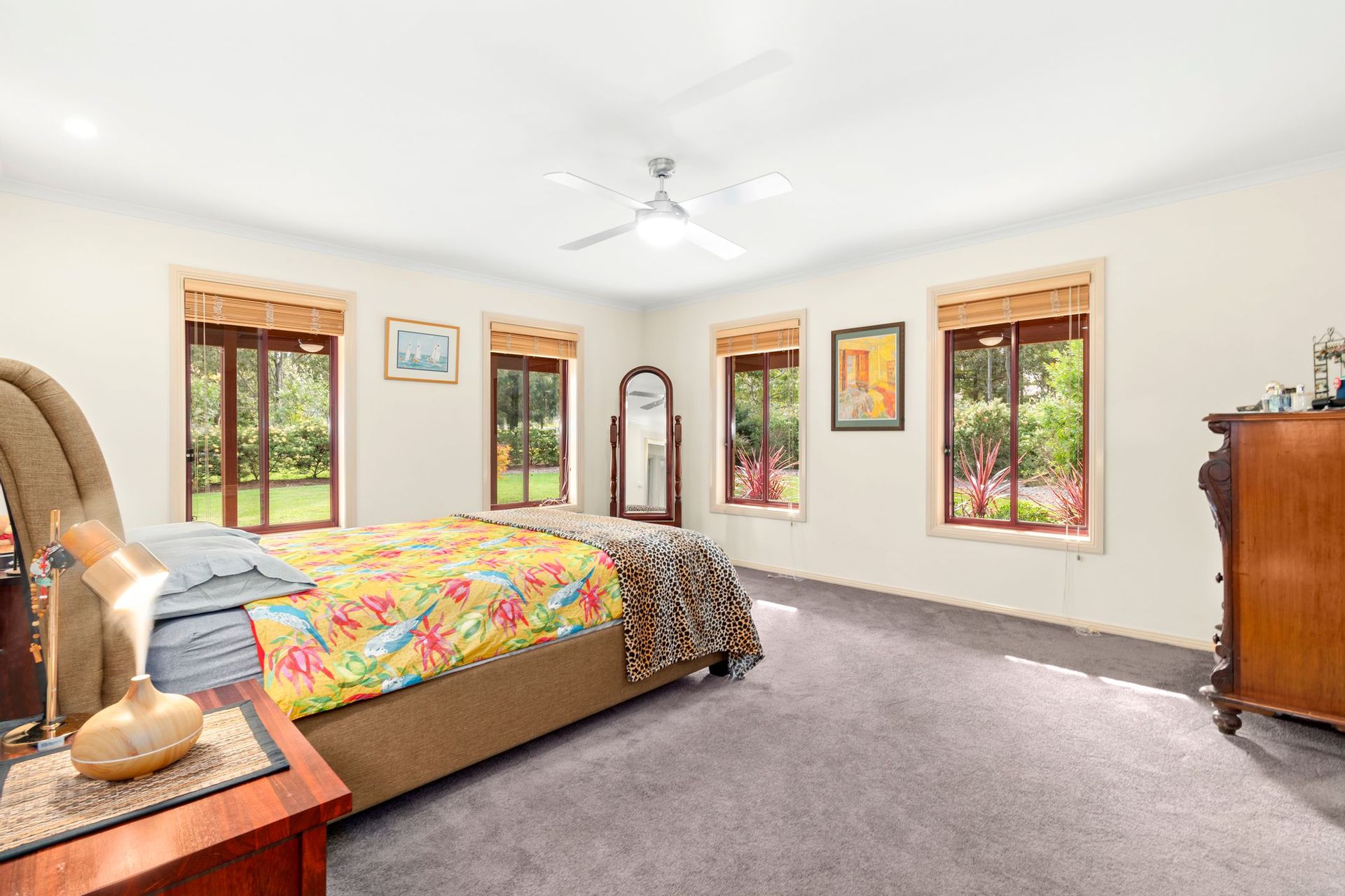 The home itself is a great design with a well thought out floor plan that allows room for everyone. High cathedral style ceilings welcome you as soon as you enter into the front door and the space enjoys excellent natural light which really is a feature. The living spaces all enjoy views over the lush green gardens with native bottle brushes currently in full bloom.