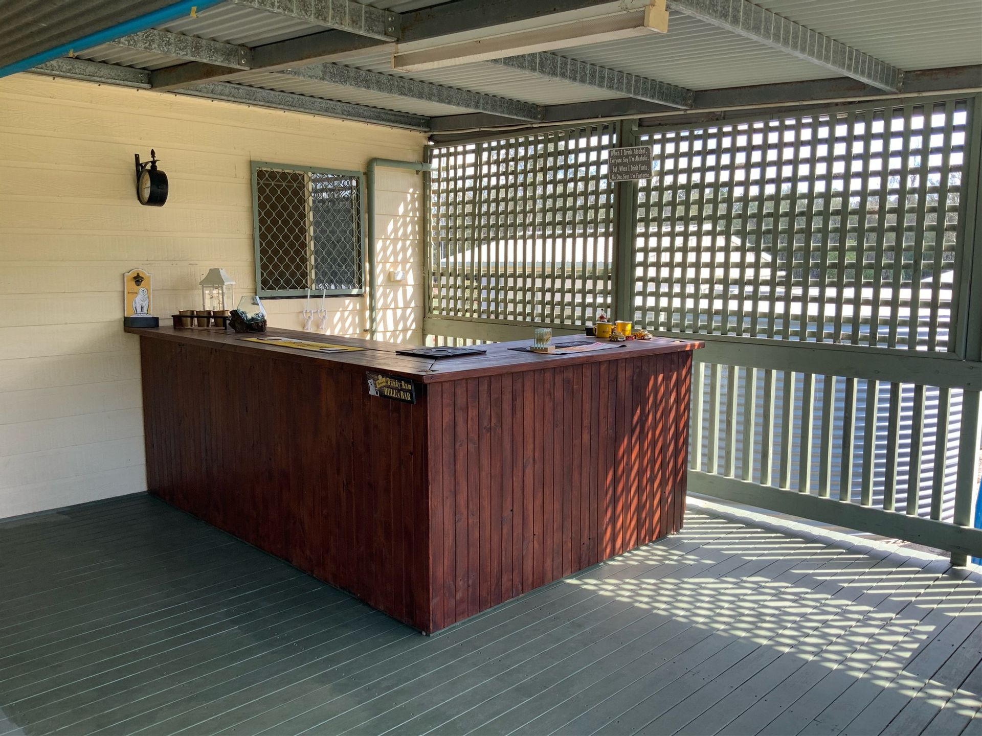 FULL SIZED FRONT VERANDAH, LARGE COVERED BACK VERANDAH 11M X 7M.