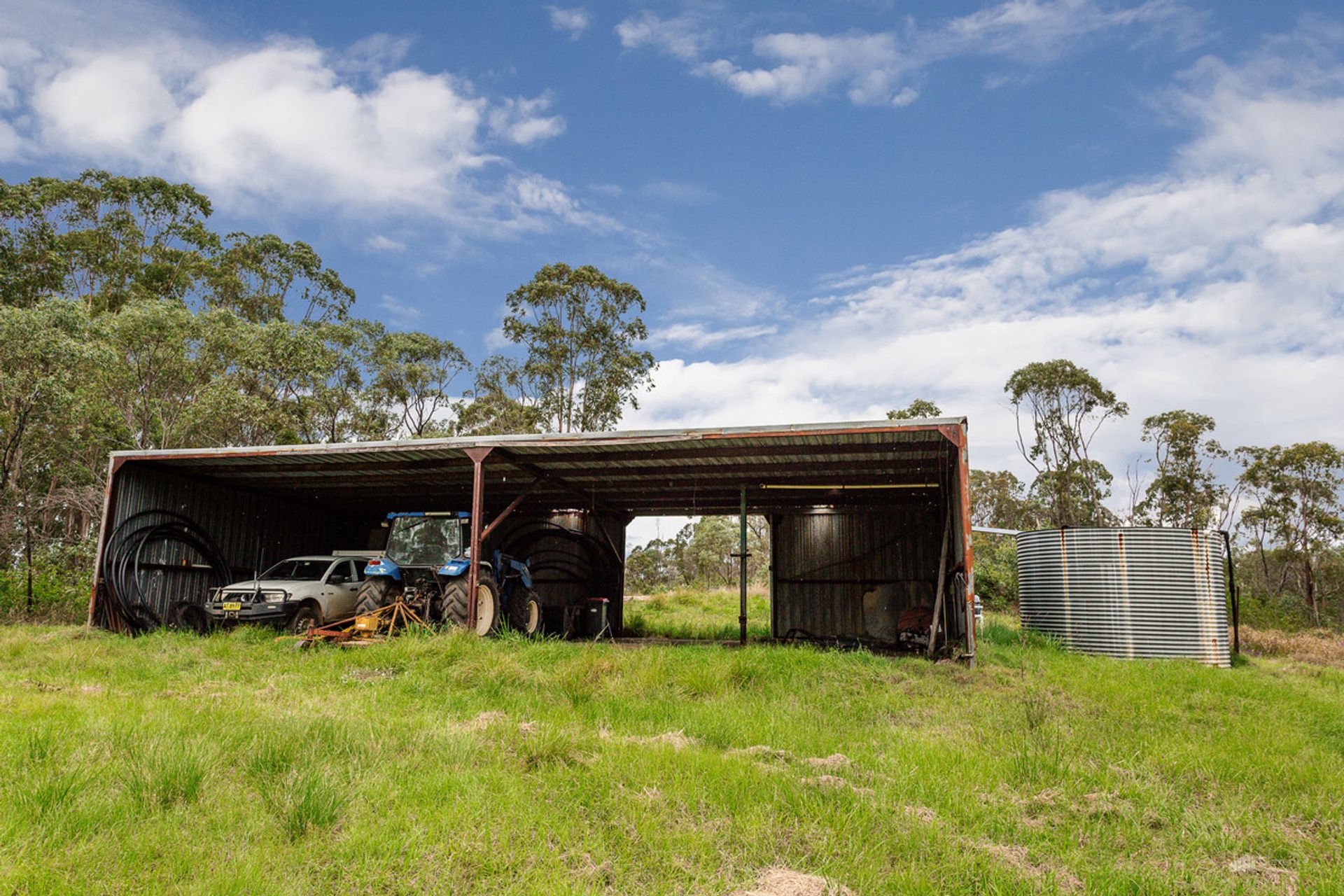 Previously cleared with some tea tree planted in one section, the options are open to get on the tractor and slasher and reclaim the original cleared land, allowing for a number of options. There is also a small area planted with native hardwood timber, a nice little supplement in the future or resource to use on the land.