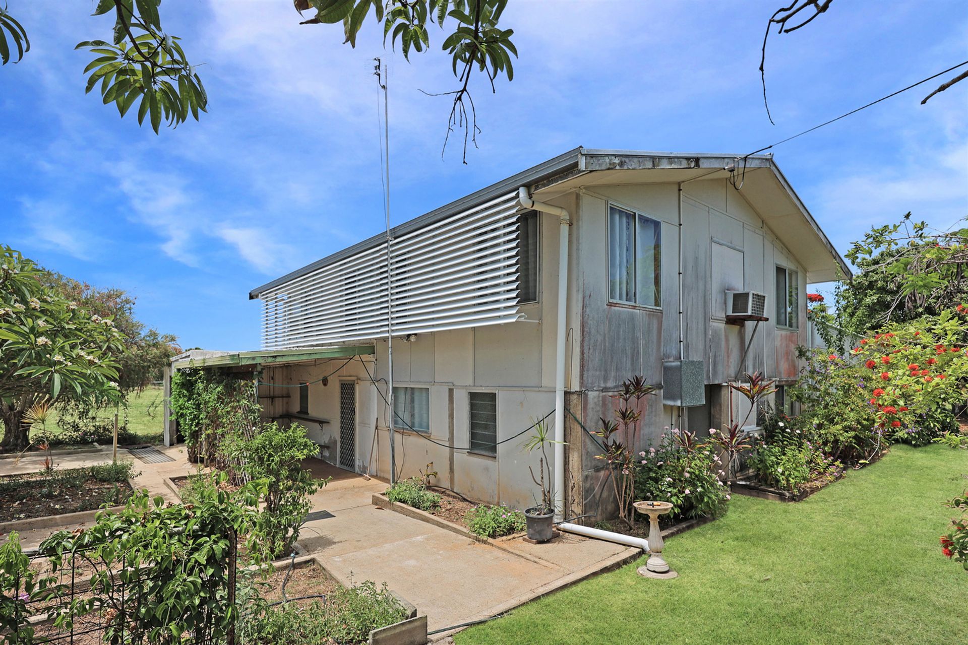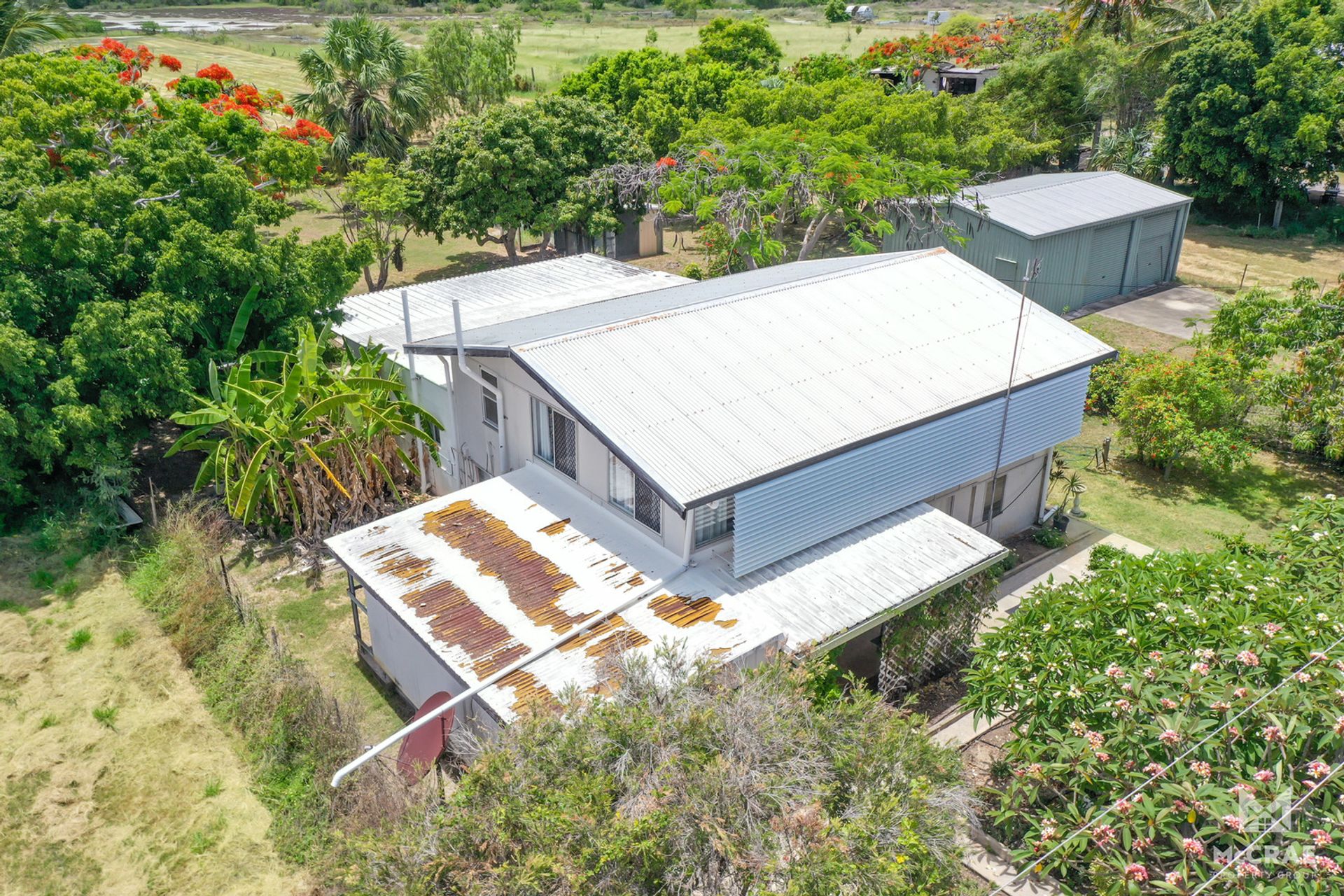 4.99 ACRES!!! This four bedroom home is such a unique and hard to find acreage gem in Bowen. There is so much potential here to create your own rural escape. With renovation, this home could be a very spacious family property. Currently as the home sits, there are four bedrooms on the upper level and a family bathroom. On the lower lever there has been a large extension added to the back of the home that could be your new kitchen and living area. There is also a bathroom on this level. The kitchen is currently position underneath the home, this area has been fully closed in but the ceiling height is lower than formally required. Off the back of the home is a very large undercover entertaining area that overlooks established gardens with bird aviaries and green houses constructed. There is work to do with this property, BUT the property is very liveable while you complete the works to create your rural dream.