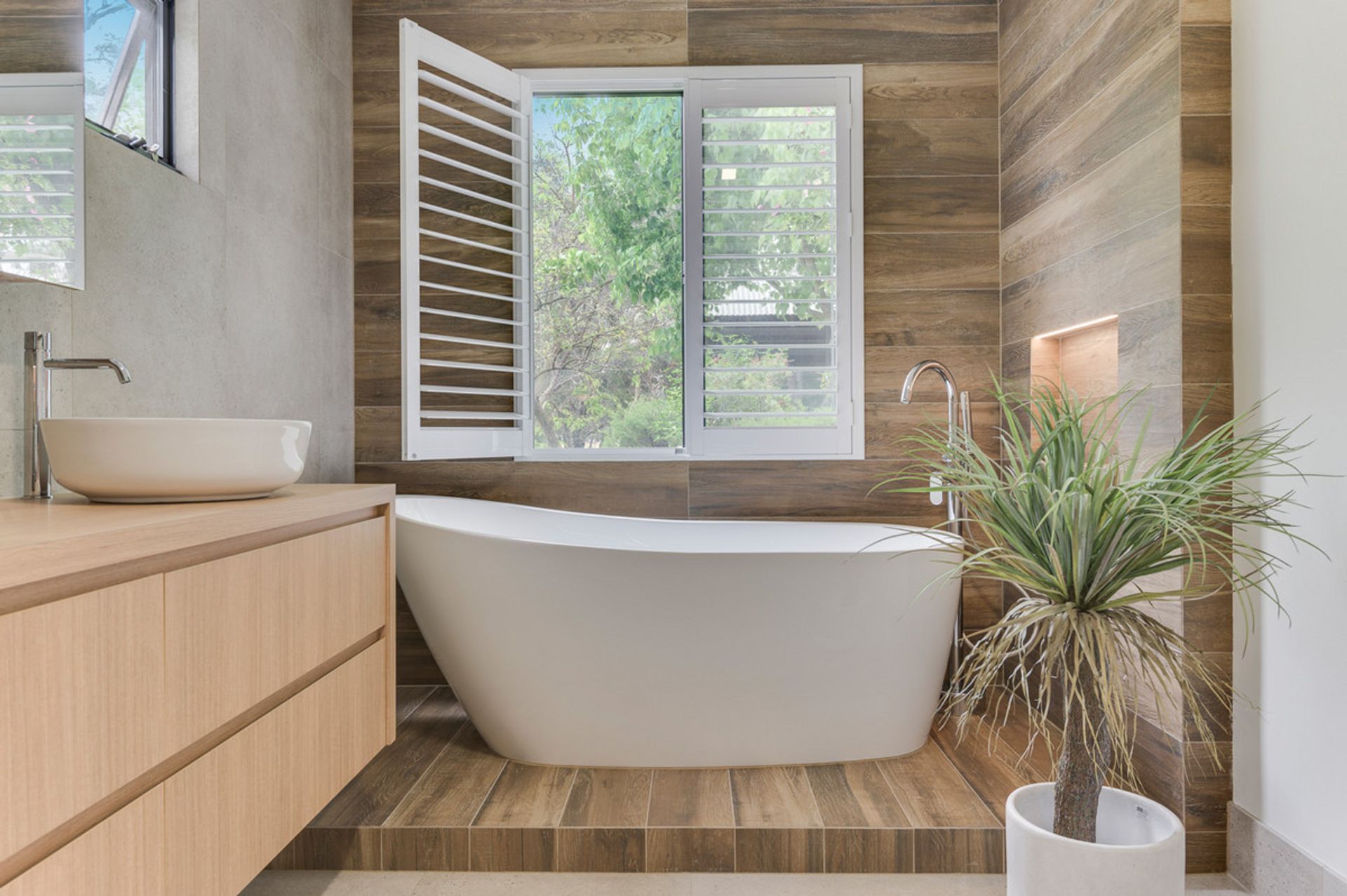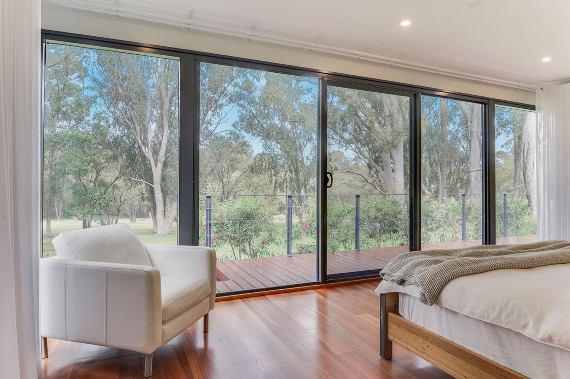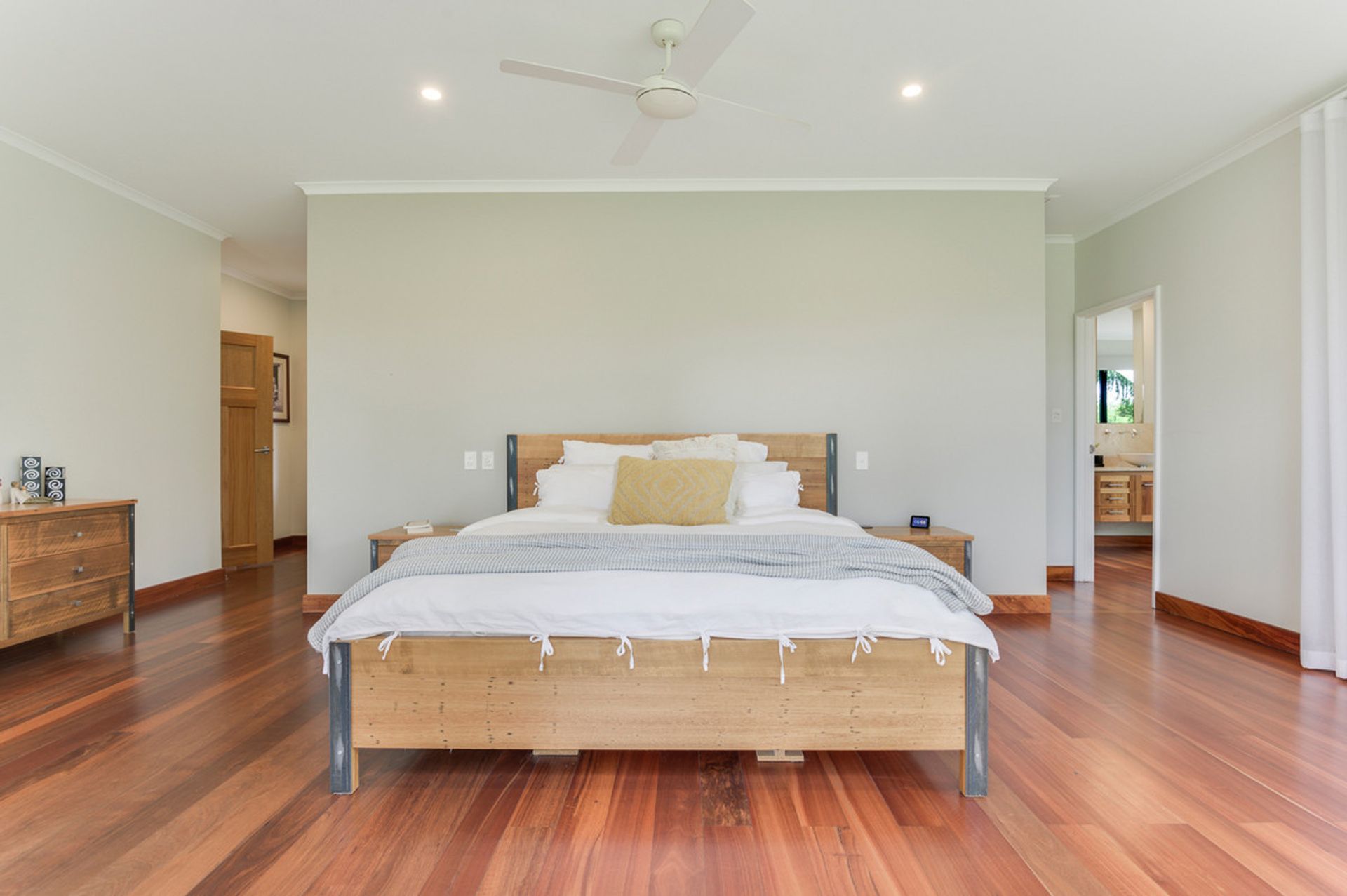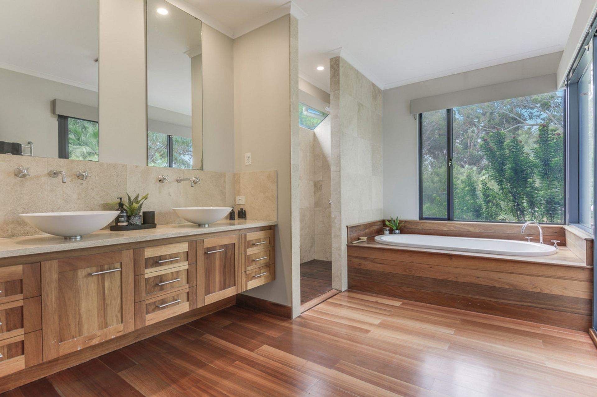 -Limestone feature walls with solid Jarrah flooring, high ceilings