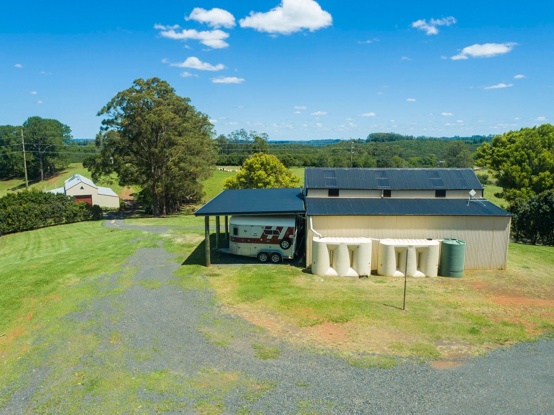 Enter the property through a long driveway that meanders past the rolling paddocks and dams leading to the infrastructure, abundant water with a creek 2 spring-fed dams and 1x5000ltr and 2x 2500 water tanks with the added bonus of town water. The choice is yours -run horses, cattle or any livestock, set up agricultural/ horticultural pursuits, farm stay, home office or dual family. living.