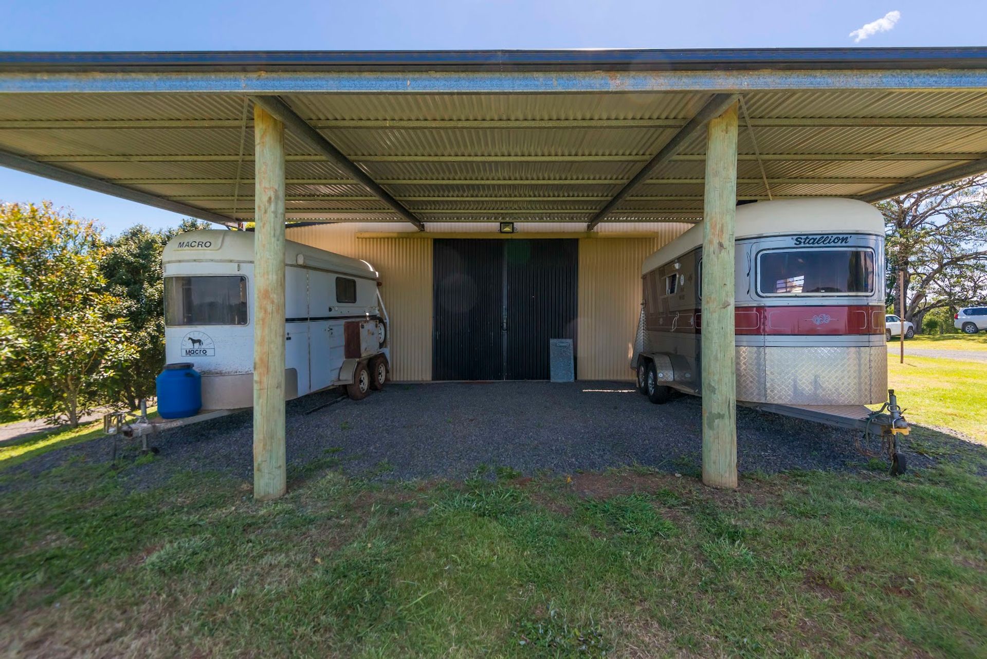A handy storage carport, Gravel floor, a metal roof Floor area of 64sqm.
