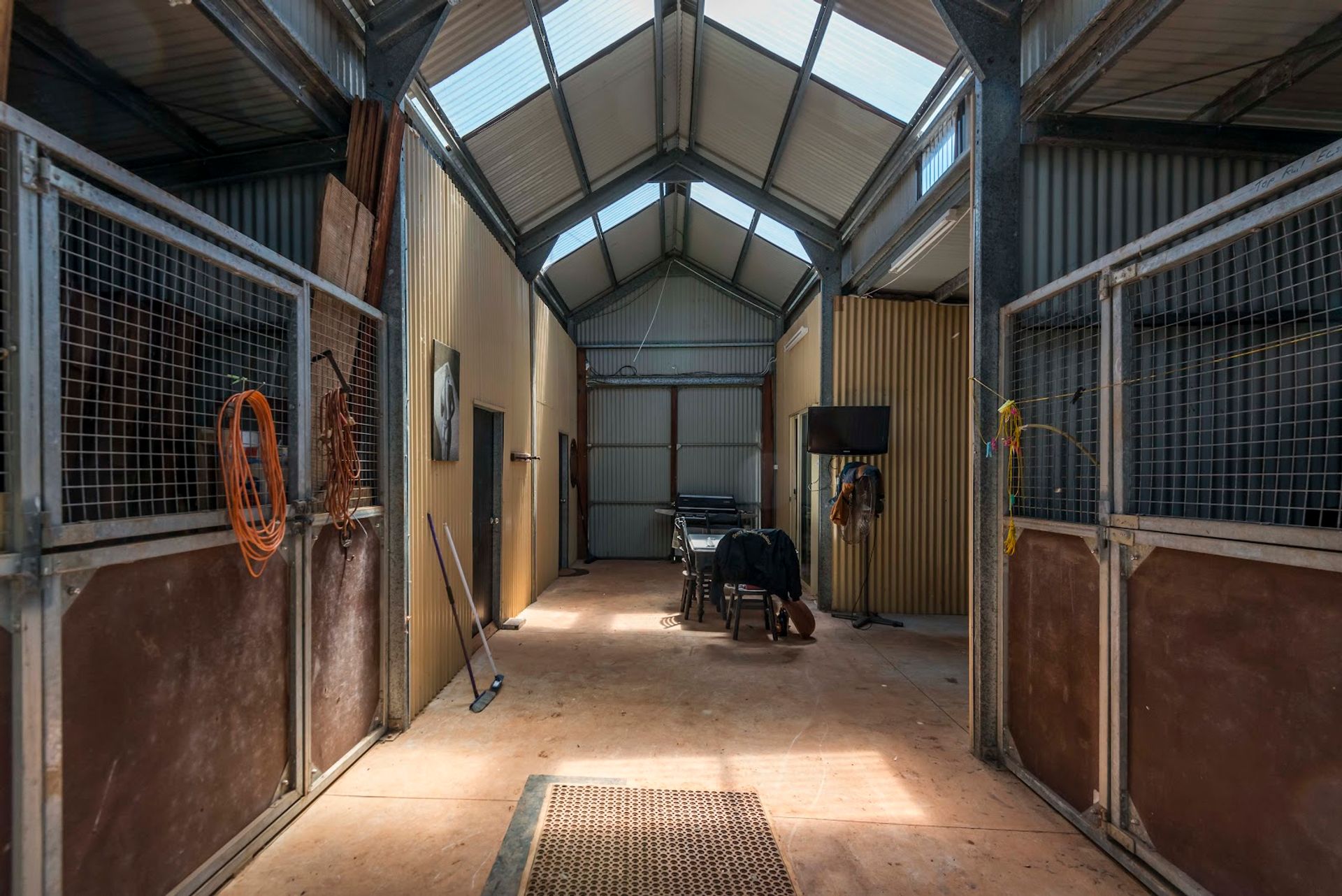 The property includes a barn-style shed the internal partitioning provides two studios on the lower level each with a living area. and kitchenette. bathroom/laundry and bedroom.