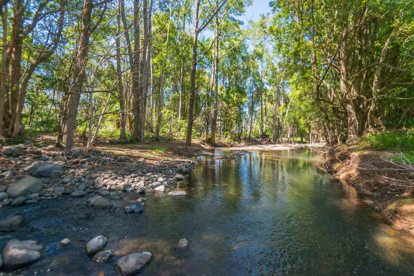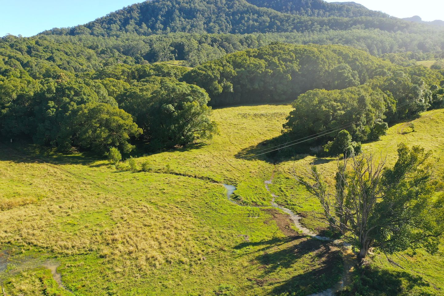 Approx 162.8 acres of forested and grazing land situated only five minutes from the village along a sealed road, in arguably one of Nimbin's most beautiful and picturesque valleys, is a great way to describe this piece of magic. Farming with 360-degree views, two beautiful waterways running through the centre, and three dominant ridges spread across this property which sits below Blue Knob and the Nightcap National Park, the entire eastern boundary is the Goolmangar Creek (approx. 556m), a permanent source of pristine water filtering down through the rocky creek from Sam's Gully further up the valley.