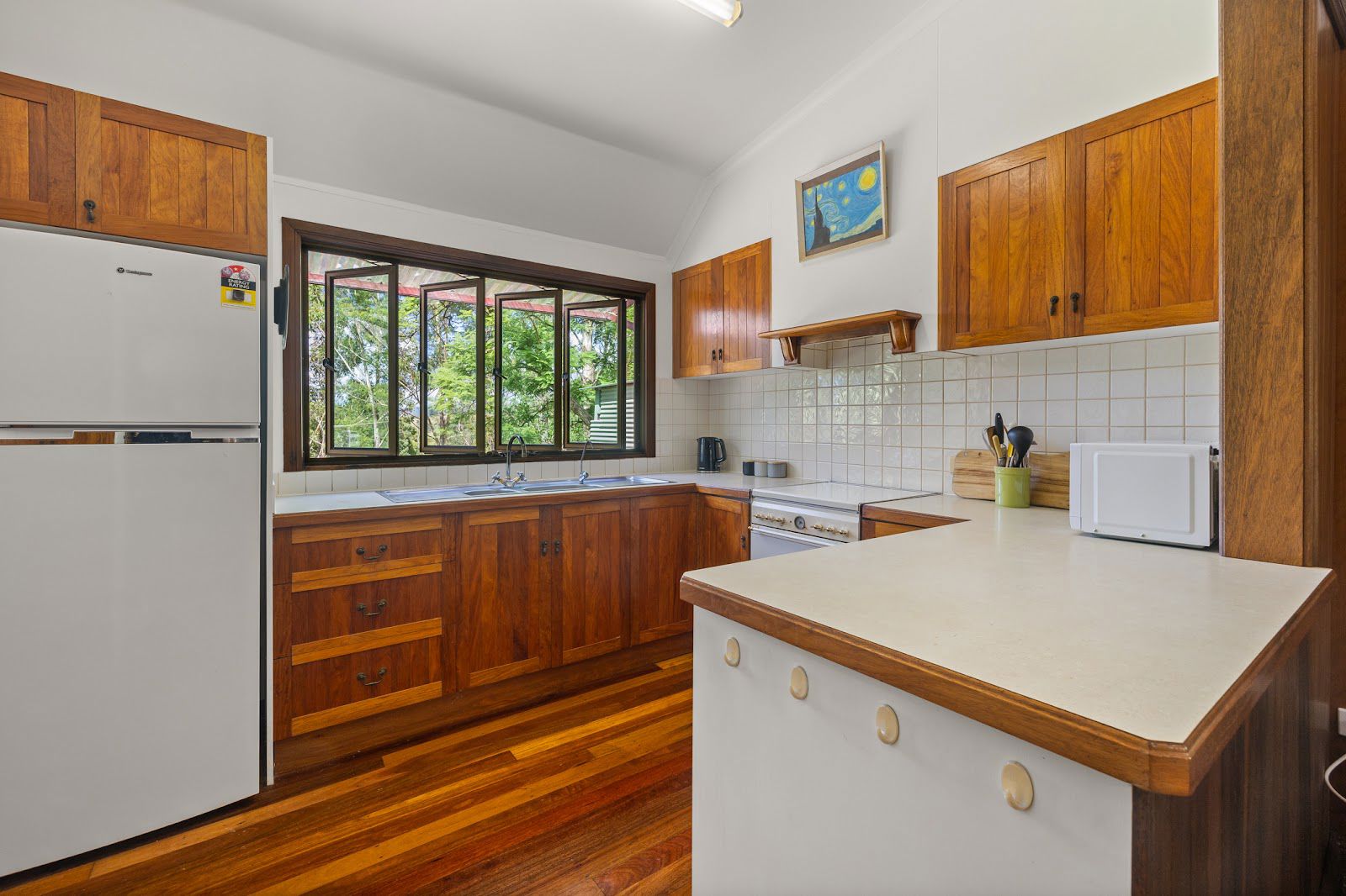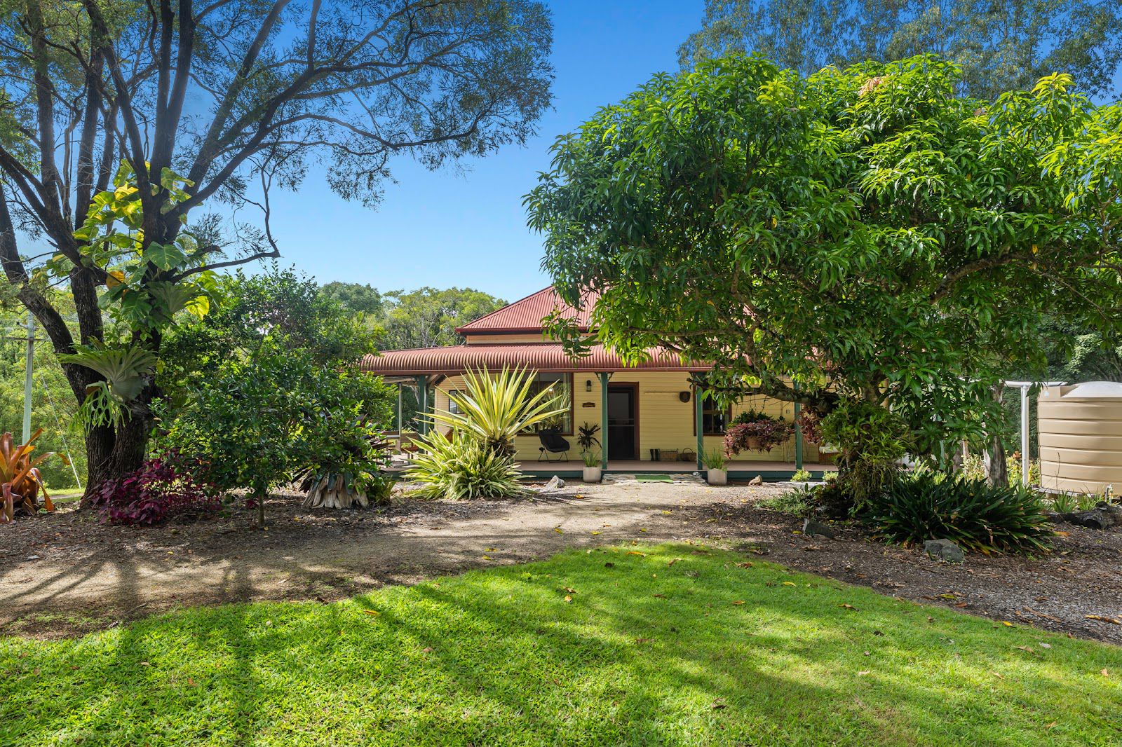 The location of the property provides peace and quiet. Enjoy the well-maintained garden, with a variety of citrus trees, macadamia nuts, mangos, guava, feijoa, tropical apple, bananas, mulberries, jaboticaba, and dragon fruit, as well as a chook yard and vegetable beds. Beautiful established flowering trees and the majestic old fig tree is a sight to behold. Furthermore, there are three rainwater tanks holding 59,000 litres, as well as two smaller tanks.
