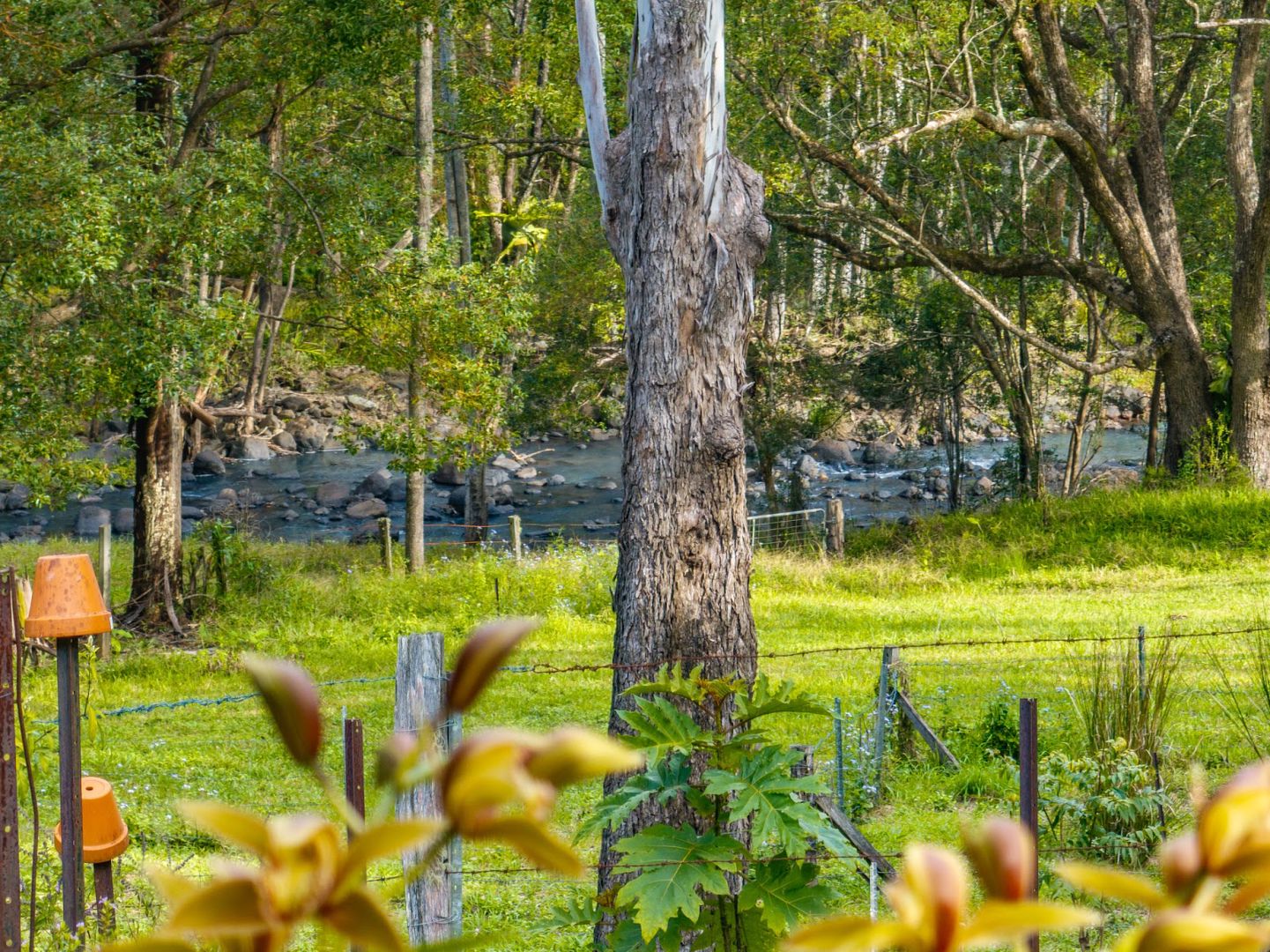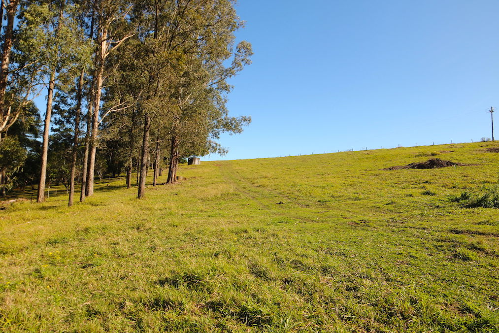 Approximately half of the land is currently cleared and used for small scale grazing, with other areas containing a variety of native trees and shrubs, including eucalypts, wattles, old cedars, casuarinas, and dense pockets of rainforest species, all providing shade. The property is also home to a variety of wildlife, including wallabies, echidnas, lace monitors, seasonal monarch butterflies, and a wide variety of birds come and go throughout the changing seasons.