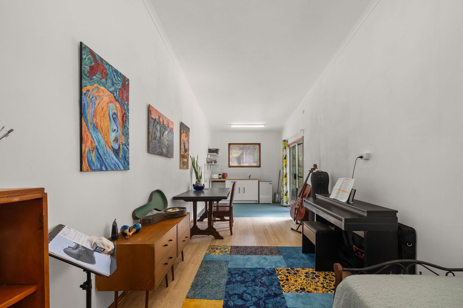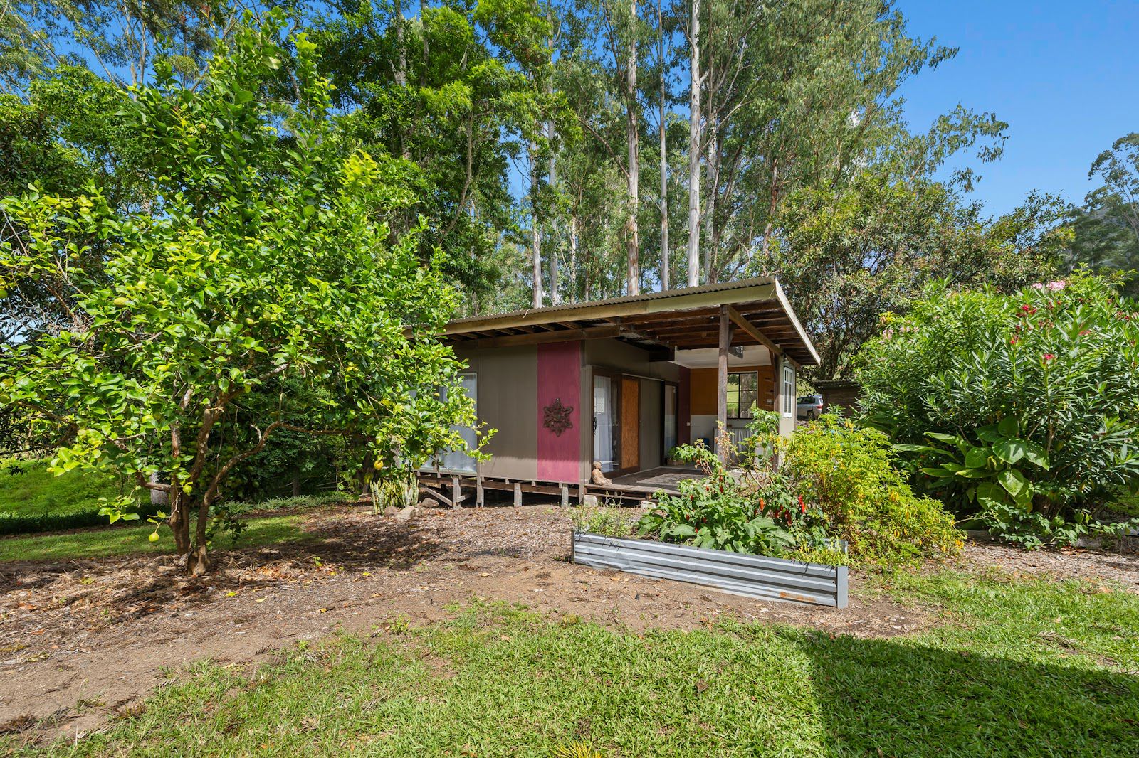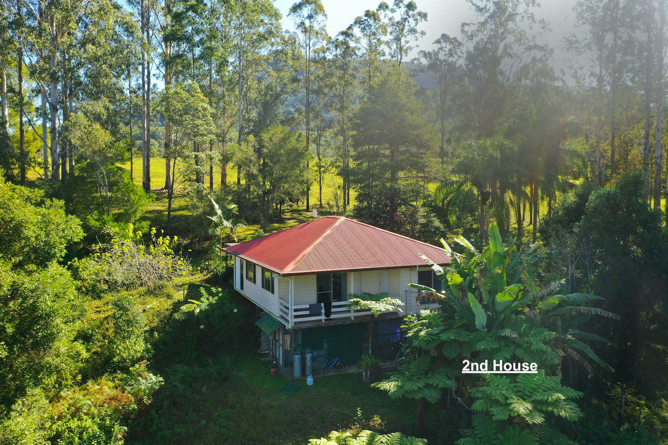 The second house is a charming, approximately 40-year-old abode (129sqm), is clad in hardiplank and features two original bedrooms, a sleepout, and two decks - a large back deck and a small breakfast deck overlooking a creek with glimpses of the Nimbin Rocks. The interior is carpeted and floored with floorboards, and a 5kw reverse cycle air conditioning system ensures a comfortable temperature all year round. The home has always been rented to tenants. Around the two homes there are 25+ fruit and nut tree’s.
