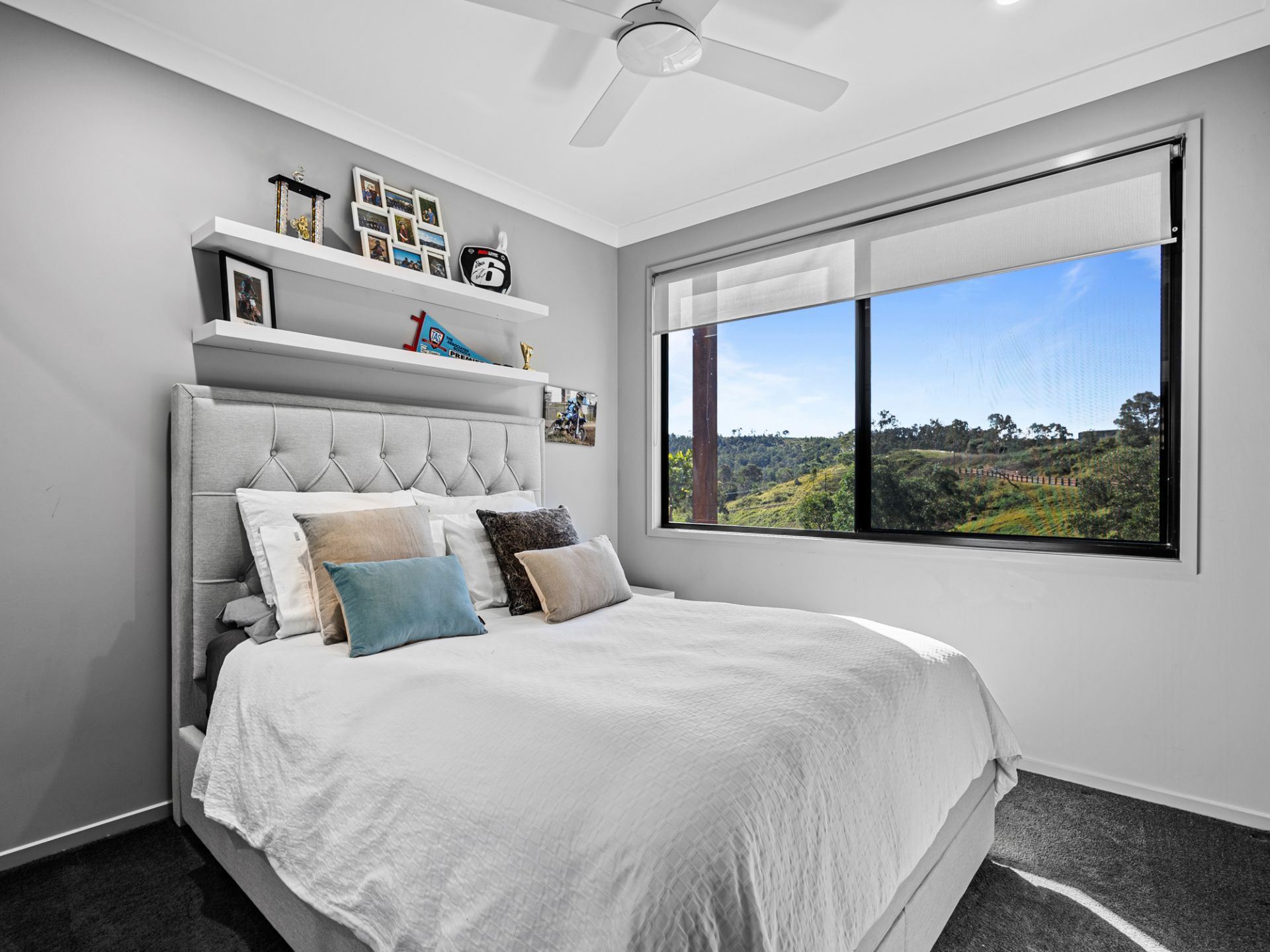 > 3 bedrooms all carpeted with built in robes & ceiling fans
