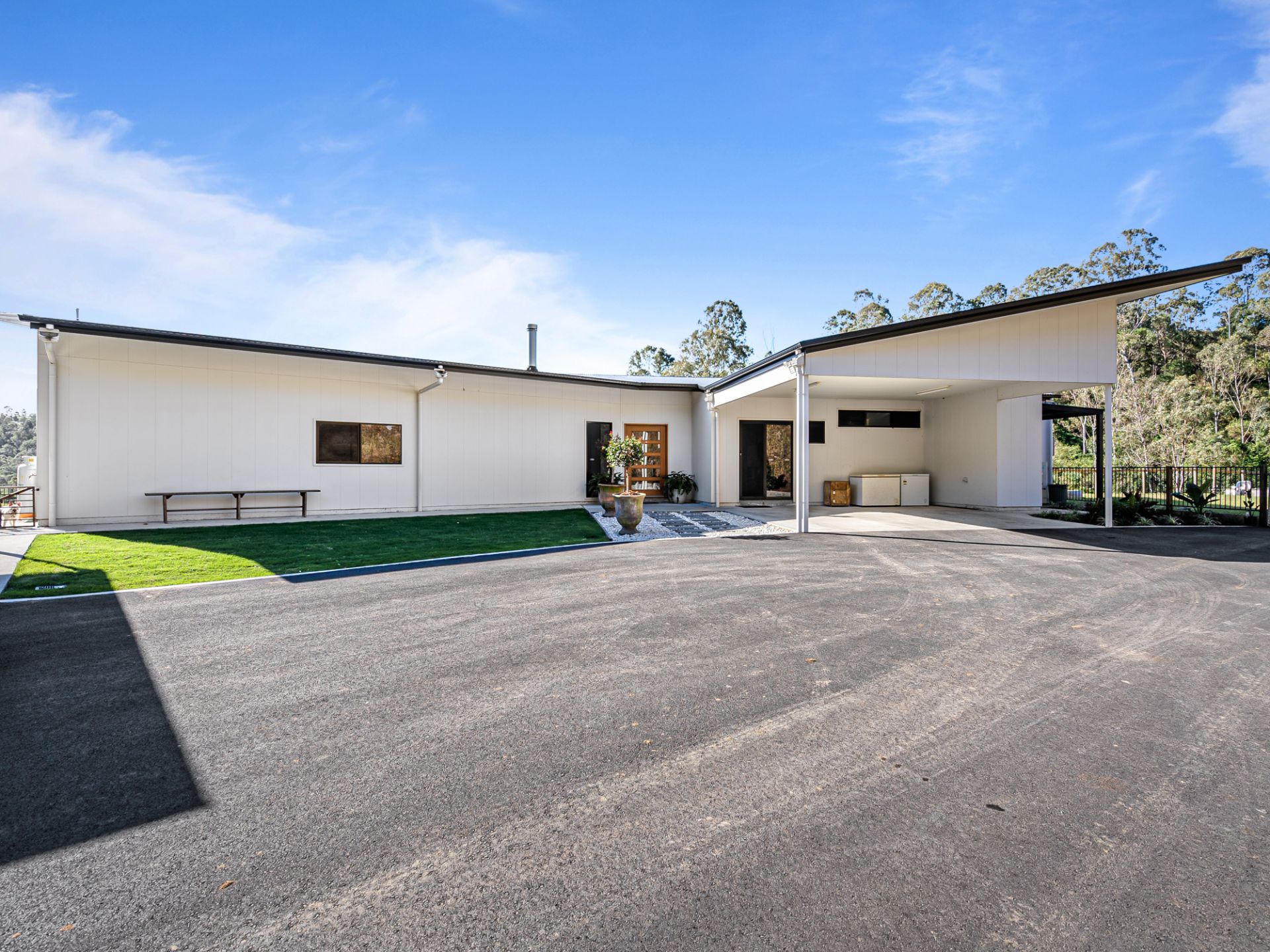 Whilst there isn’t town water services connected, there’s certainly no shortage of water on this property with a 30,000L water tank that services the home, a 12,000L tank services the gardens and 2 x 5,000L tanks for extra use off the carports as required. Septic system in place for the home.