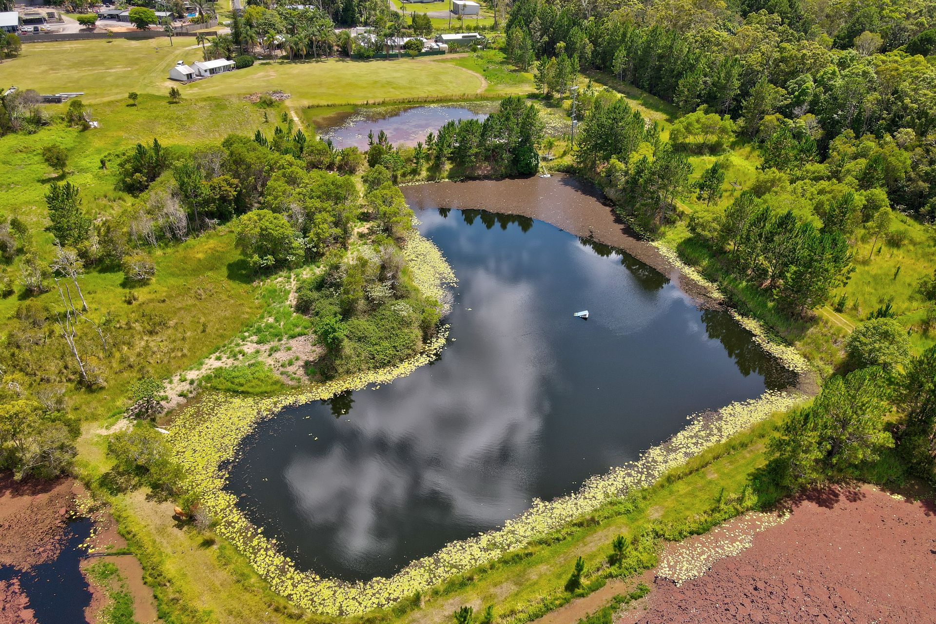 As you would expect for an ex aquacultural operation there is excellent water available on the property. Dam No.1 (80m x 50m) is a shallow dam and which could be filled in to give extra usable land. Dam No.2 has a "L" shape and is 100 m long and 90m wide in its widest point. This dam is the deepest of the three being approximately 6 meters deep. Dam No.3 is again a "L" shaped dam and is located on the southern and western boundary at the bottom of the property. This dam is about 140 meters long at its longest point and 100 meters wide at its widest point and approximately 3 meters deep. In addition to the dams the property has 2 operational bores with good water flows giving excellent water security.