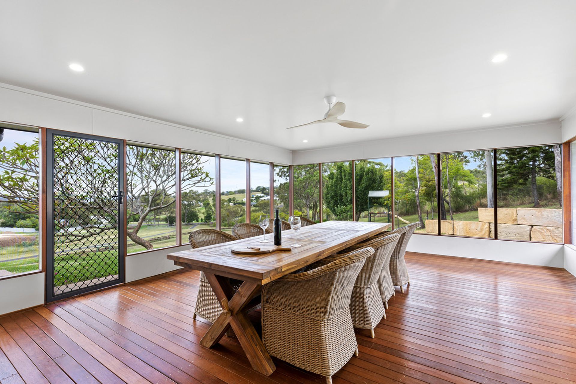 Walk across the black butt polished flooring out on to the fully enclosed screened outdoor entertainment area which overlooks the rolling green hill down to the fully secure front gate. This home also boasts a second outdoor area plus an outdoor kitchen to maximise entertainment and comfort all year round!