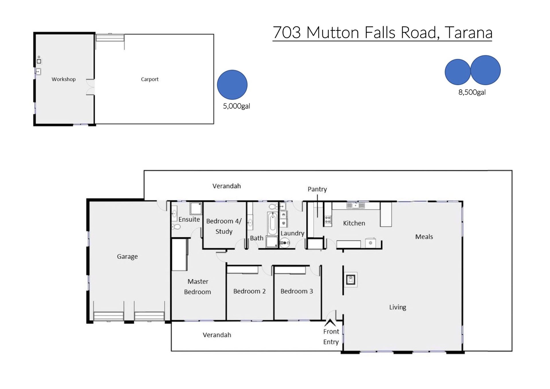 • Good water with across two dams and approx. 85,000 litres caught from roof's into in tanks with first flush drain system