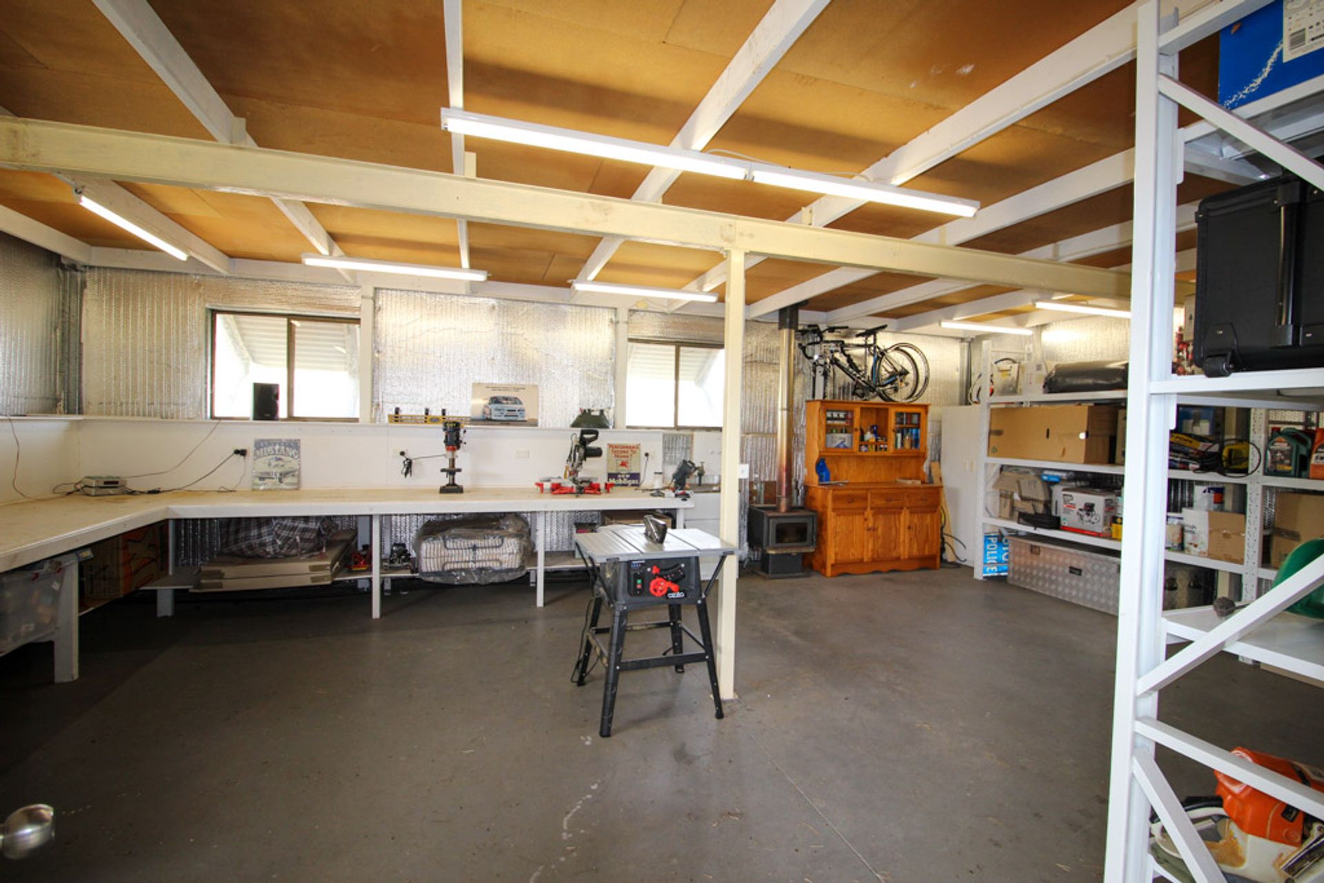 • Double automatic garage, massive open face shed with 3 bays, one drive through, & attached powered workshop & loft storage