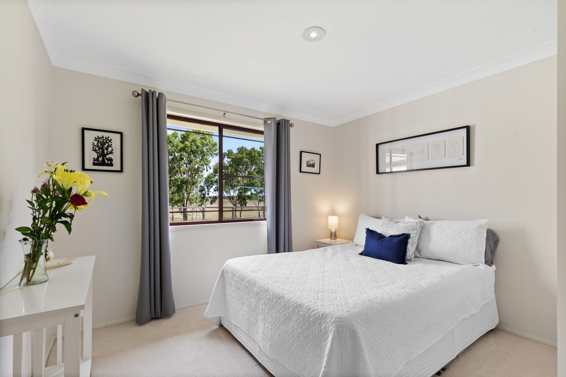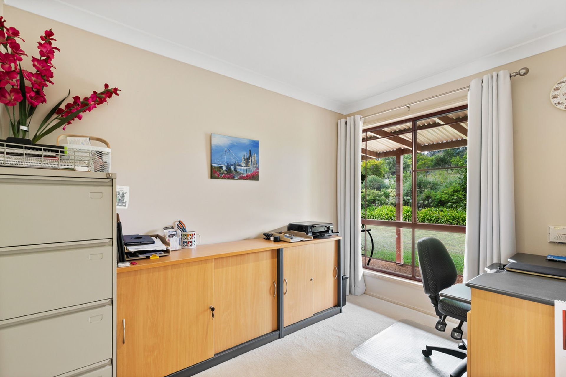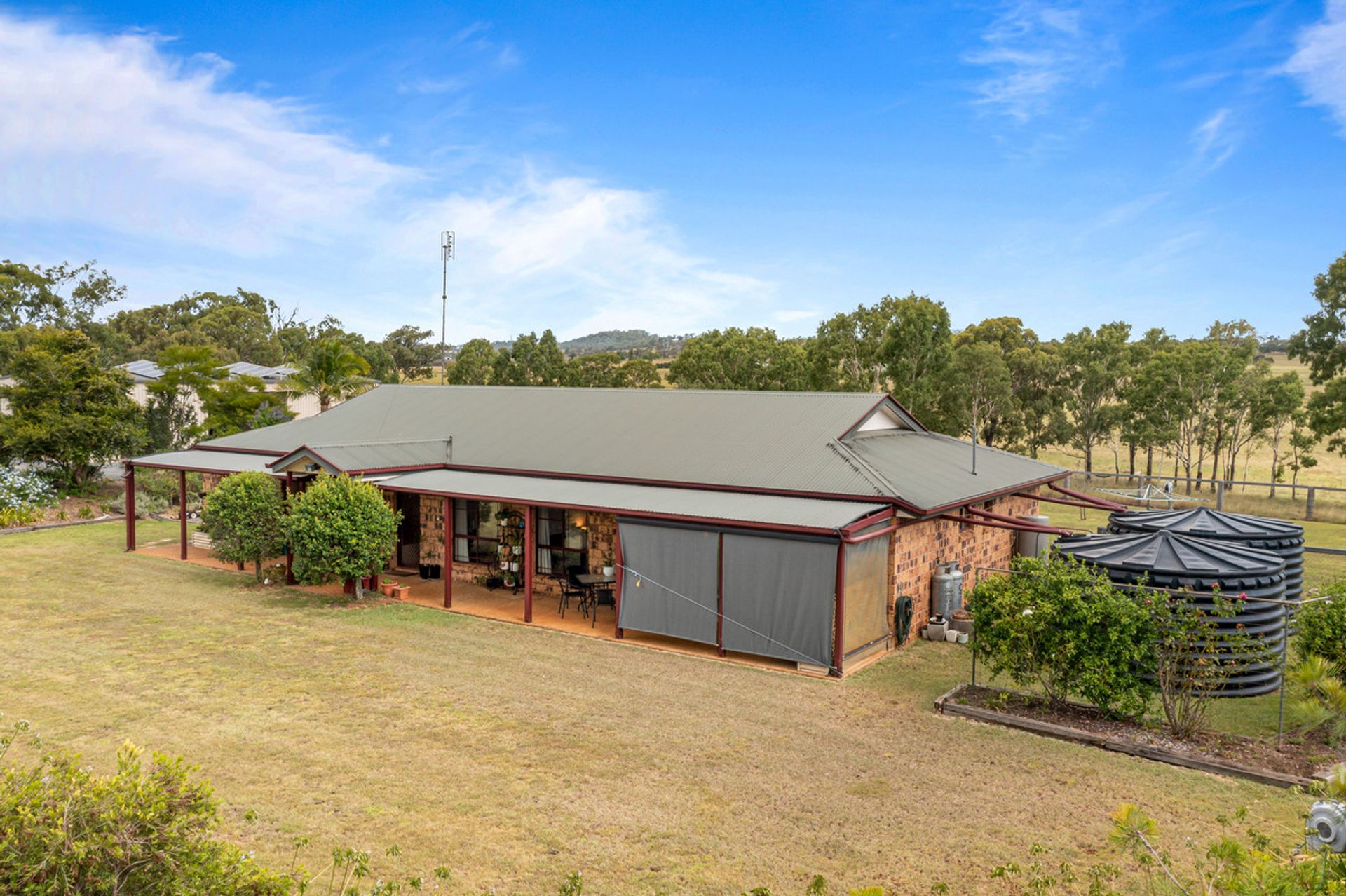 At just over 12 hectares (30* acres), the property is beautifully presented and boasts an outstanding country garden, very well-maintained brick homestead and idyllic views of the surrounding countryside. The home is well appointed with a modern kitchen which includes European appliances and gas cooktop. This home has multiple living areas, four carpeted bedrooms with built-ins, an office, a large family bathroom with shower and spa bath and an ensuite.
