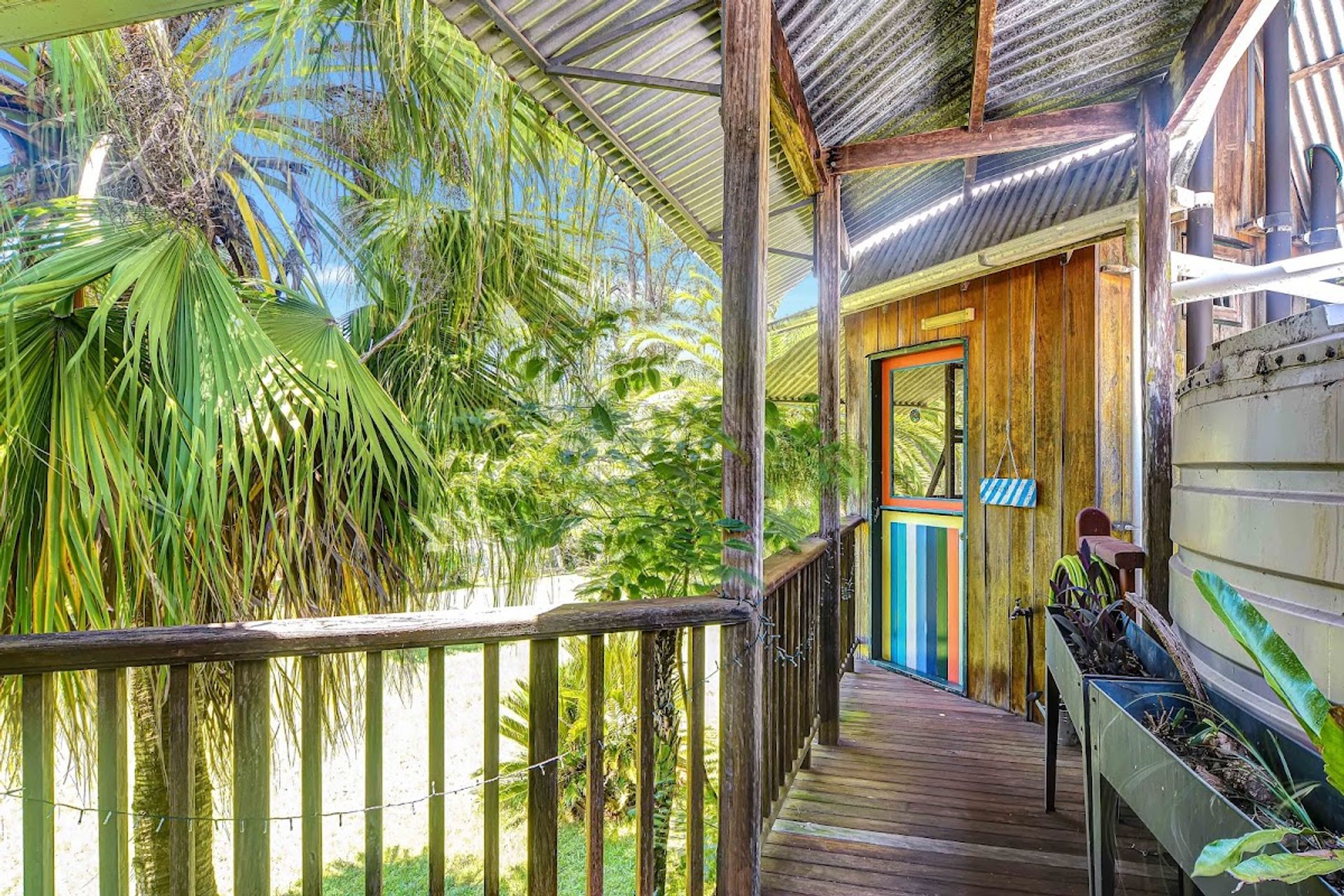 Self-composting toilet has been well appointed with handcrafted timber sink, timber floors, high ceiling and beautiful views of nature outside.