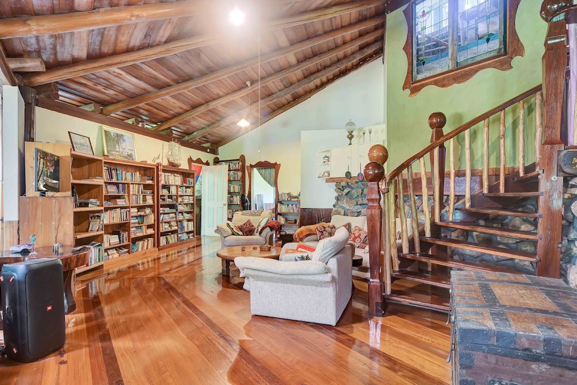 Featuring open plan living design with high ceilings lined with local hardwood timbers and big bold handcrafted support beams. On entry you instantly notice the neutral temperature.
