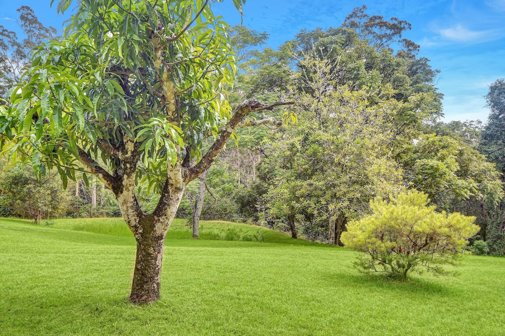 - An orchard with several mature macadamias, pecan, mango, pear and peach trees.