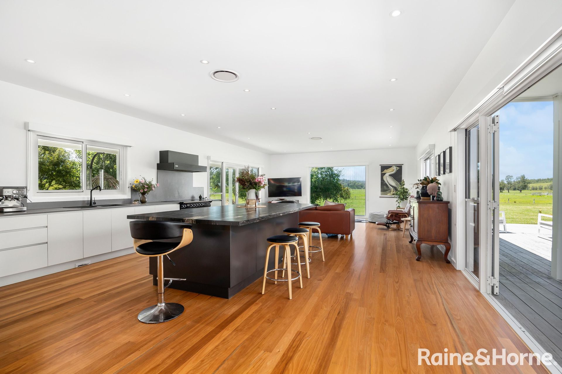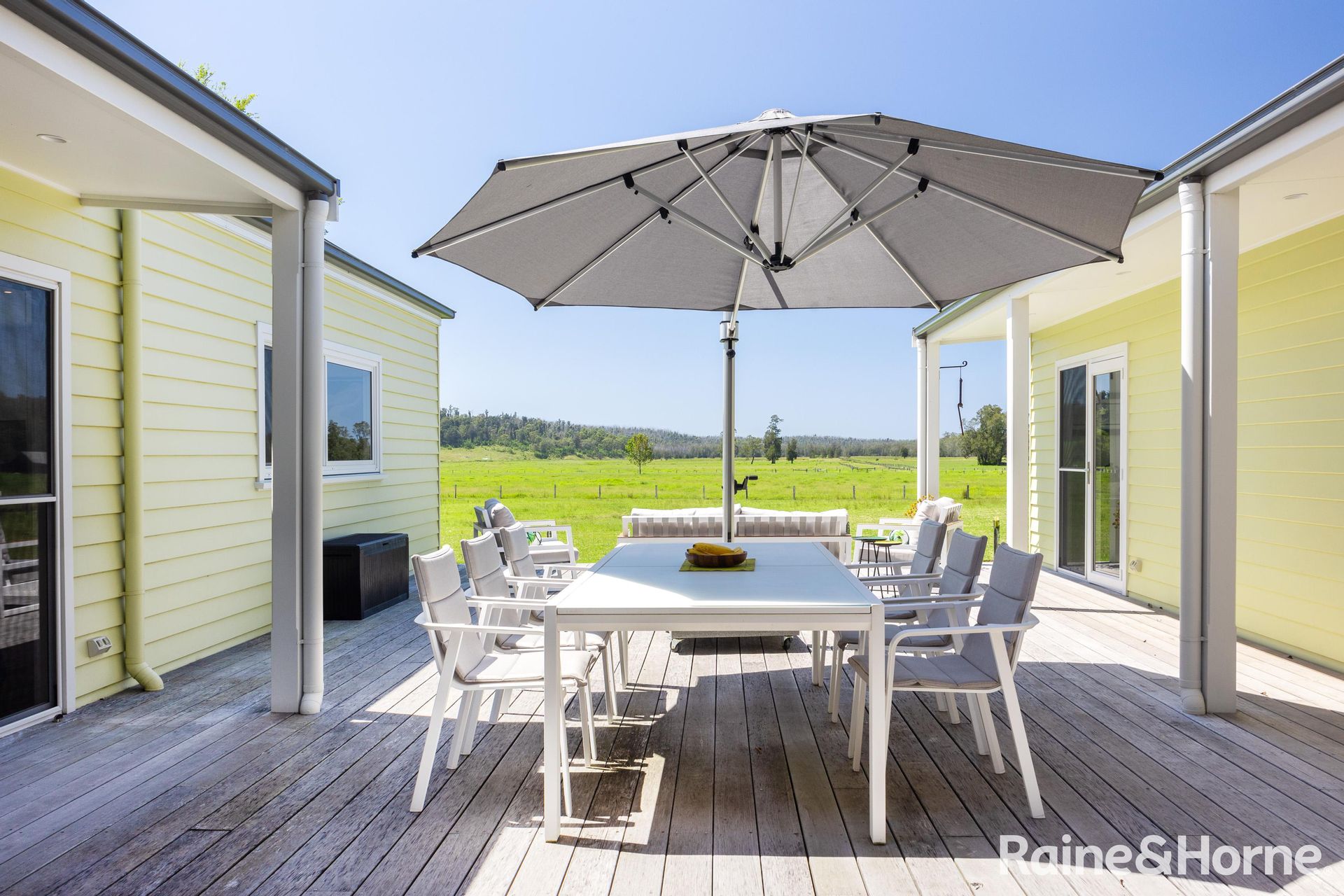 As you make your way down the tree-lined country lane, you'll be greeted by the natural beauty of the surrounding mature tree screens and ornamentals that provide privacy and a sense of seclusion. You'll feel like you're in your own private paradise, with large picture windows framing the picturesque rural views and French doors that offer multiple access points to the wraparound verandahs and courtyard deck, where you can soak up the sun or capture the sea breeze.