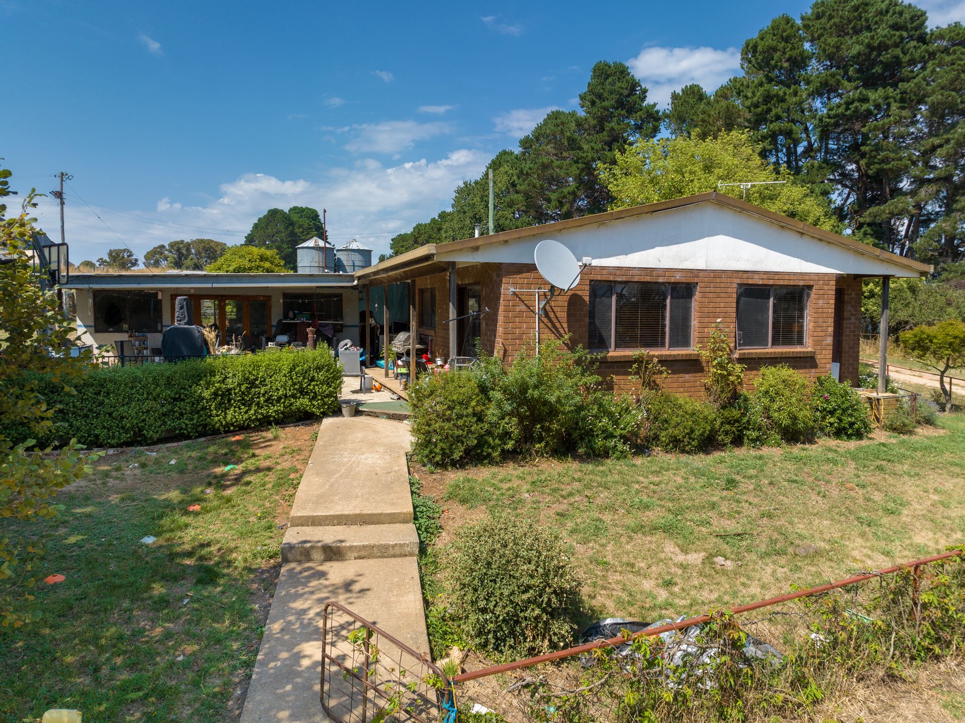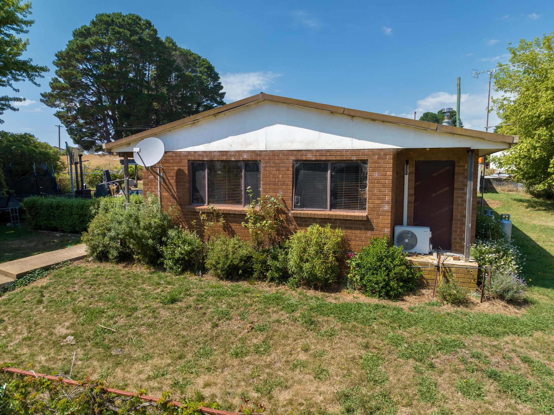 • Four-bedroom, two-bathroom, one office brick homestead that enjoys a slow combustion wood fire, split system a/c and back to grid solar system.
