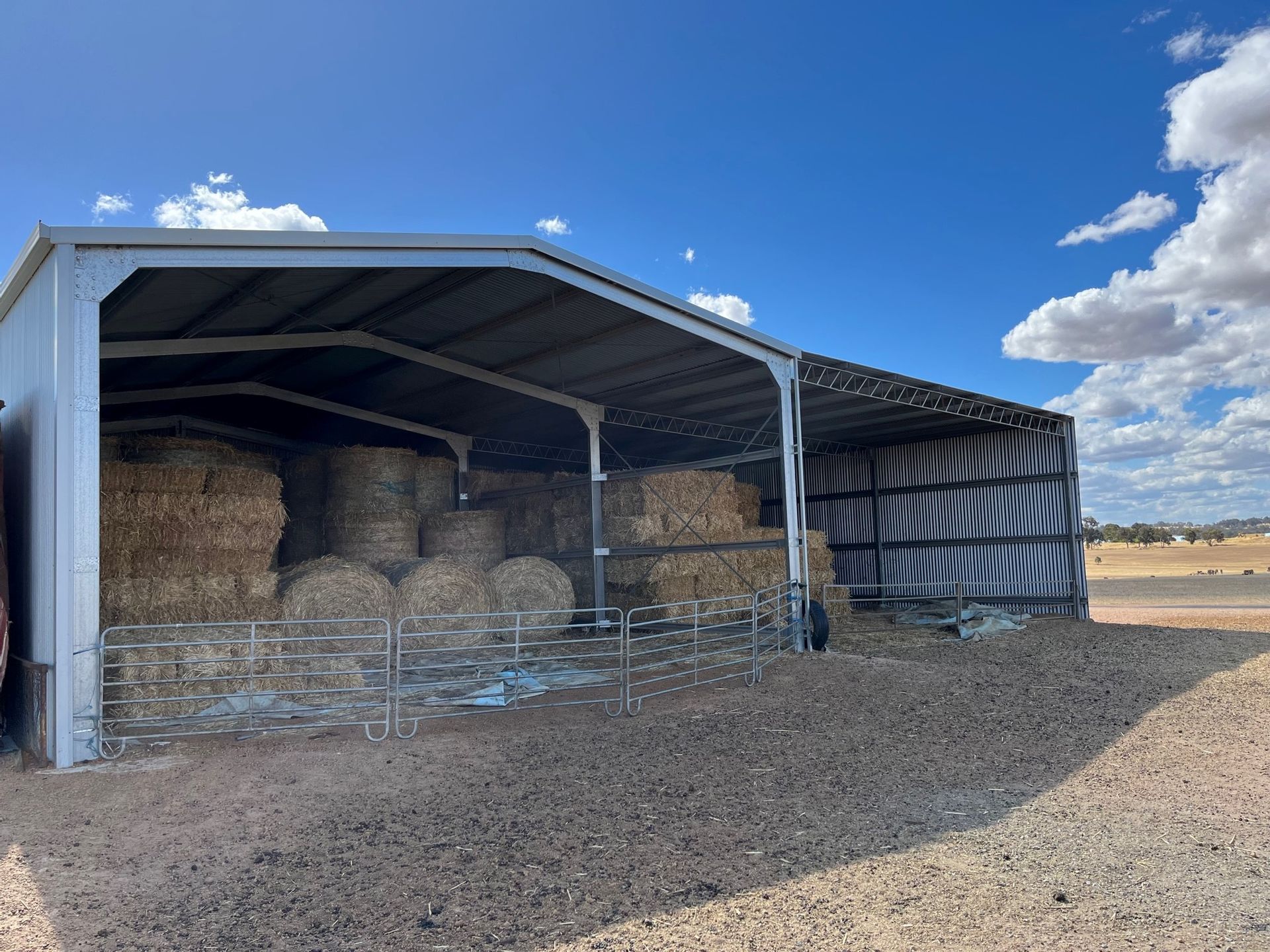 • 9m x 13m Steel Hay Shed with 8m x 13m Lean-to.