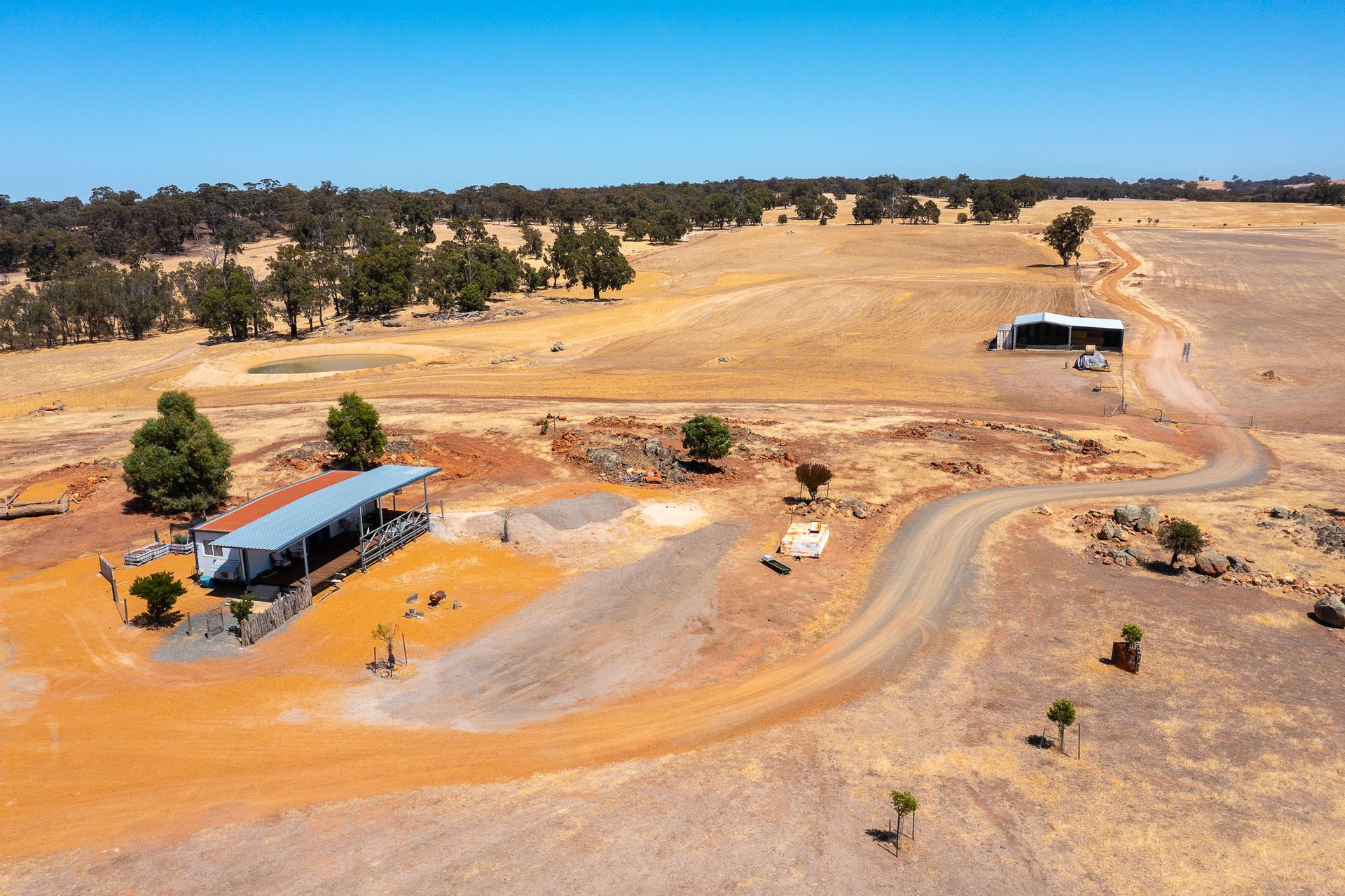 The undulating Property has a mix of medium loams and Granite soils, which is typical of the remnant native Red Gum and Jarrah tree country. It has been fully refenced in the past few years into 6 main paddocks. There is abundant water through 3 strategically located dams and 3 soaks that service each paddock on the property.