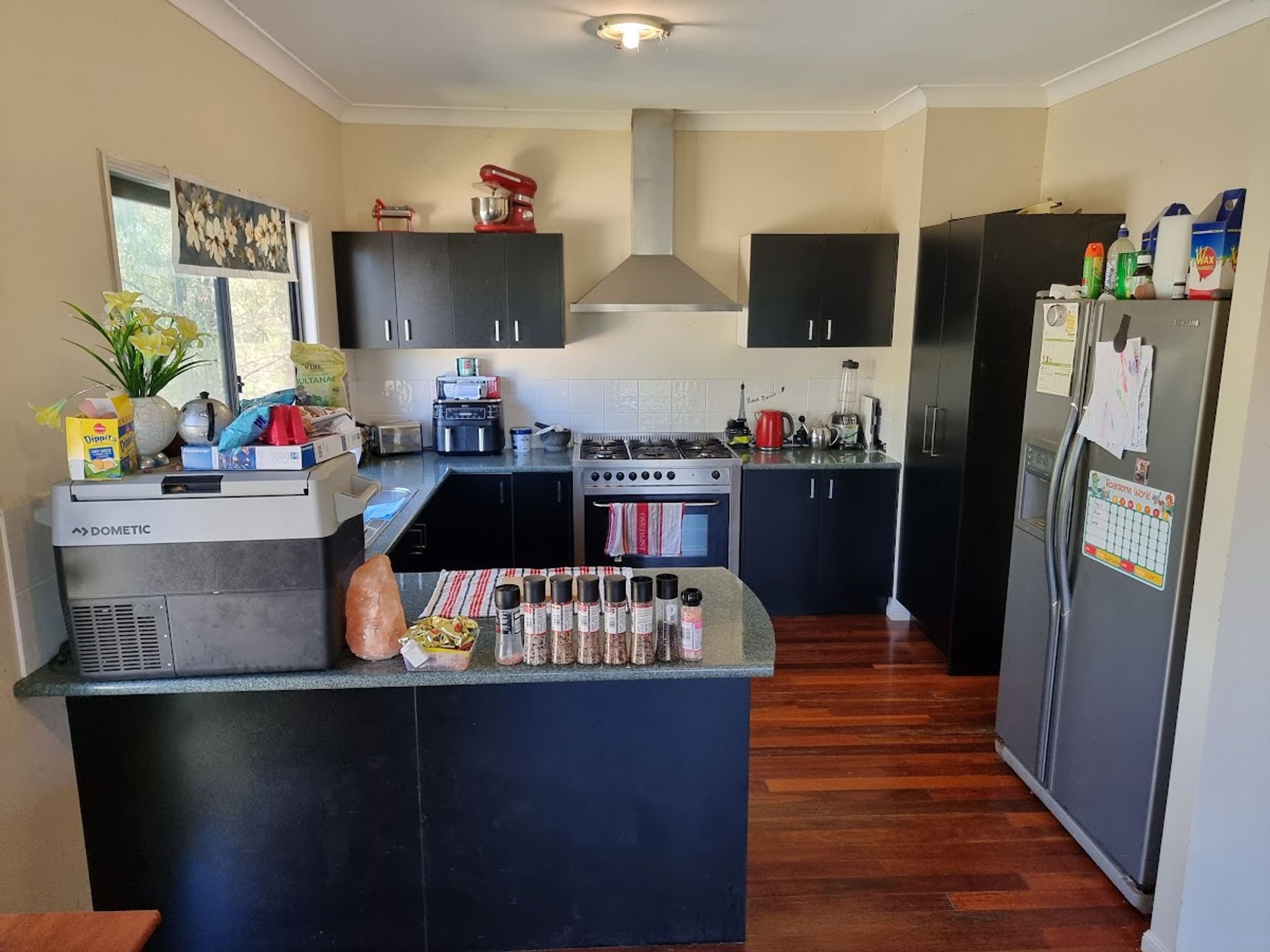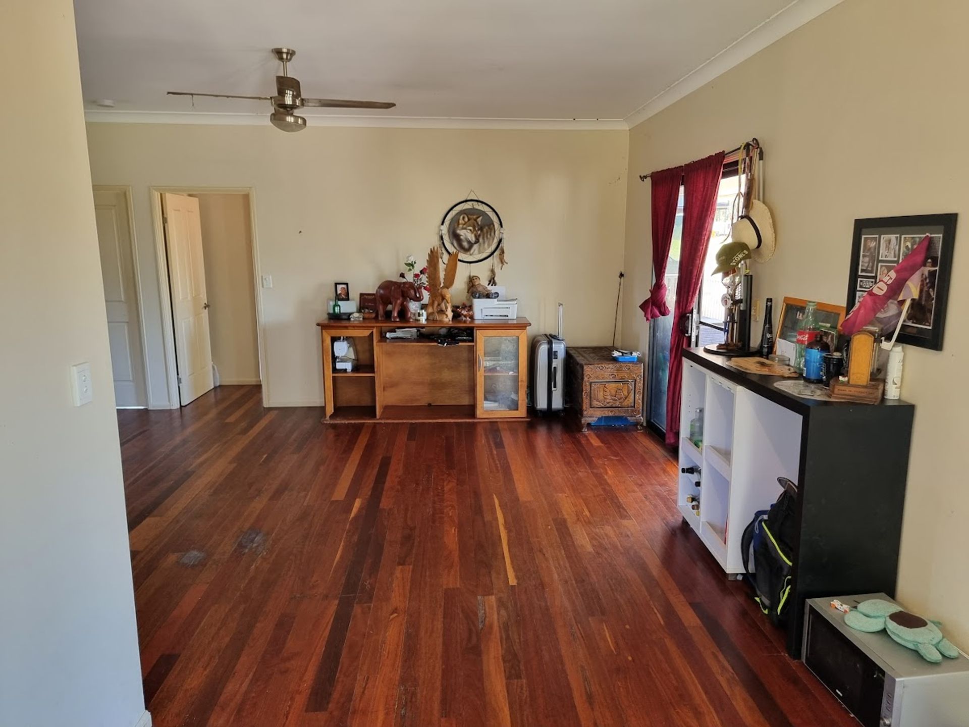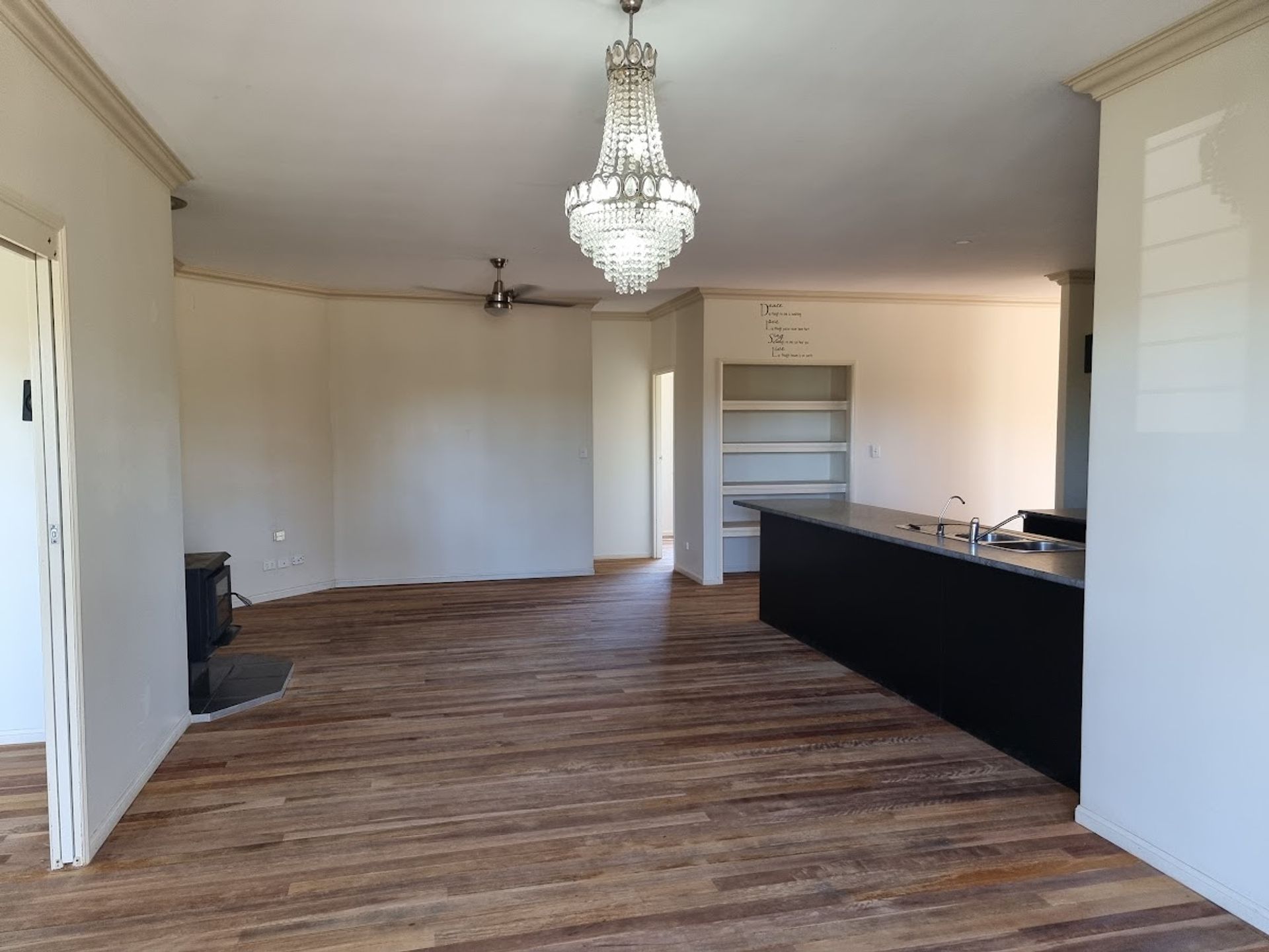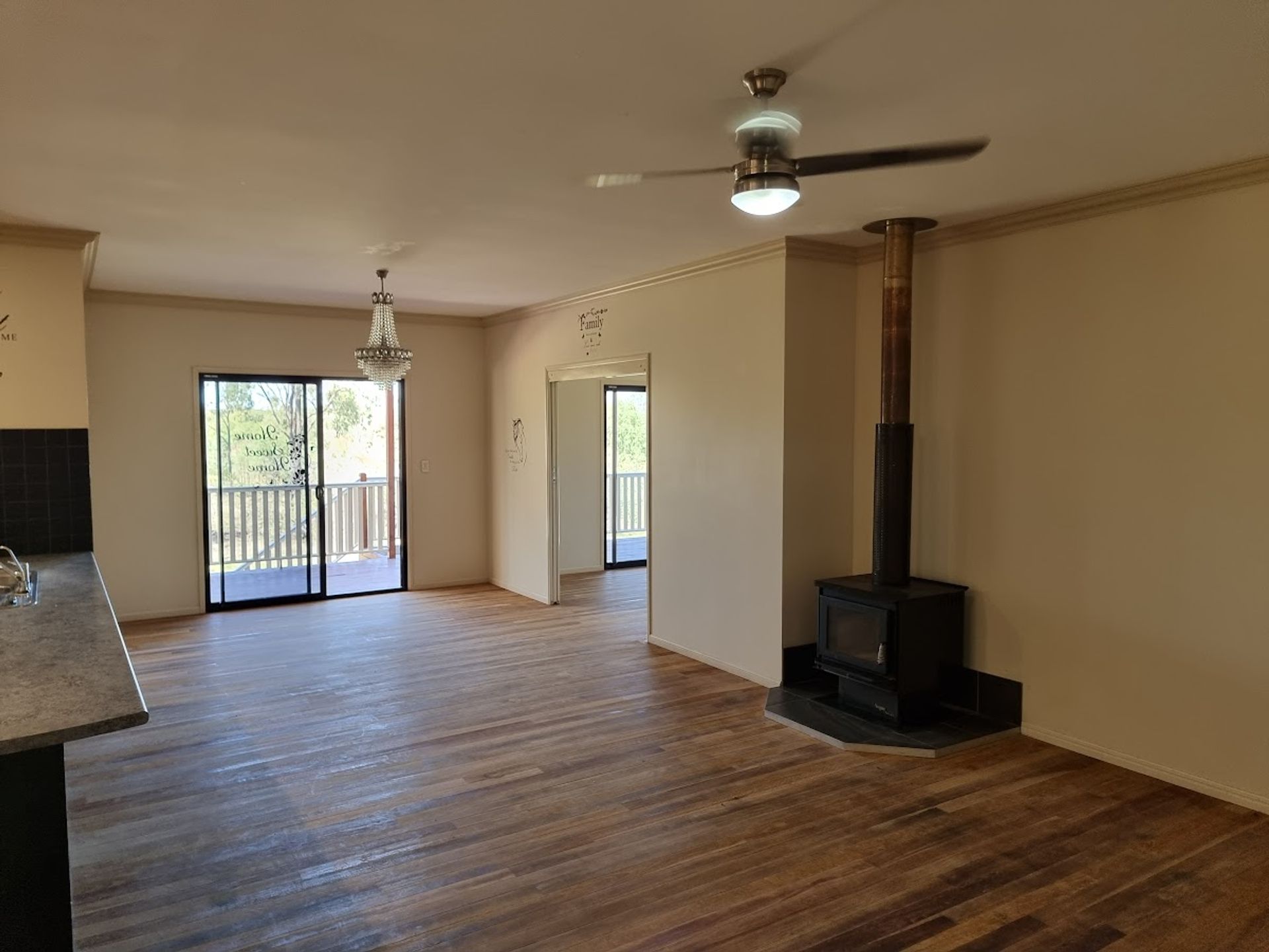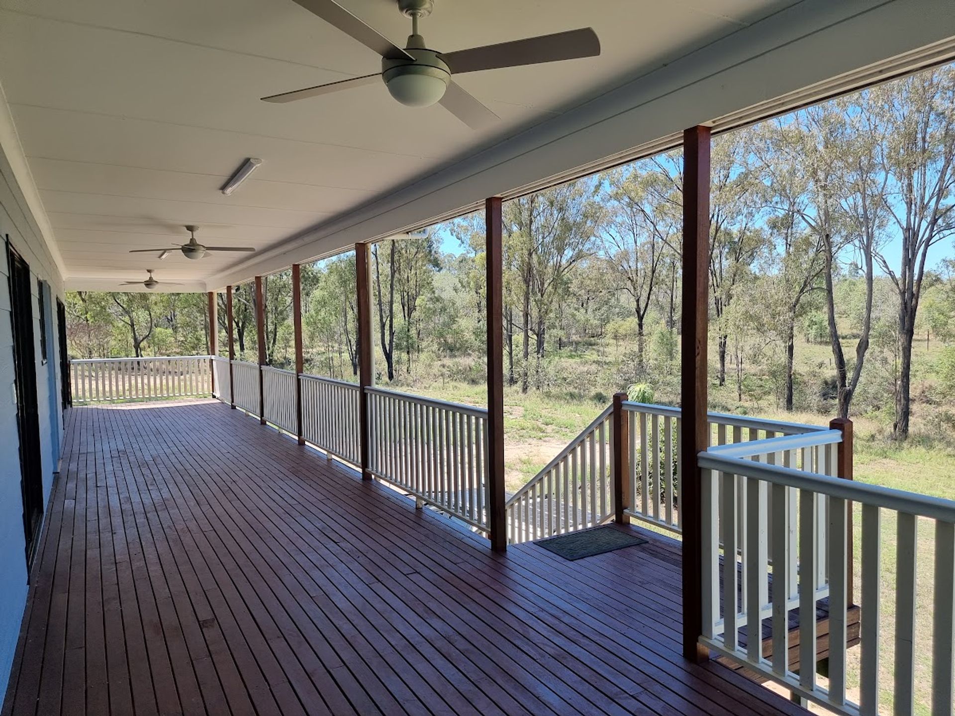 Open plan Dining / Lounge and Kitchen with a 5-burner gas stove/oven, plenty of cupboards, and bench space. The main bedroom has built-in robes & ceiling fans and offers direct access to the veranda that wraps halfway around the house. Bedroom 2 also has a built-in robe and ceiling fan. the generously sized bathroom has a shower and vanity.