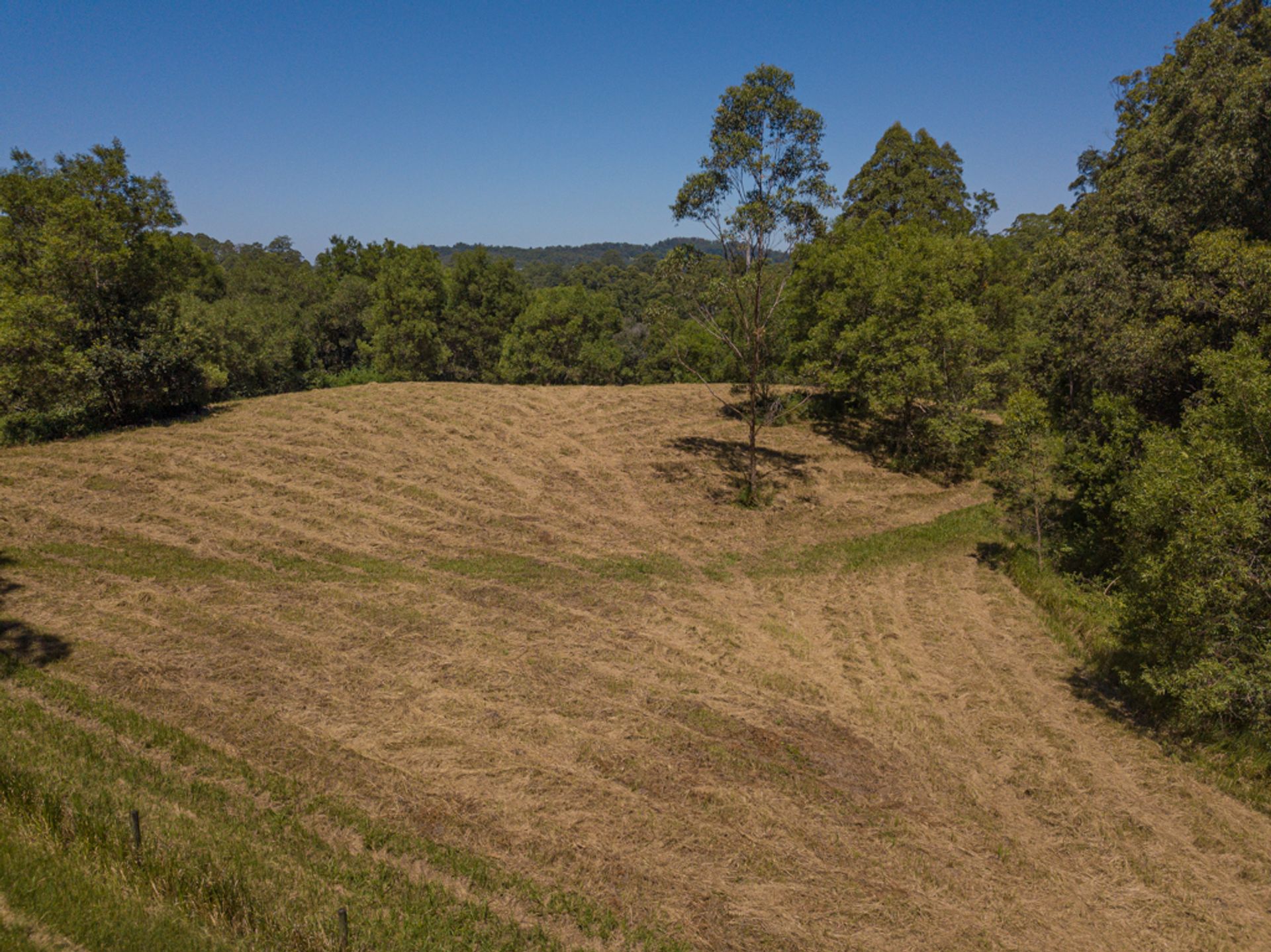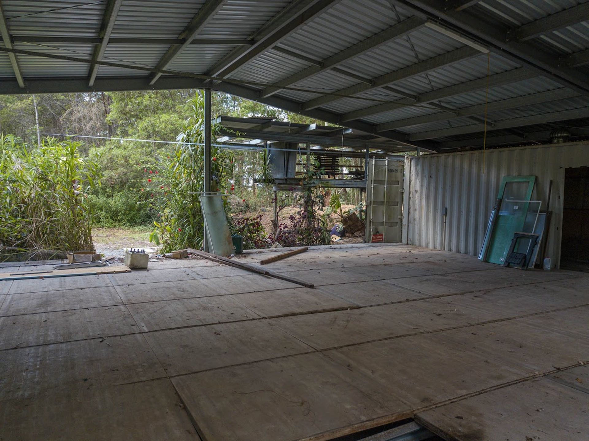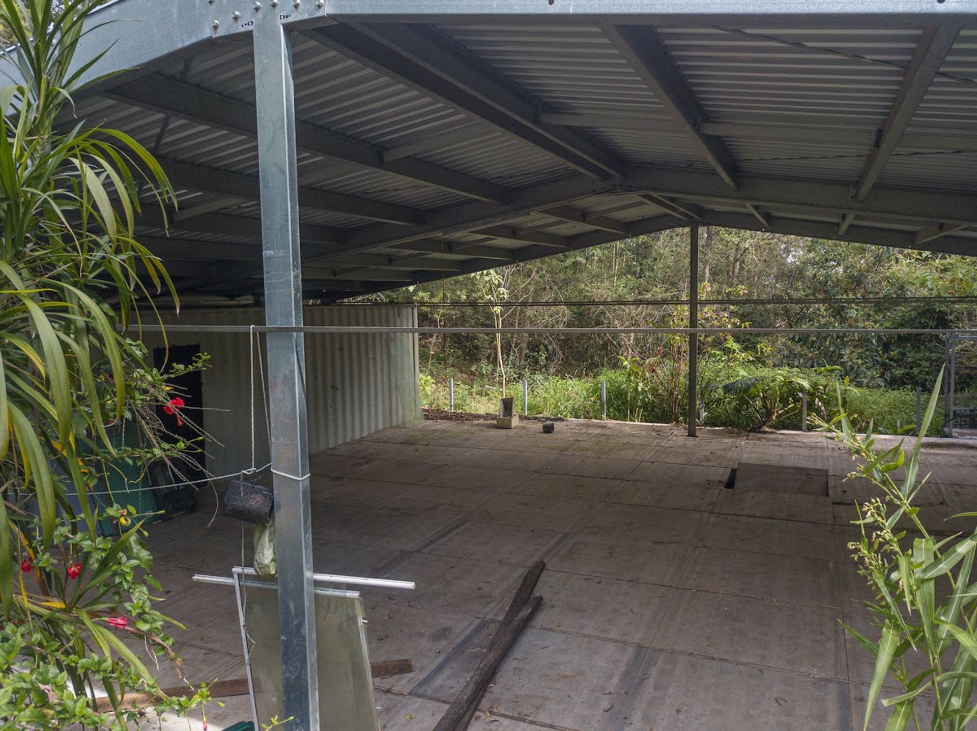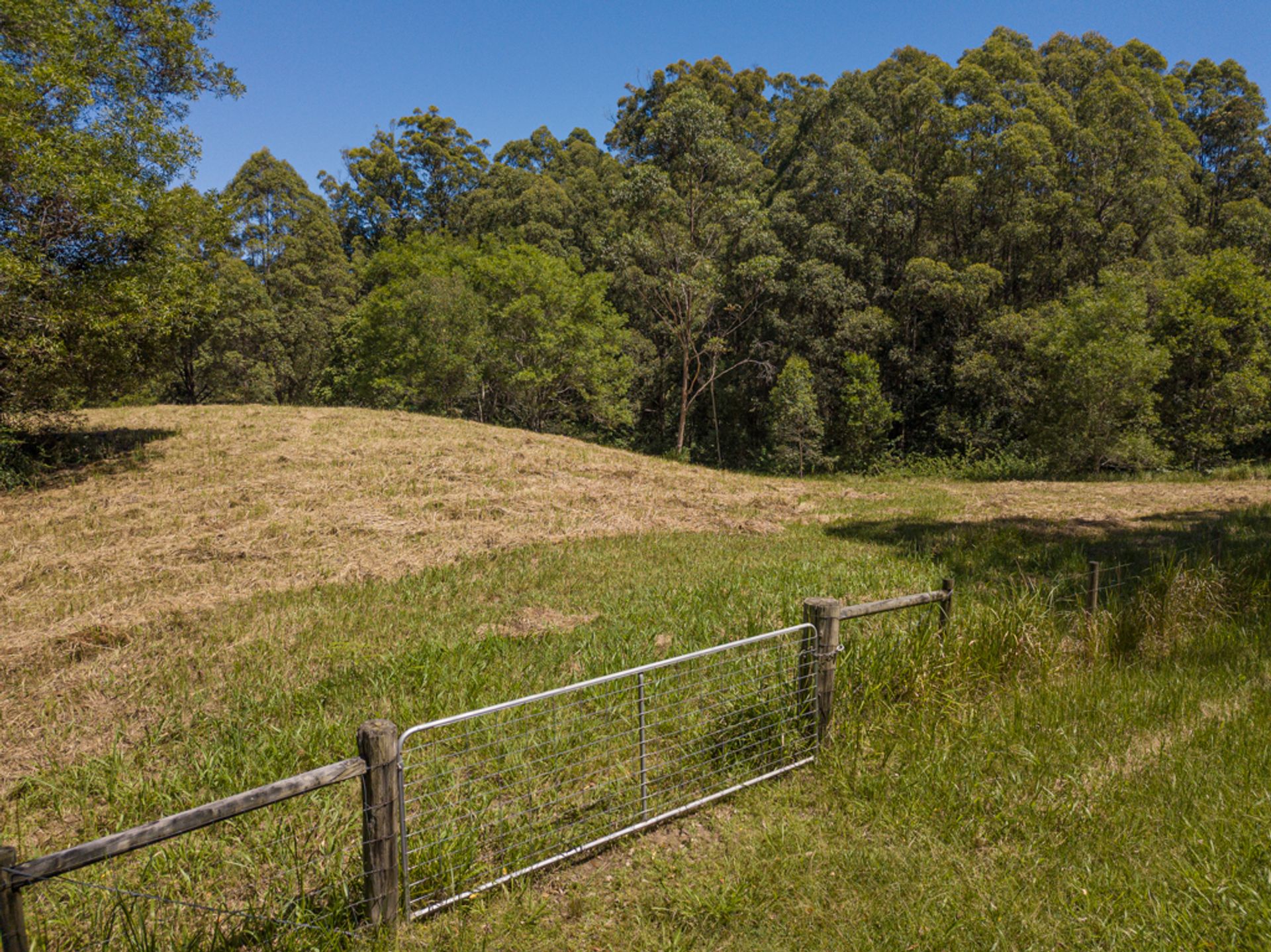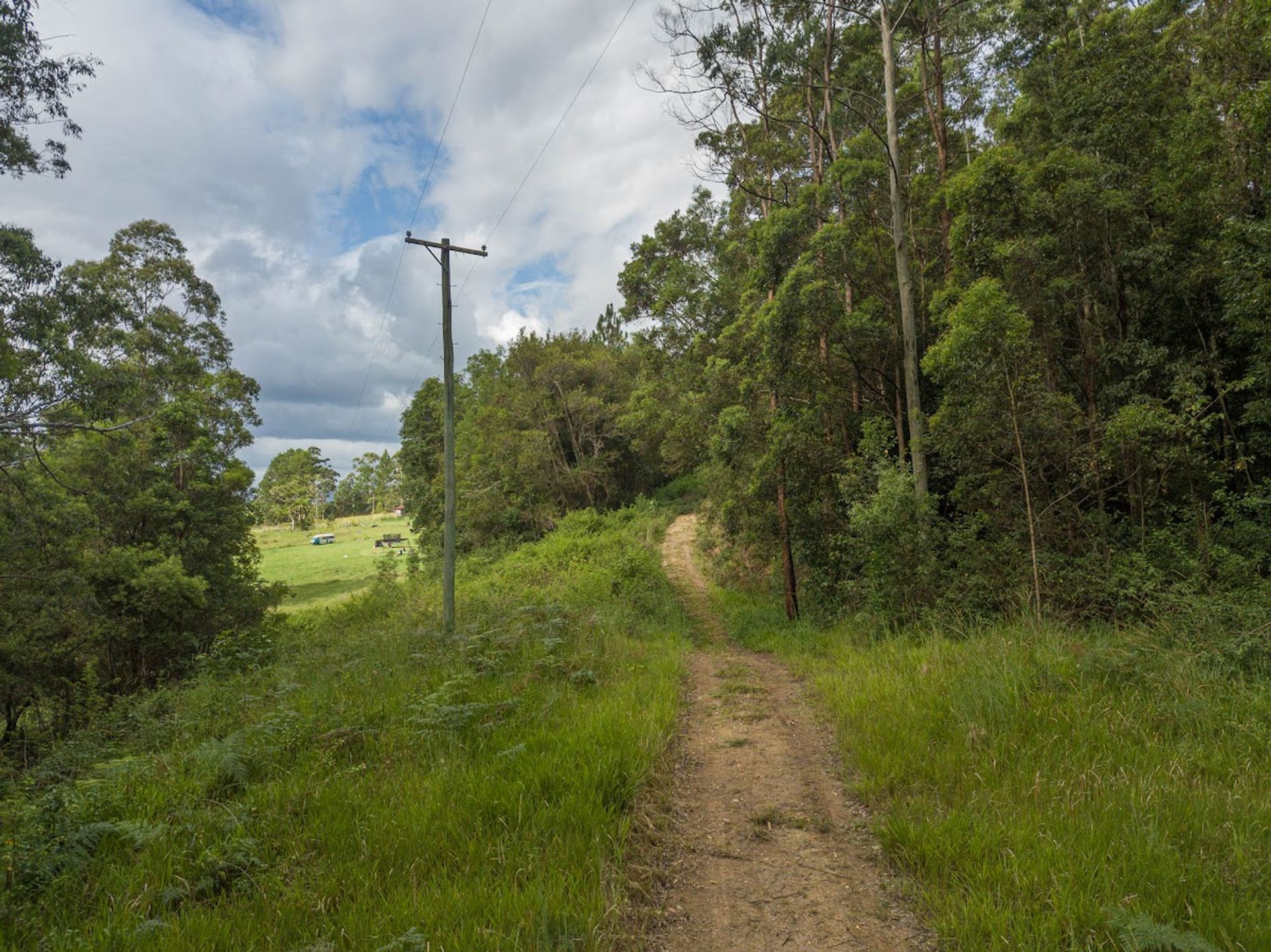 Split by the road, there is roughly 30Ha on the western side of Gabal Road & another 10Ha on the eastern side, the 10Ha is home to the steel structure, three 40ft shipping containers, (it has come to light that the structure has been built on a crown road) approx 800m of Websters Creek frontage & a noll that will deliver views of Mount Warning & Blue Knob. The Western 30Ha is very large & diverse, it has two natural waterways, one of which you cross on an internal track to get to the elevated plateaus & open shed.