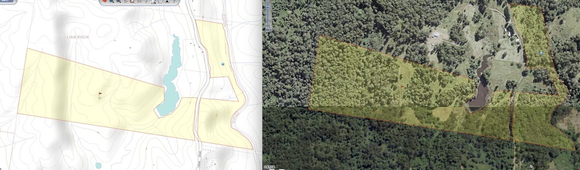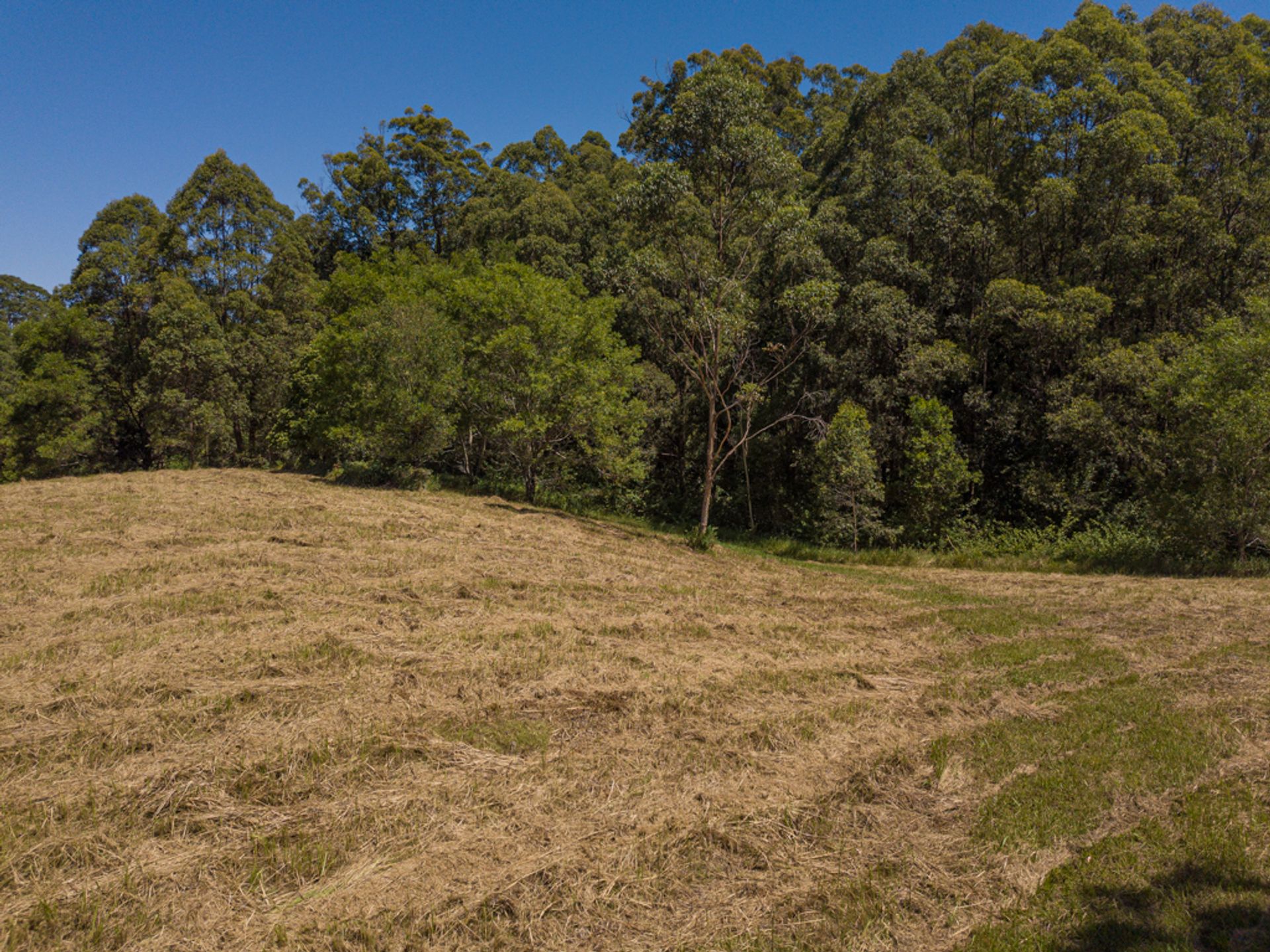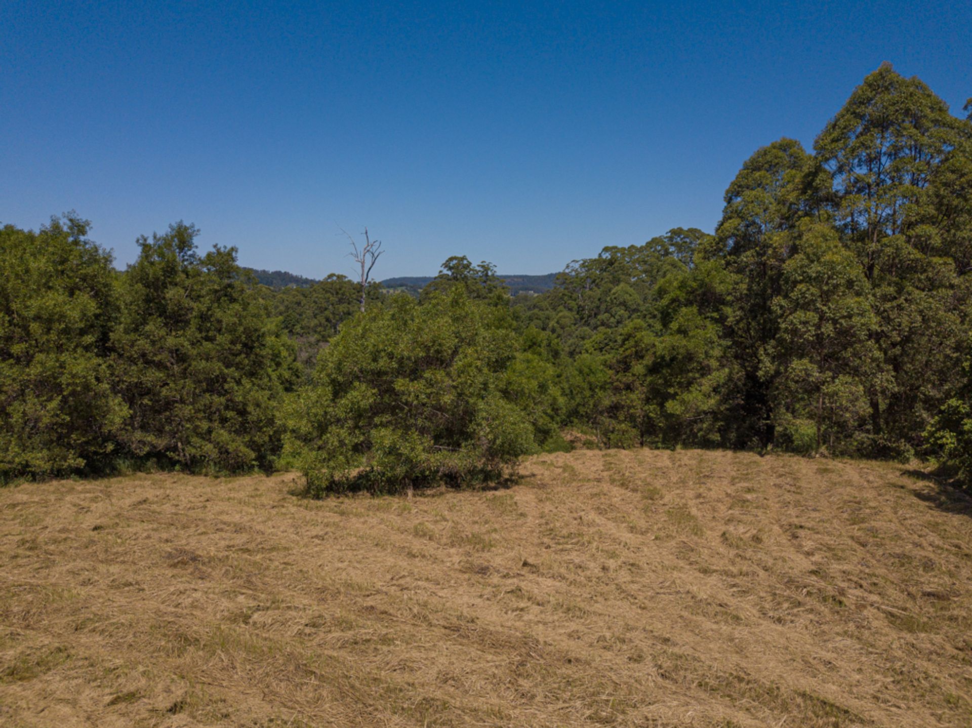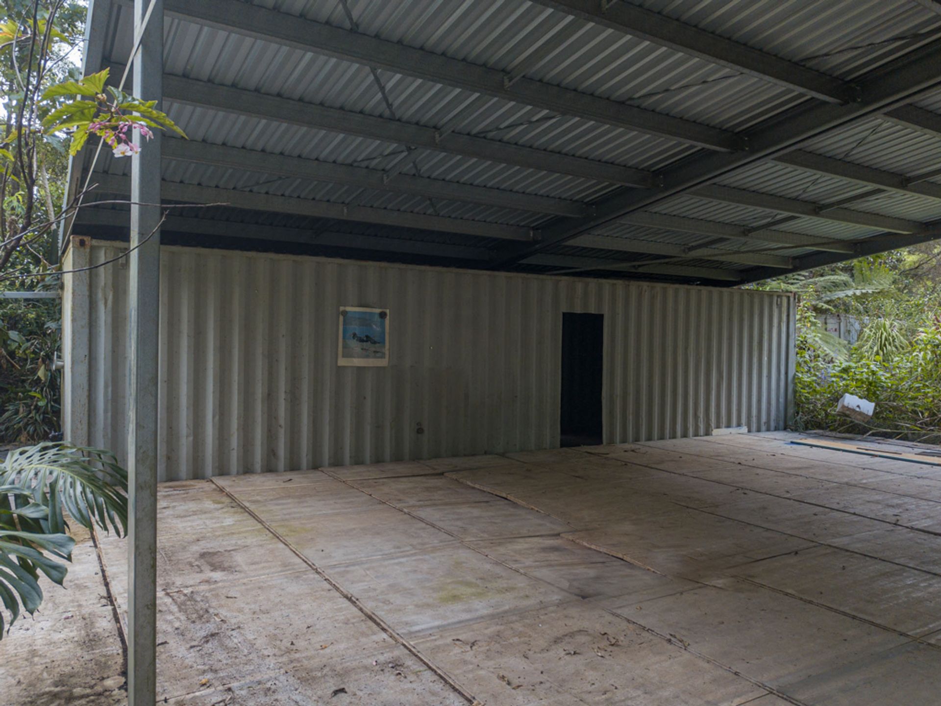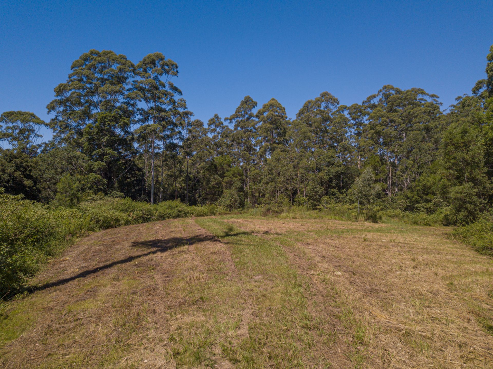 Split by the road, there is roughly 30Ha on the western side of Gabal Road & another 10Ha on the eastern side, the 10Ha is home to the steel structure, three 40ft shipping containers, (it has come to light that the structure has been built on a crown road) approx 800m of Websters Creek frontage & a noll that will deliver views of Mount Warning & Blue Knob. The Western 30Ha is very large & diverse, it has two natural waterways, one of which you cross on an internal track to get to the elevated plateaus & open shed.