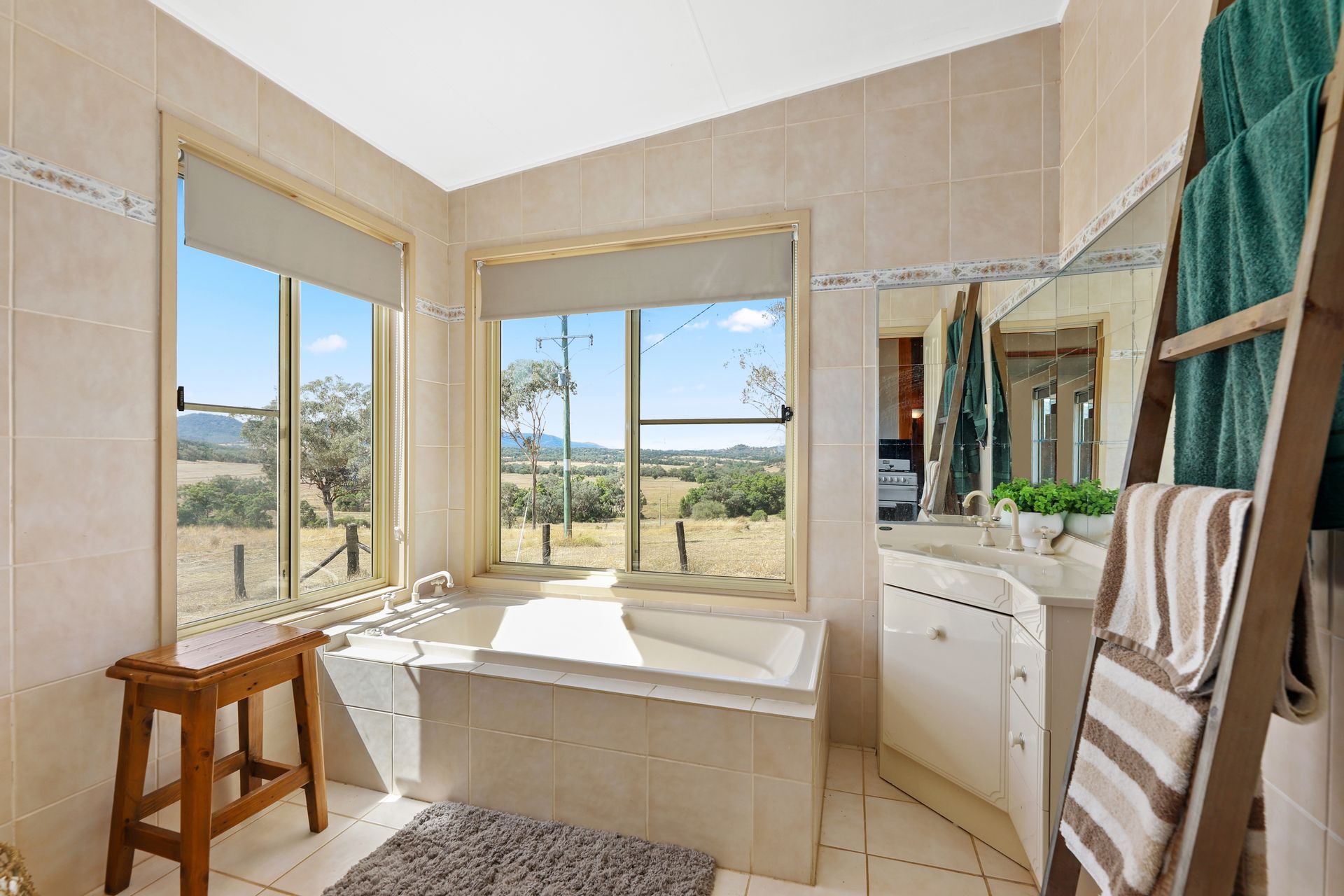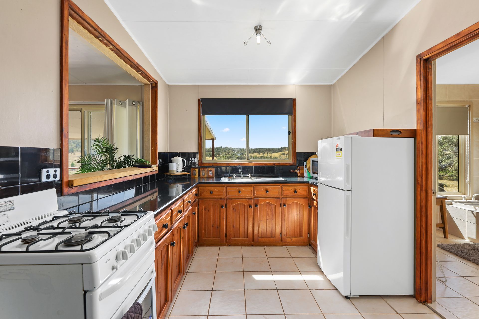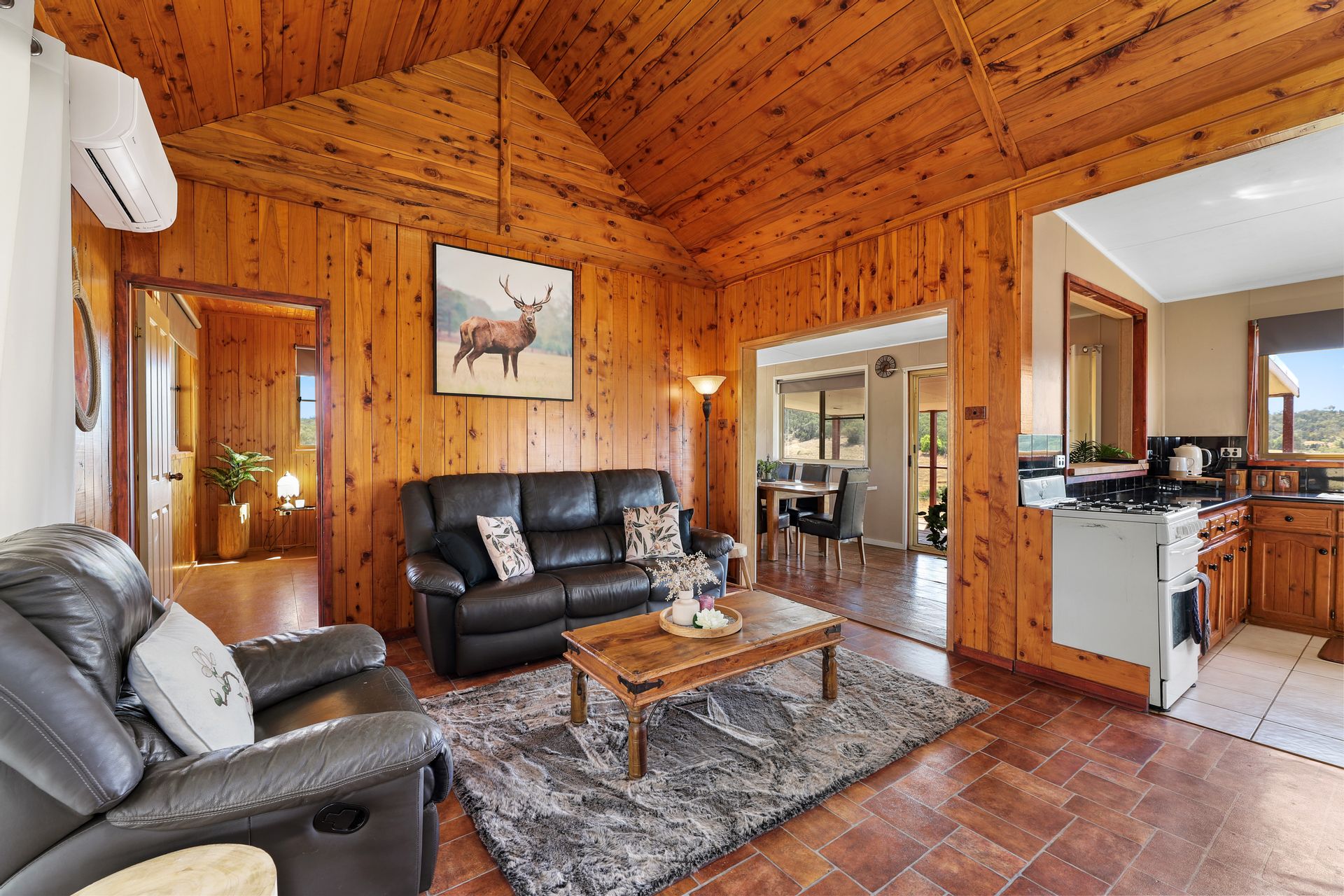 A cosy 2 bedroom timber cottage provides comfortable accommodation featuring beautiful vaulted ceilings, a functional timber kitchen with gas cooktop and all of your heating and cooling needs taken care of with a large woodfire and reverse cycle split system. The perfectly positioned bathtub is complemented by 2 large windows and provides the perfect place to sit back and relax with a glass of wine and bubbles, whilst outside the deck offers sweeping views of the valley below and hills beyond.