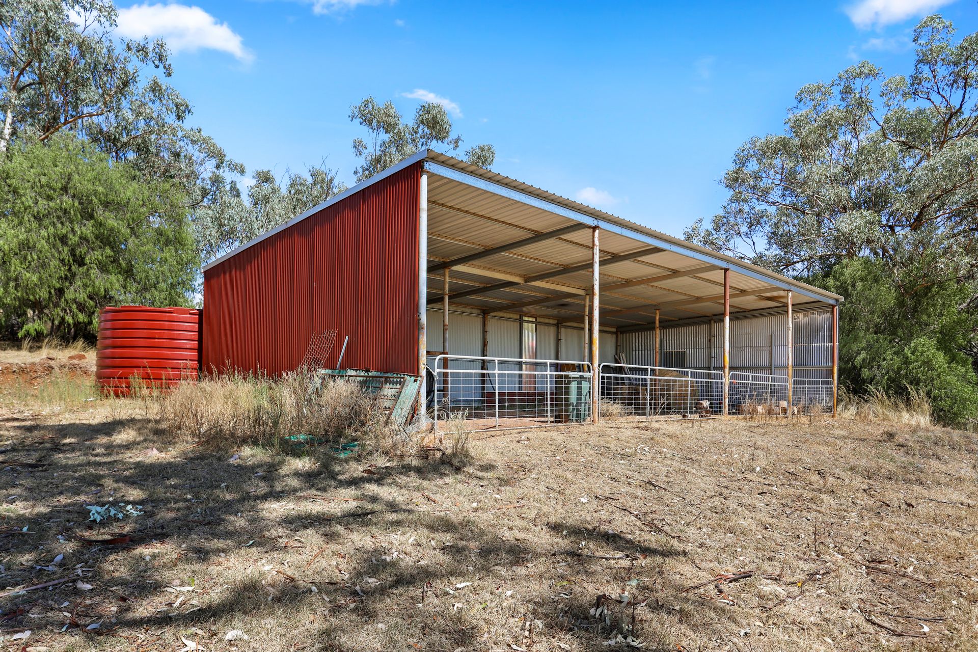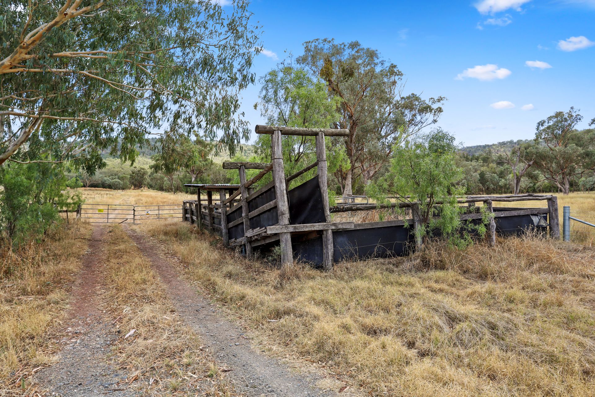 • Laneway entry leading to older-style timber cattle yards
