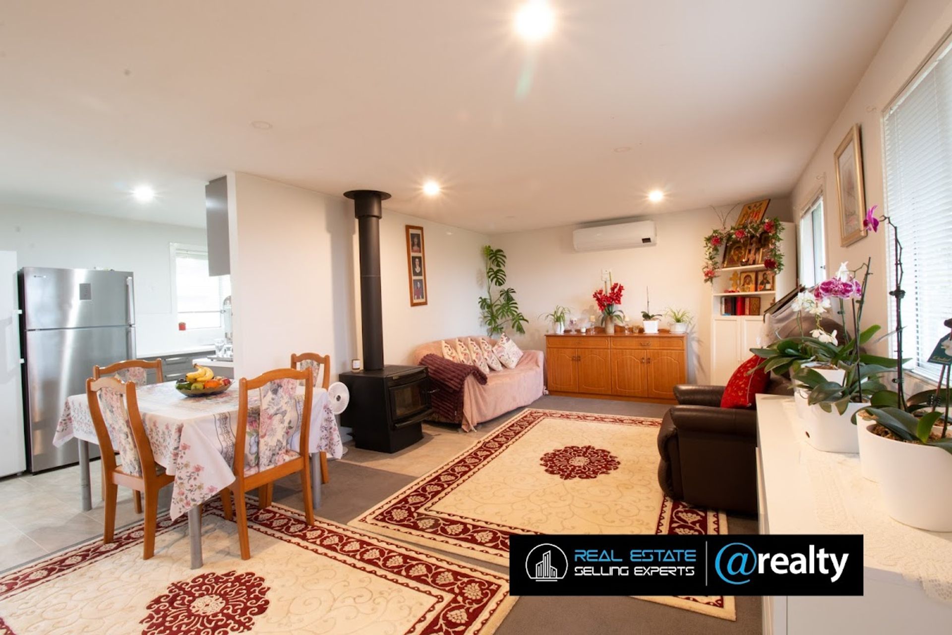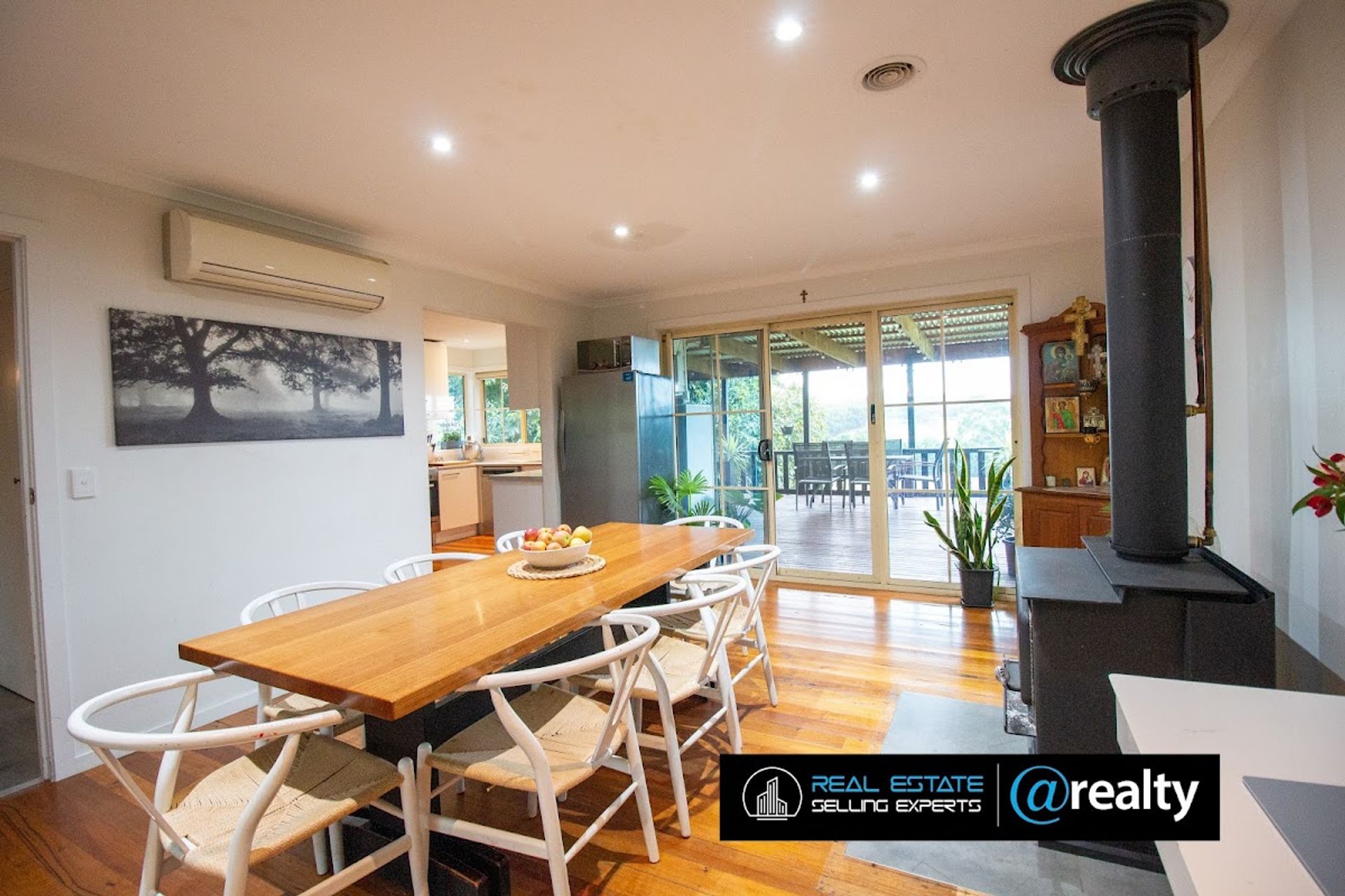 The house provides 3 bedrooms with BIRs, 1 ensuite, 1 semi ensuite and extra bathroom upstairs with shower, 2 dining, 1 lounge, seperate laundry, an open fireplace & coonara heater, 2 x split systems and a store room under the staircase.