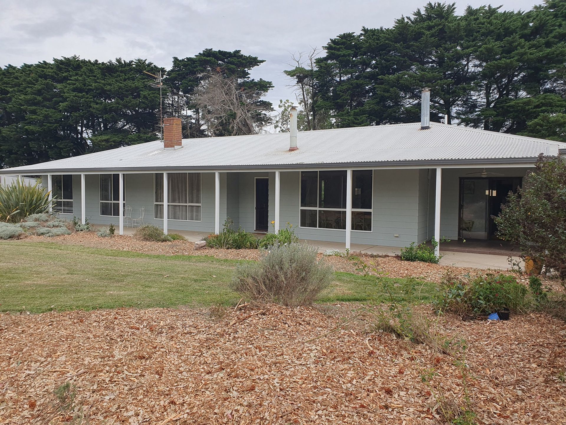 4 bedroom hardiplank/weathertex homesteaed style house with a 10ft verandah along the north side. 3 bedrooms have built in robes. There is a refurbished kitchen only 5years old with walk in pantry, electric wall oven and hot plates with range hood overhead, family room, dining room and lounge room with an open fire. There is a large bathroom with shower and a vanity unit. There are two separate toilets and a laundry. There is also an office or fifth bedroom. This beautiful home has two heating systems being a slow combustion wood heater and an electric reverse cycle air conditioner. All of this is set in a delightful garden setting including a small orchard.