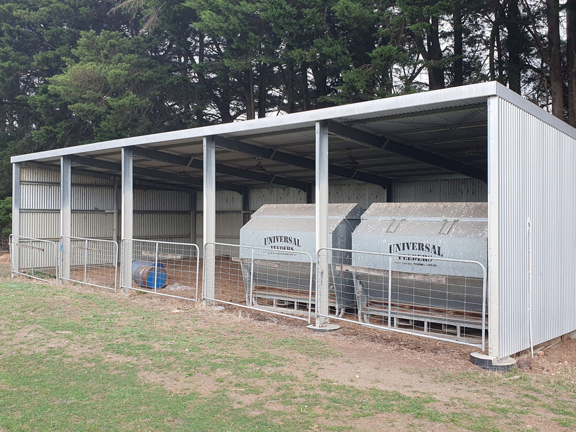 Calf Sheds - 2 bay galvanised iron shed with side and rear walls.