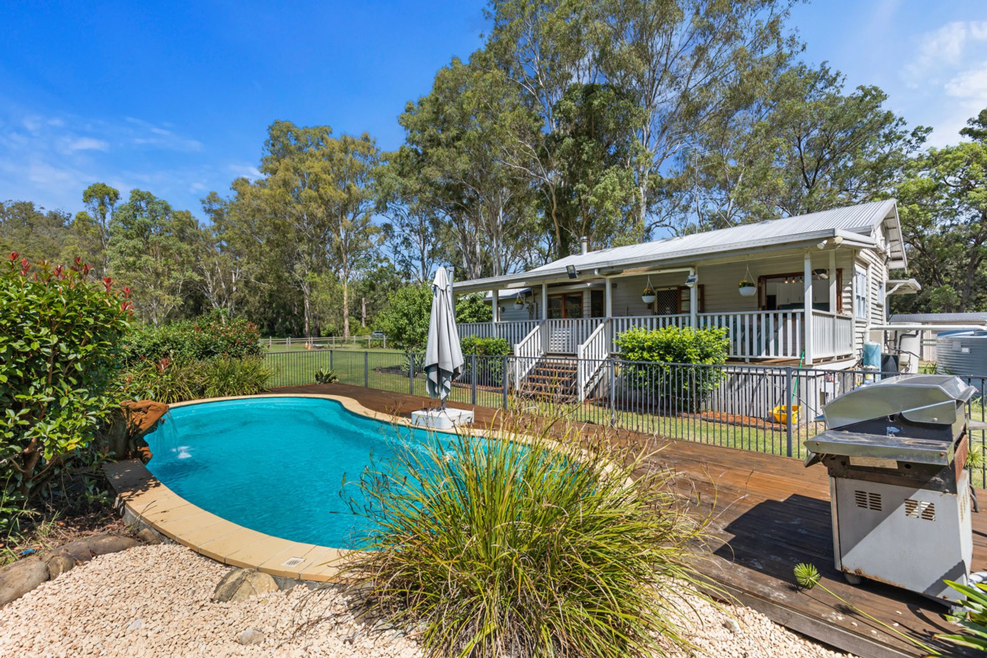 The 3 bedroom home provides the opportunity to listen to the birds and watch your animals graze from the privacy of a spacious east facing deck. Set amongst established gardens and with a fully fenced houseyard and inviting inground swimming pool, it is the perfect place to entertain family and friends.