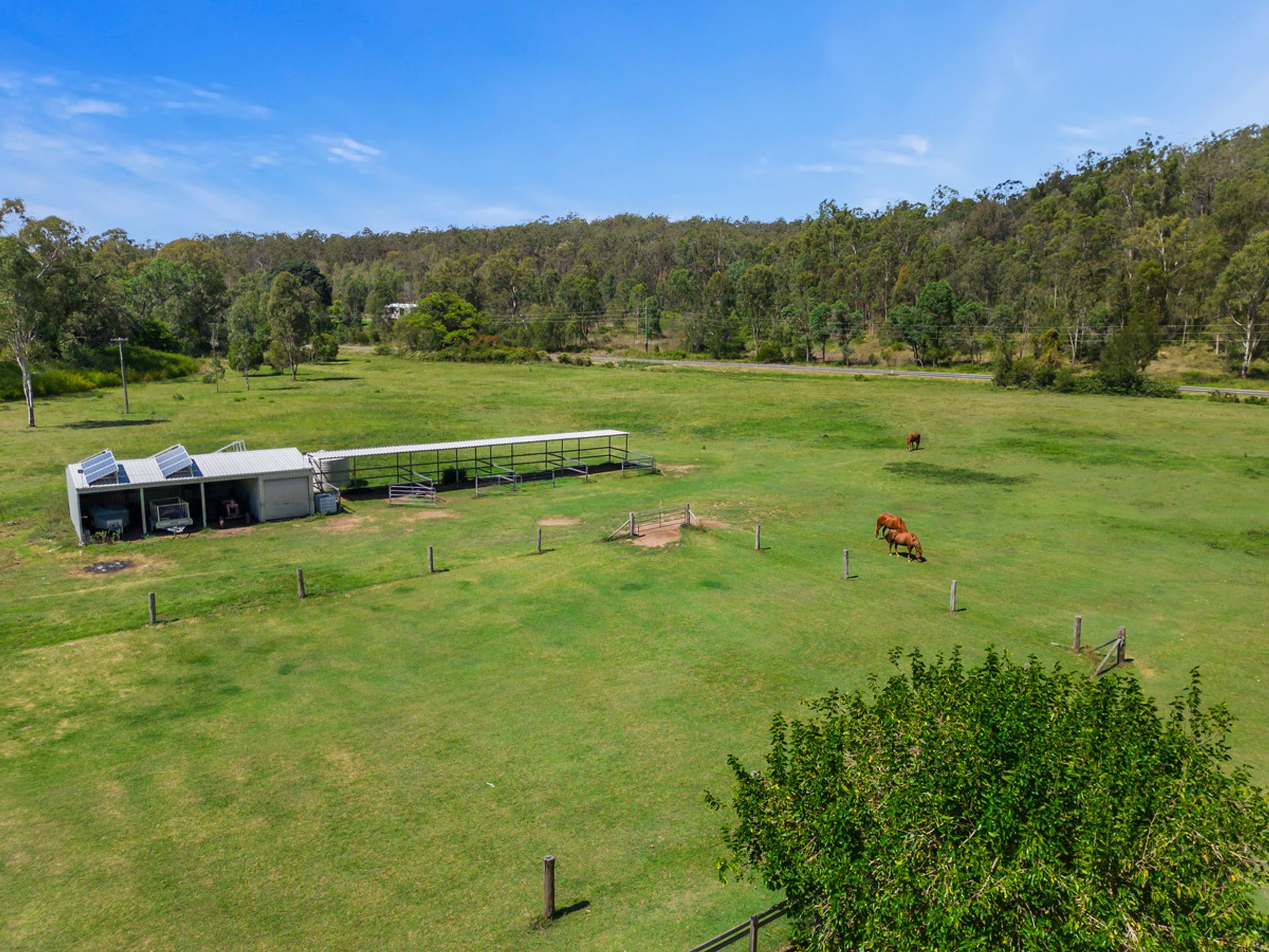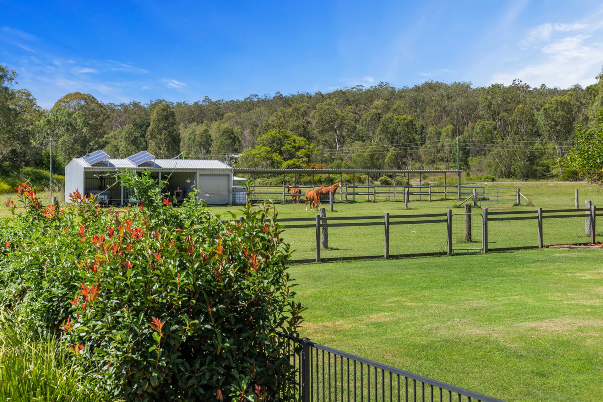 Situated on 1 freehold title and split into 3 grazing paddocks for livestock plus the expansive houseyard, Kleindorf has an estimated carrying capacity of 3 - 4 horses conservatively. The property is flanked by the spring-fed Murphys Creek on the northern boundary and provides a unlimited irrigation licence for an area of 4 hectares (9.88 acres) which allows greater capacity for grazing possibilities.