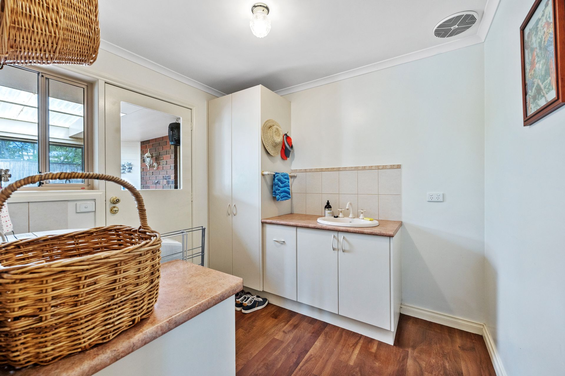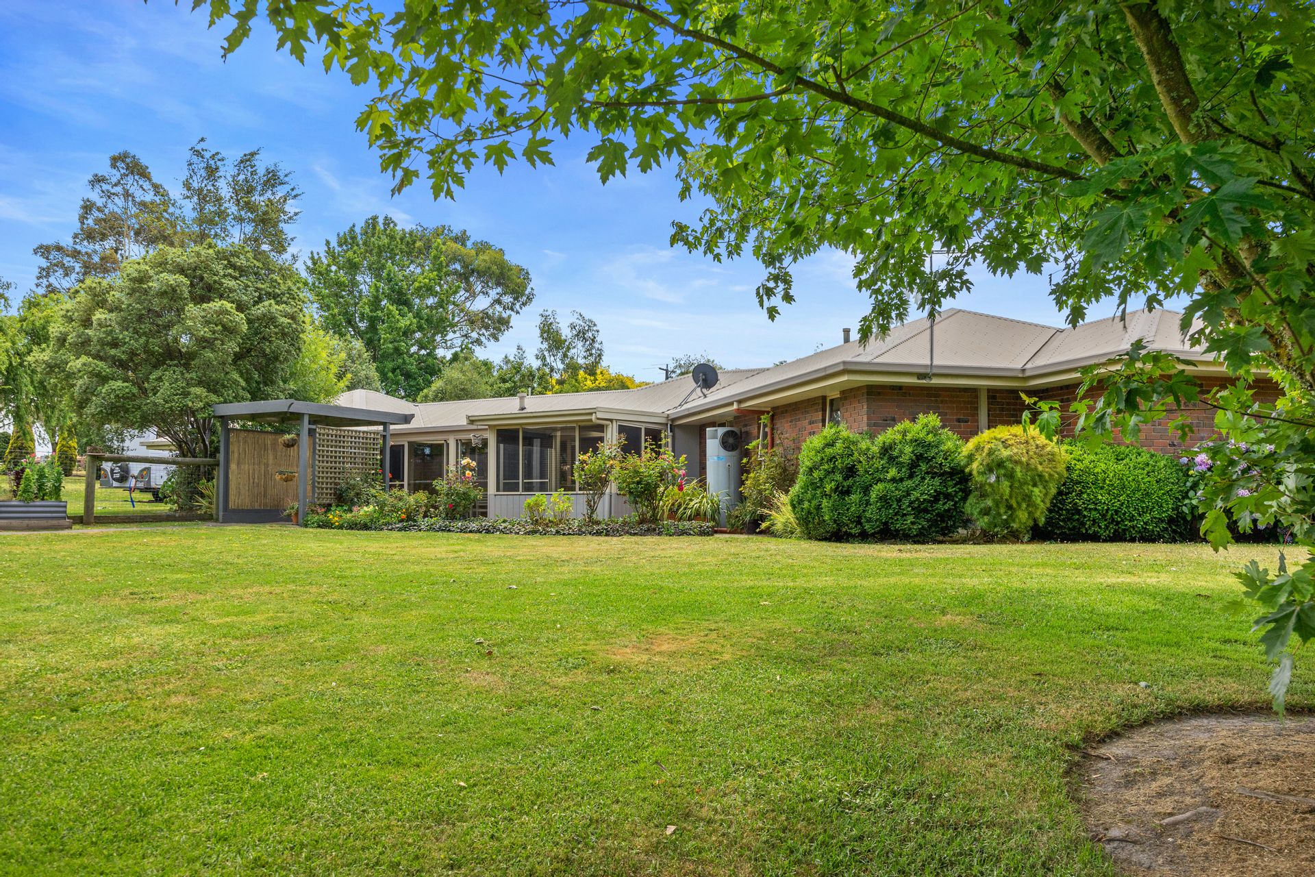 Behind the shed is a bore which provides an invaluable never-ending supply of garden water, the benefit of which is evidenced in the lush array of colourful roses, shrubs, conifers and rolling lawns, superb sites for the backyard cricket-match! The backyard has been fenced off to provide a secure area for the kids or a dog.